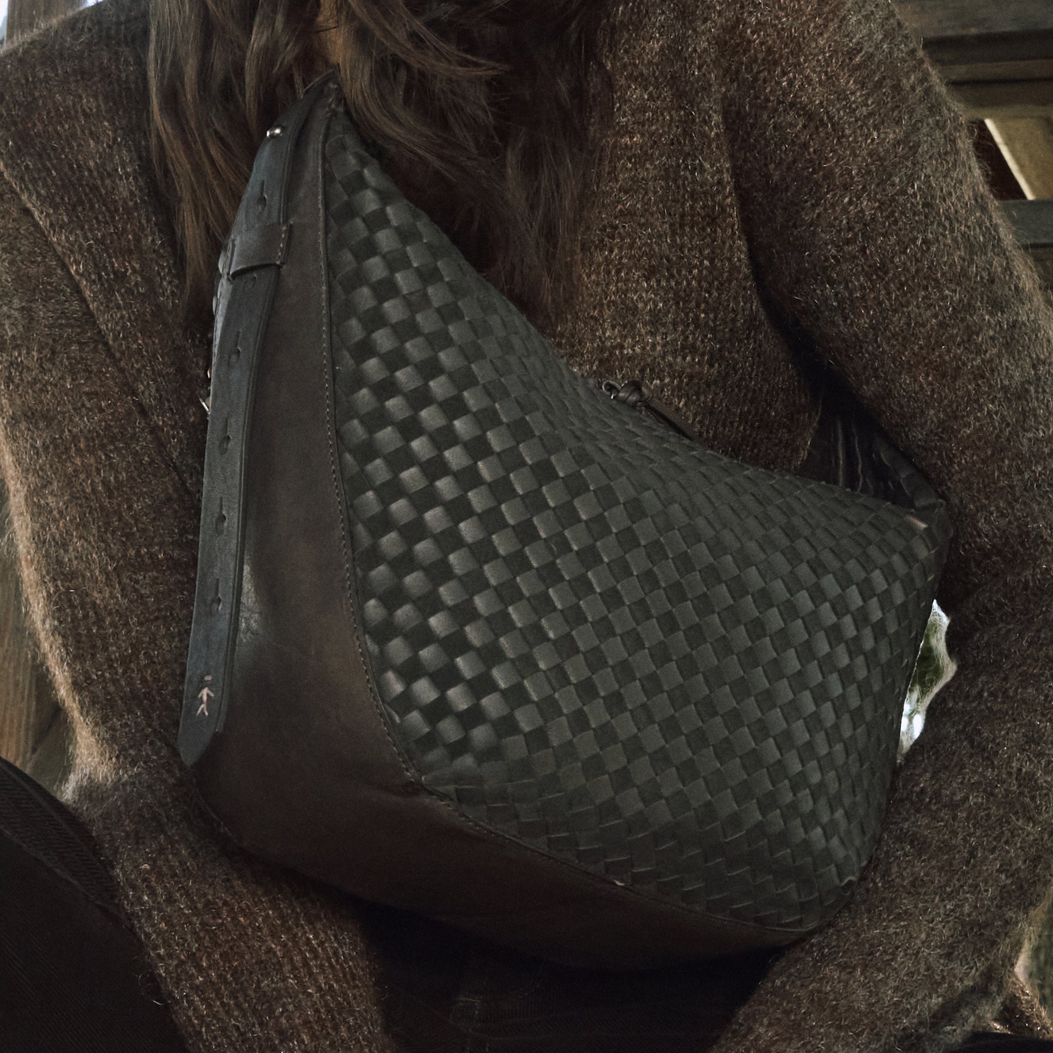 The HENRY BEGUELIN New Aura Bag in Martellato Prato, crafted in Italy from high-quality calfskin...