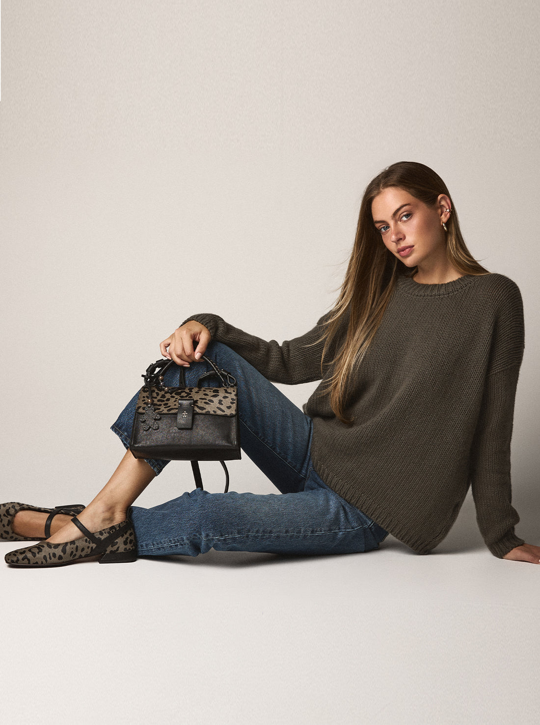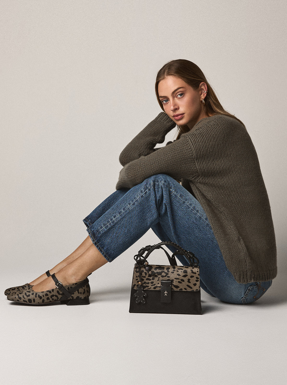 The HENRY BEGUELIN Precious Baguette Lace Leather Bag in Old Iron and Pony Sfumato Leopardo...