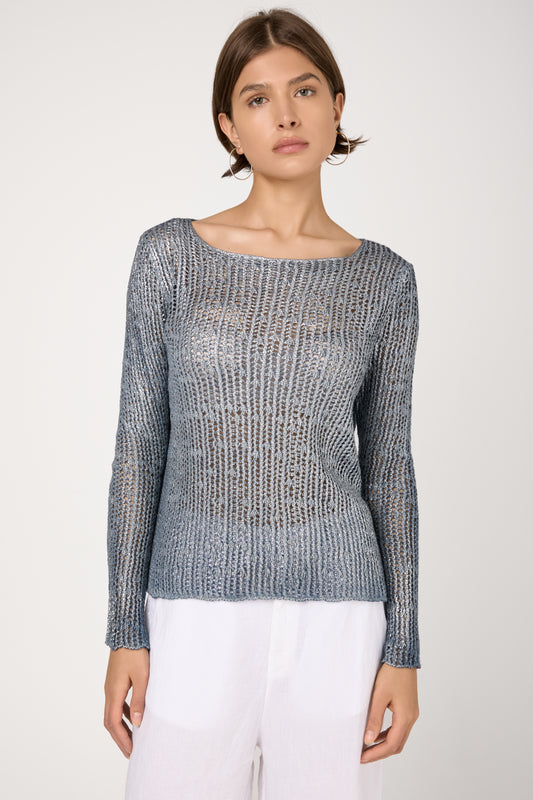 AVANT TOIHand Painted Laminated Boat Net Net Cashmere Pullover in Titanium