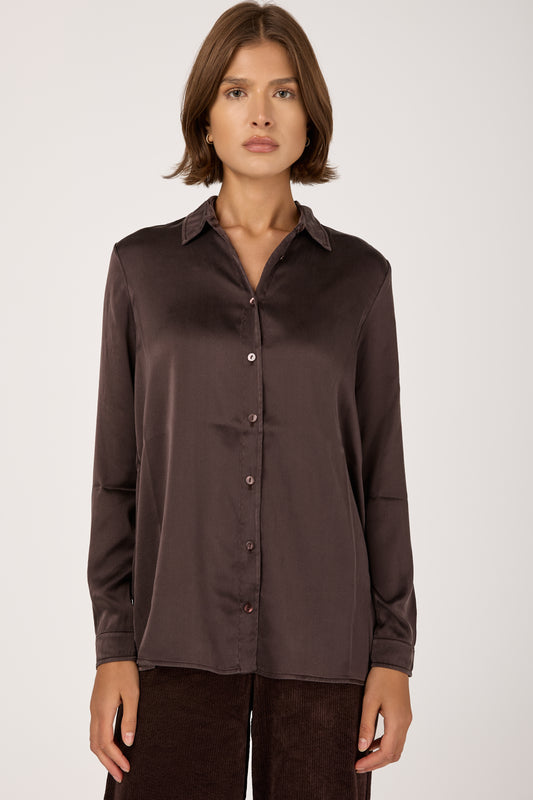 Silk Satin Shirt in Merlot