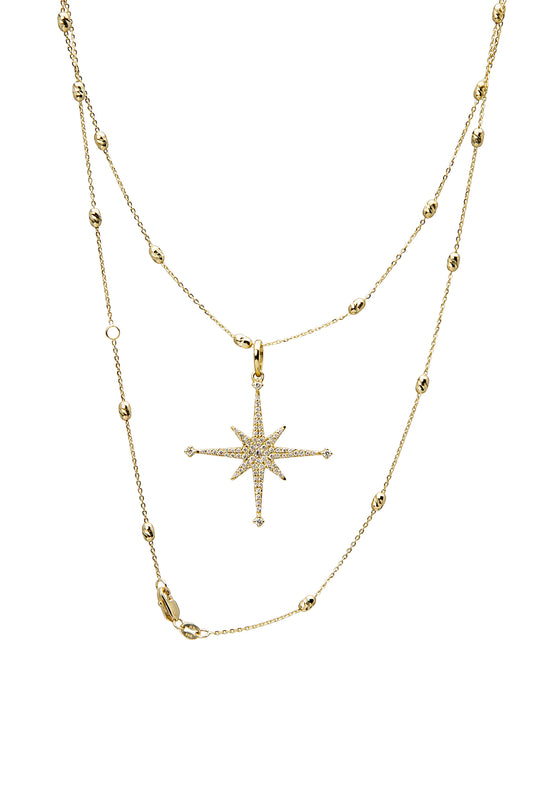 Large Diamond Stella Star Necklace on Lunar Chain in Yellow Gold