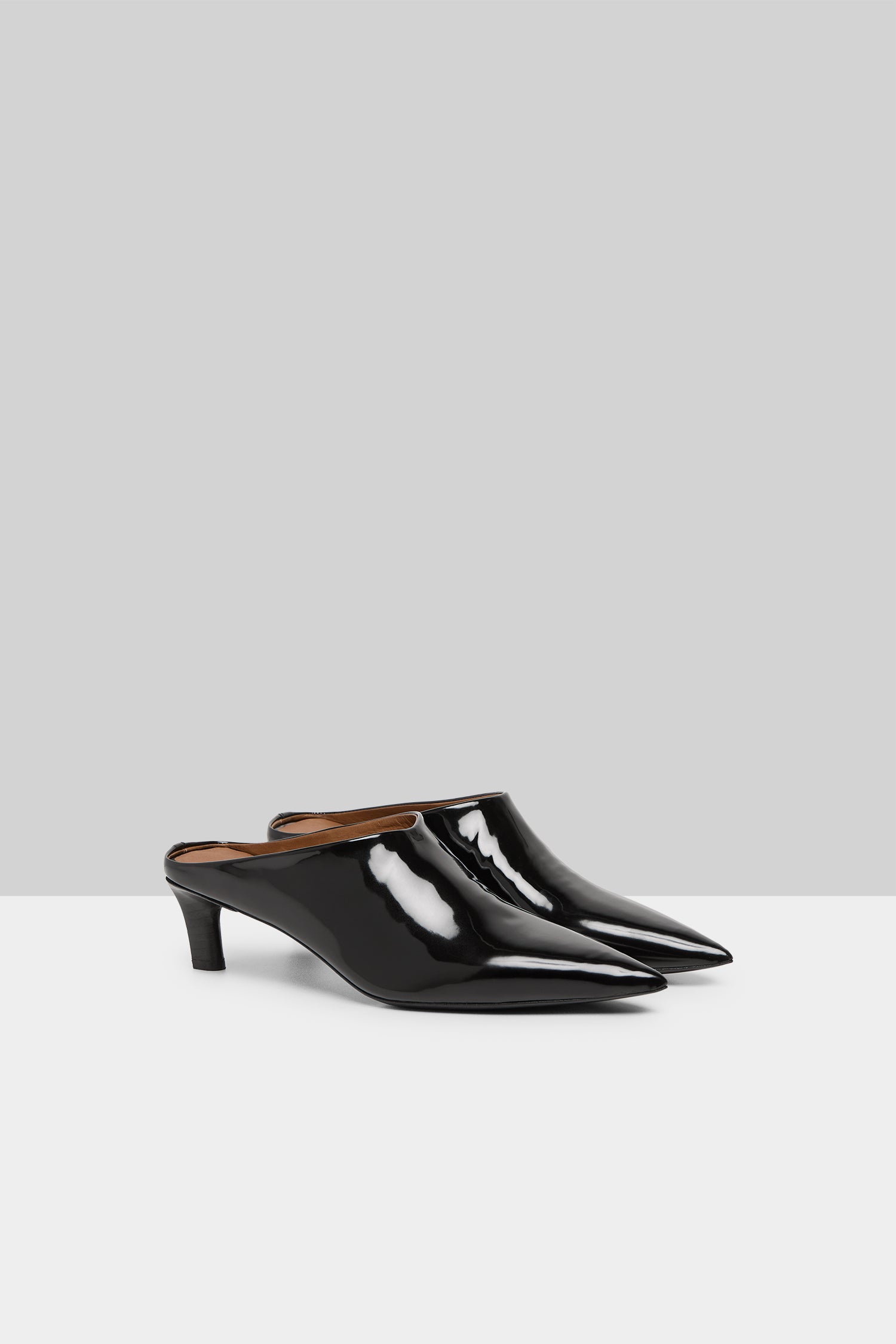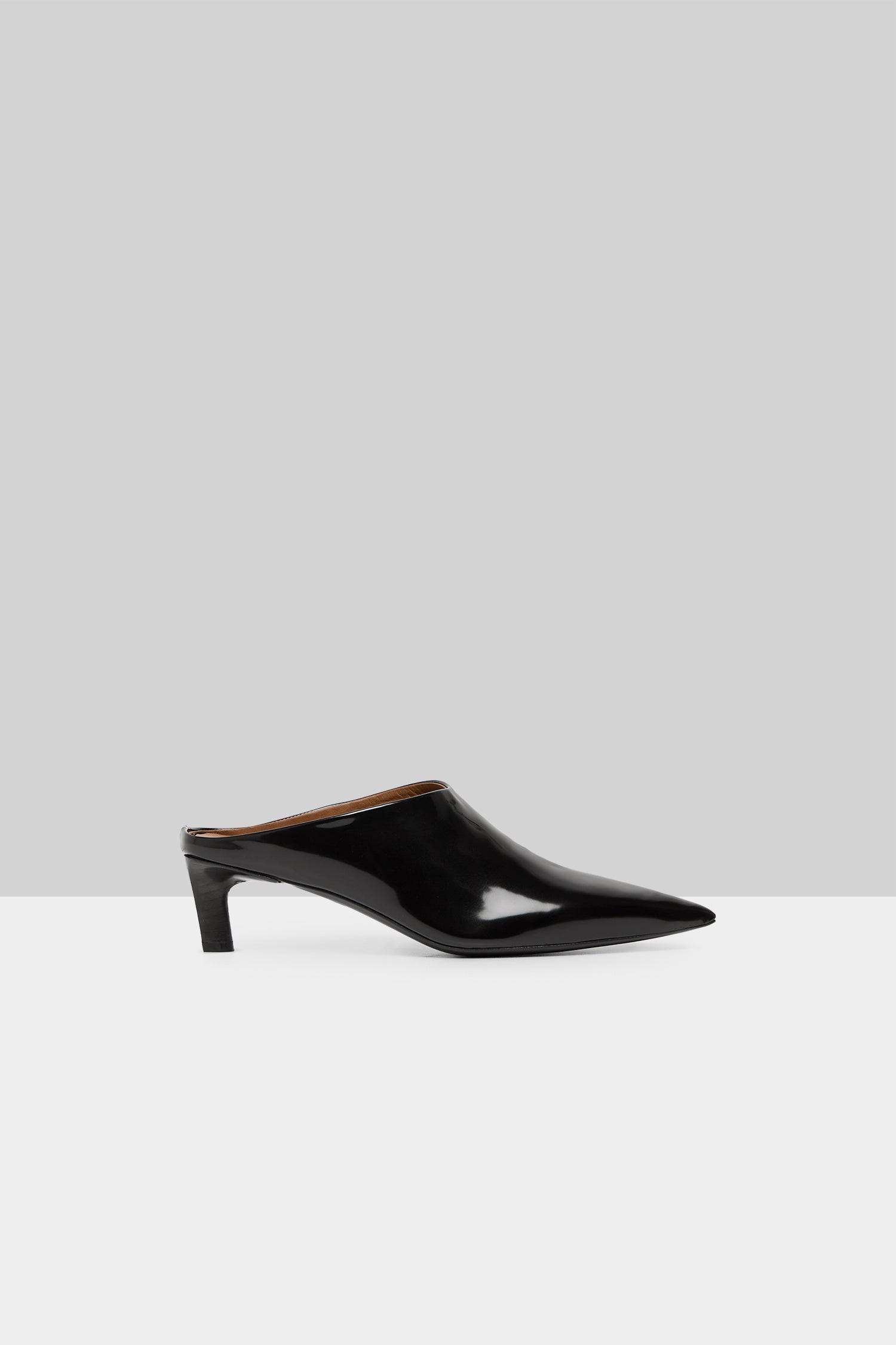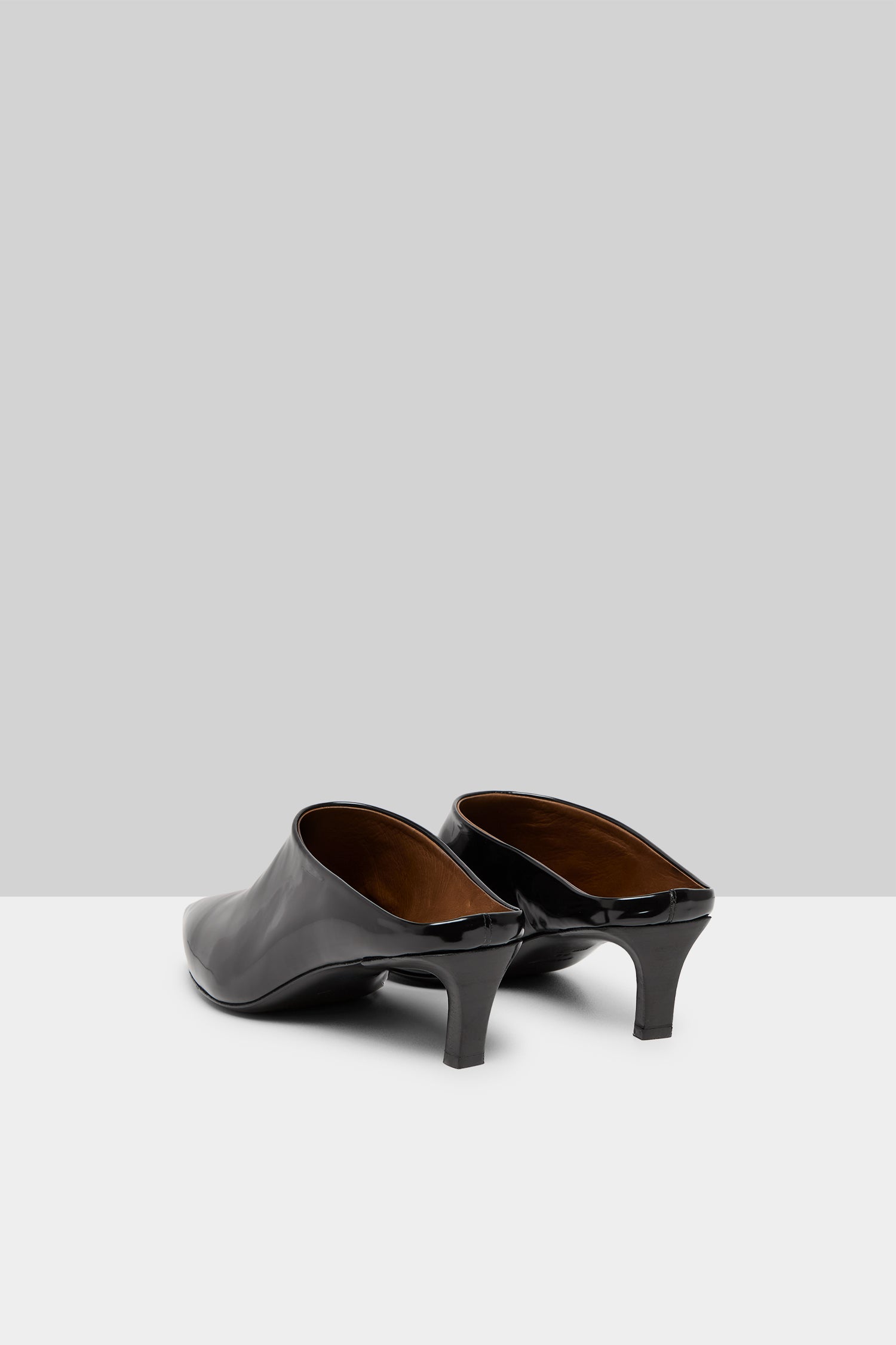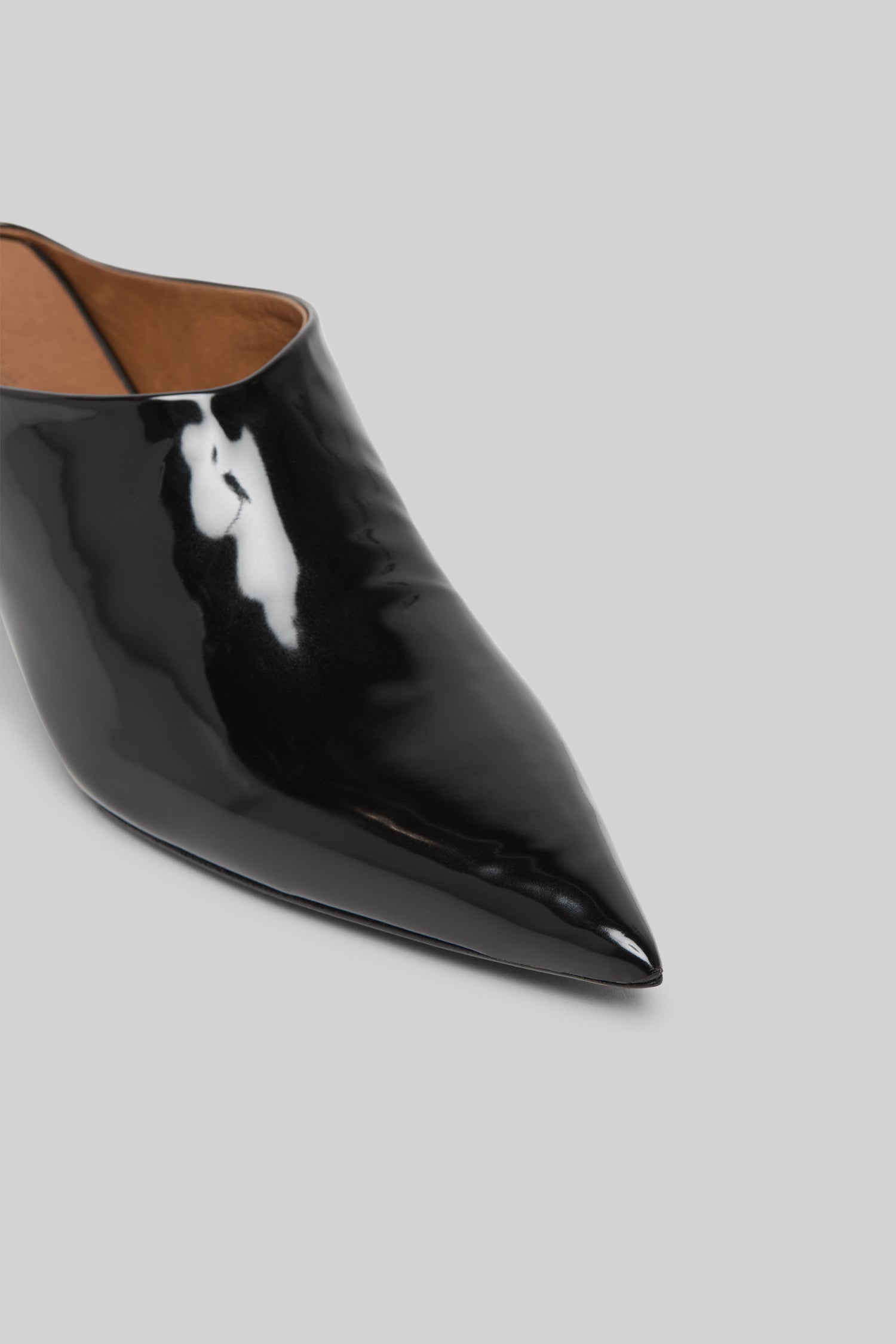 The MARSÈLL Aculeo Leather Mule in Black combines Italian craftsmanship with effortless style. Handmade from soft patent leather, this mule features a pointed toe and a slim, leather-wrapped heel for a sleek silhouette. A luxurious yet versatile choice, it’s designed for women who seek sophistication and comfort in every step.