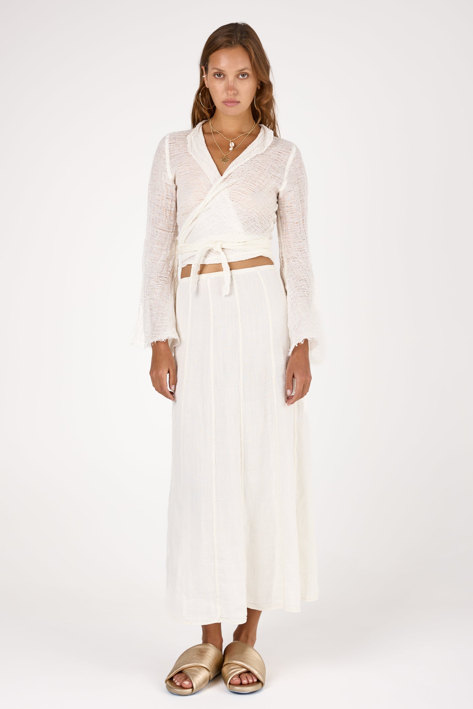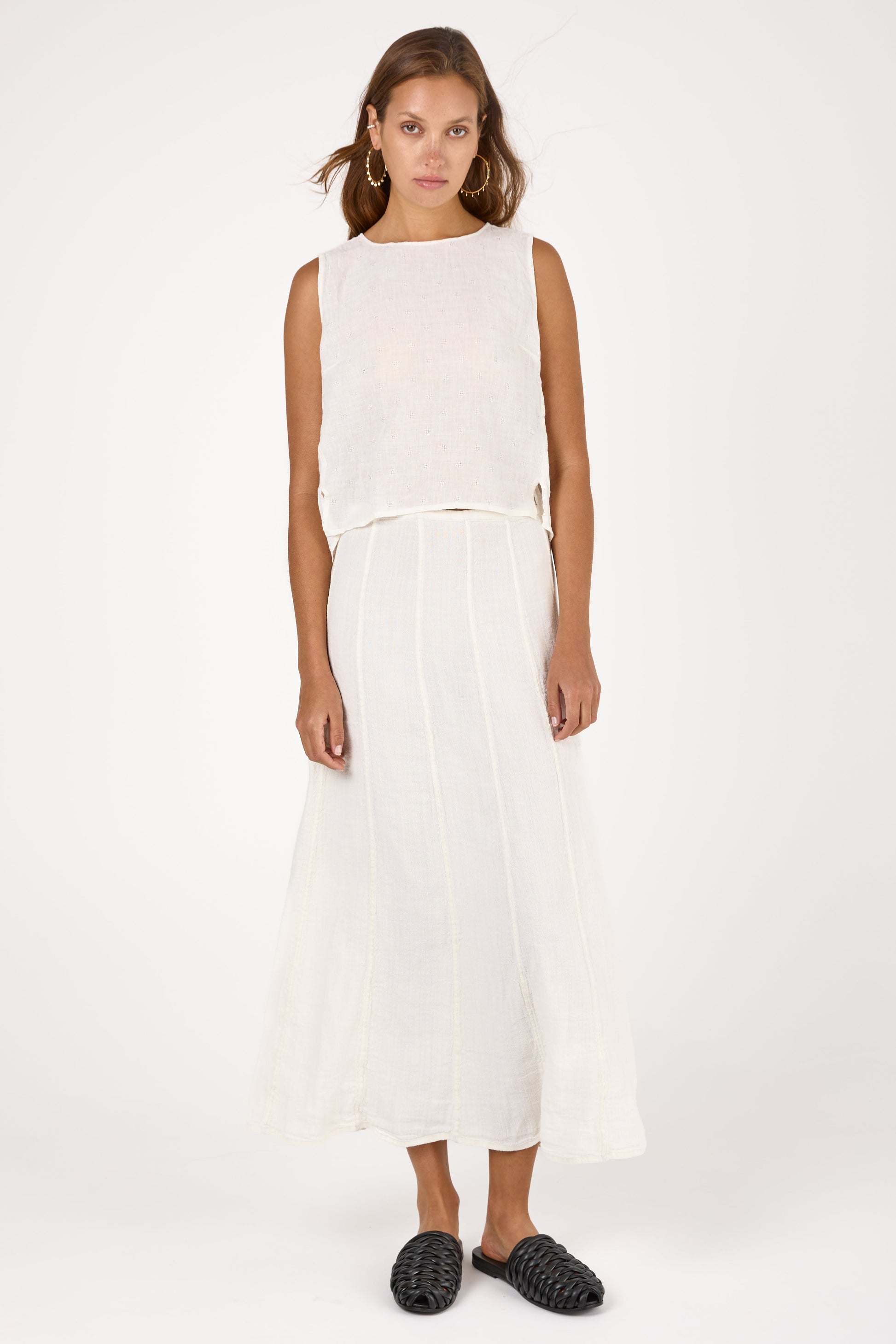 The La Bottega di Brunella Heavy Linen Skirt combines elegance and comfort. Crafted from 100% linen, this full-length skirt features a soft, flowing design perfect for year-round wear, adding a touch of Italian sophistication to any look.