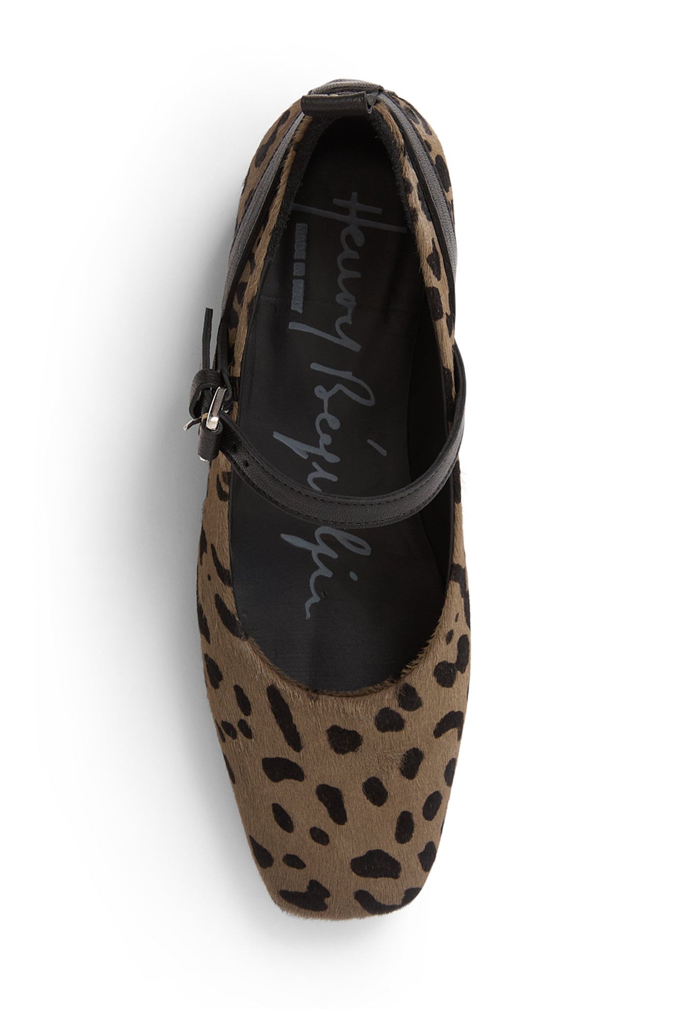 The HENRY BEGUELIN Buckle Leather Shoe in Pony Sfumato Leopardo Nero is crafted in luxurious calfskin leather with a delicate sfumato leopard-print finish. The adjustable black leather buckle strap offers a tailored fit, while the low sculpted heel ensures effortless comfort from morning to evening.