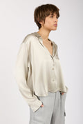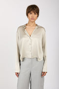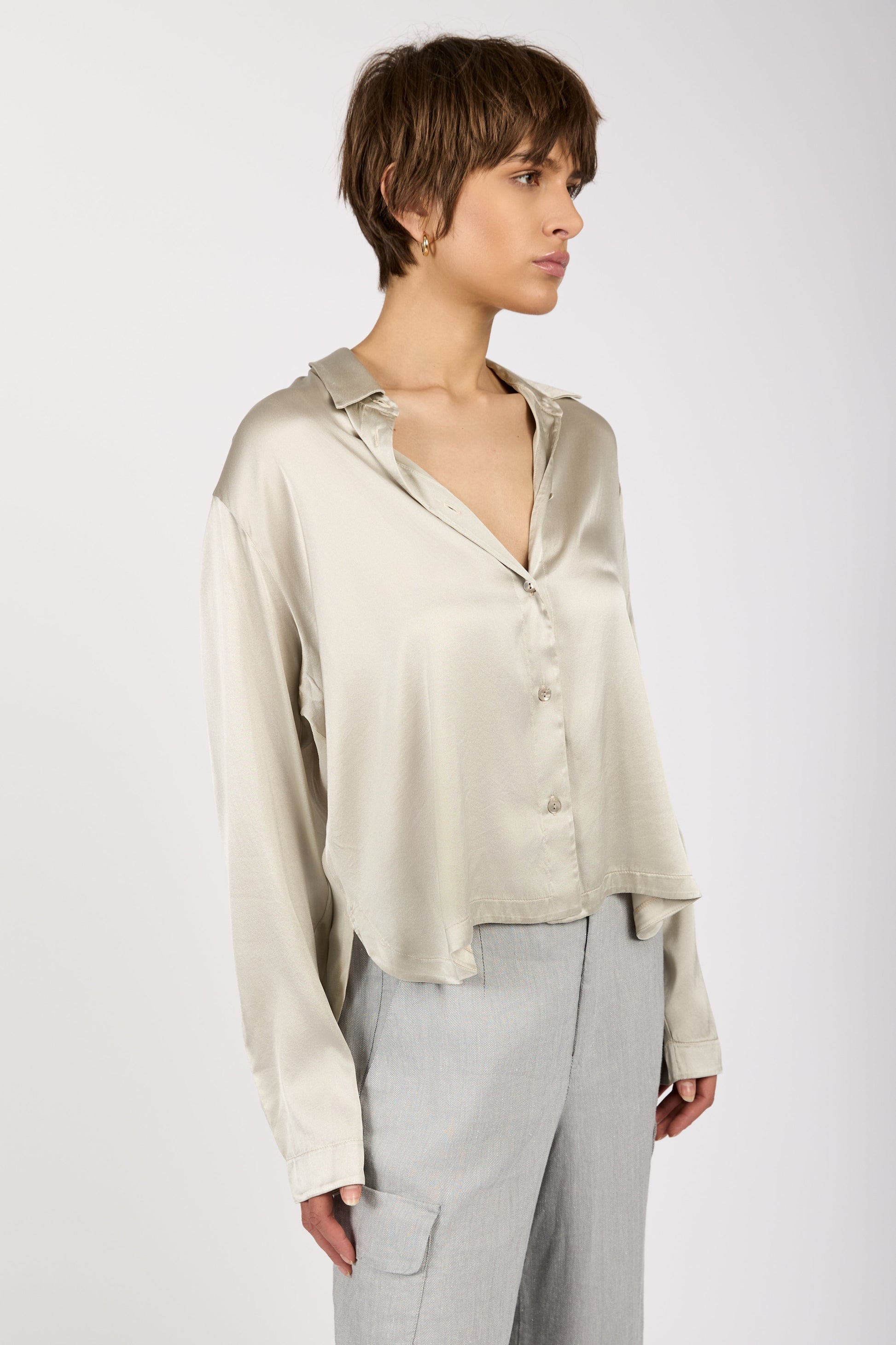 Button-Down Stretch Silk Shirt in Pearl Grey