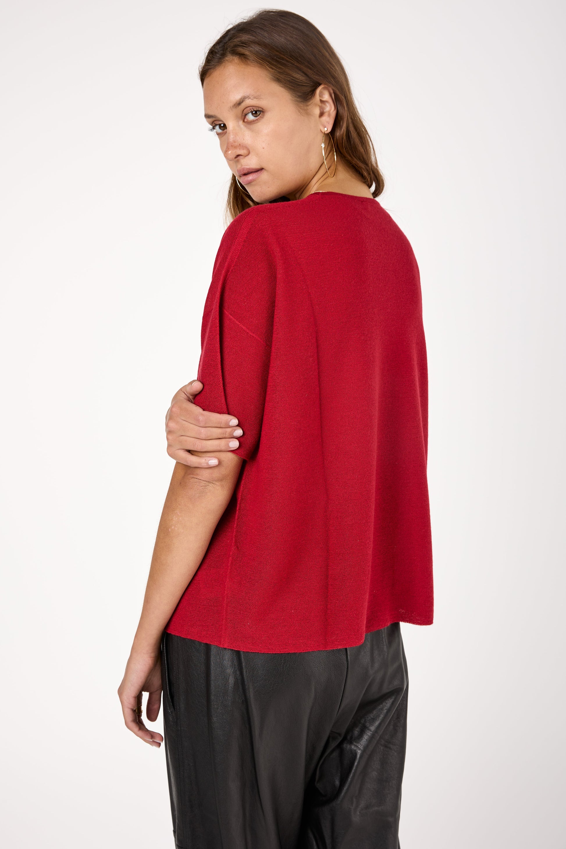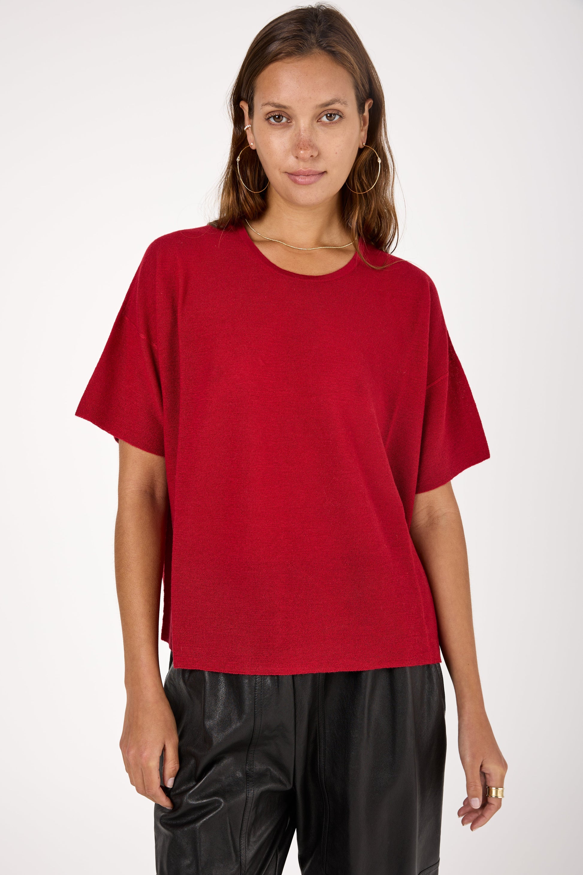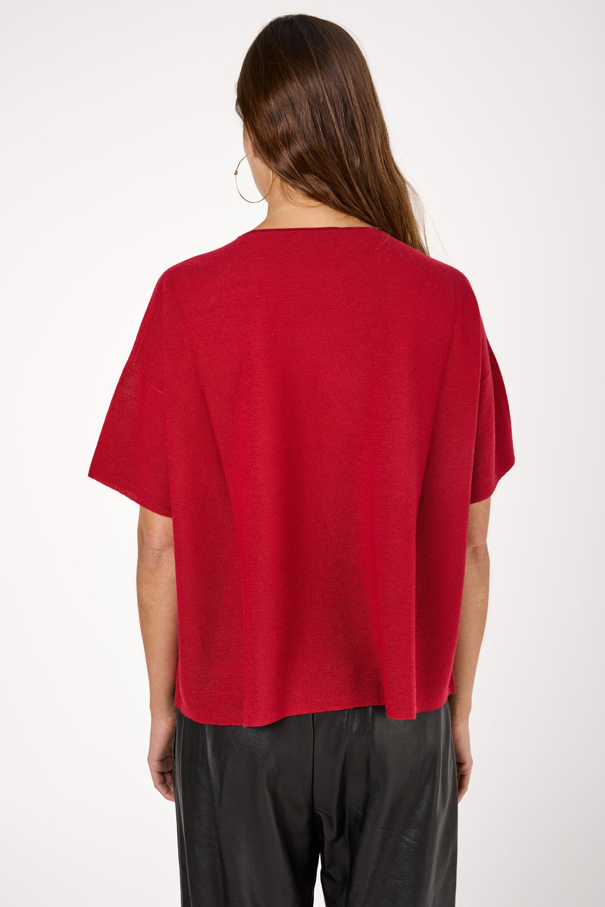 Cashmere Short Sleeve Knit Sweater in Rosso