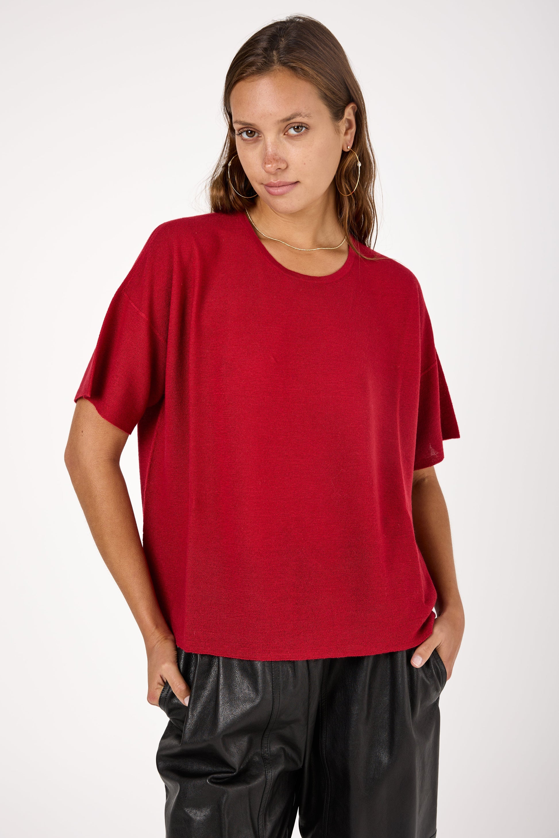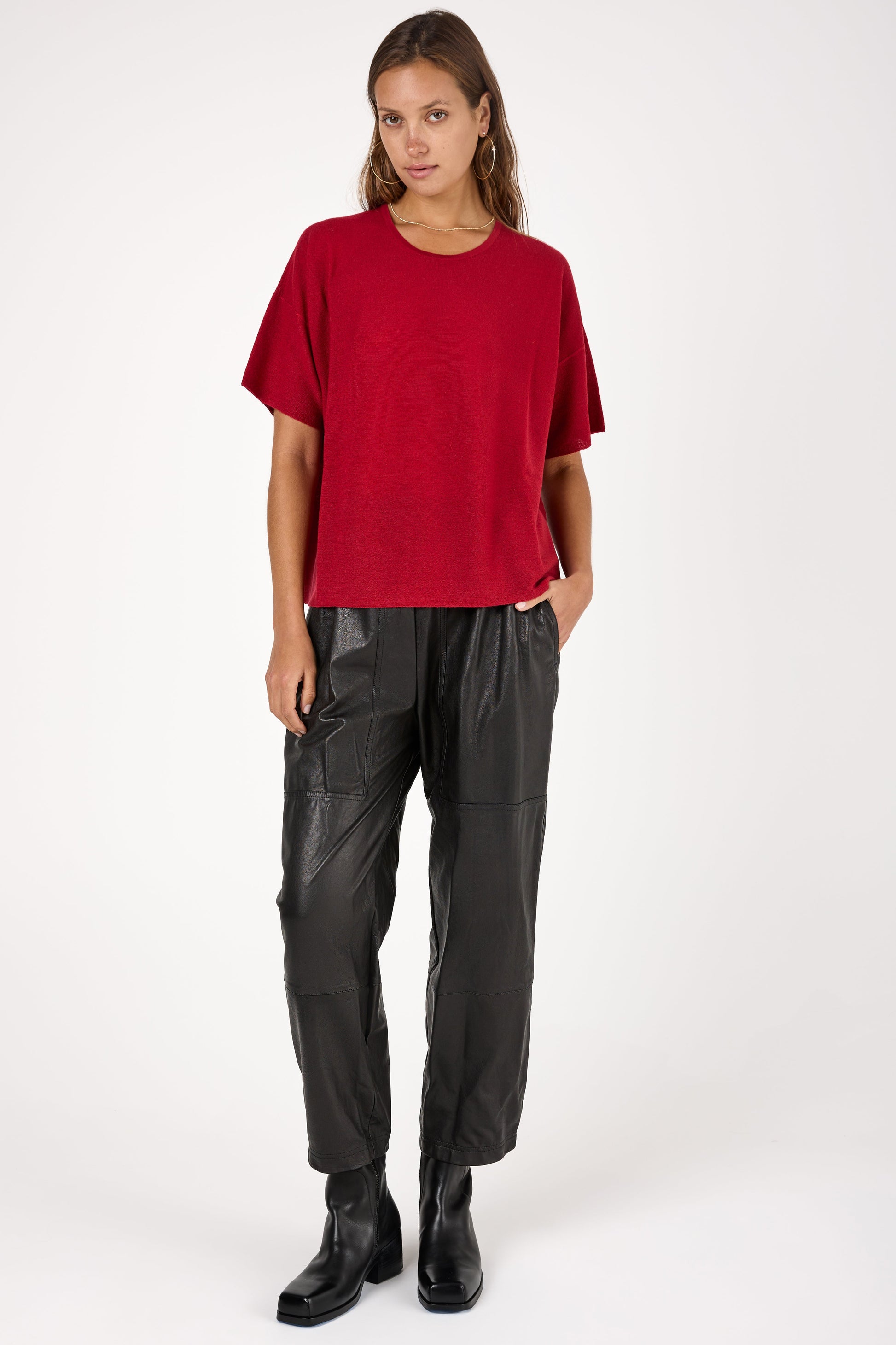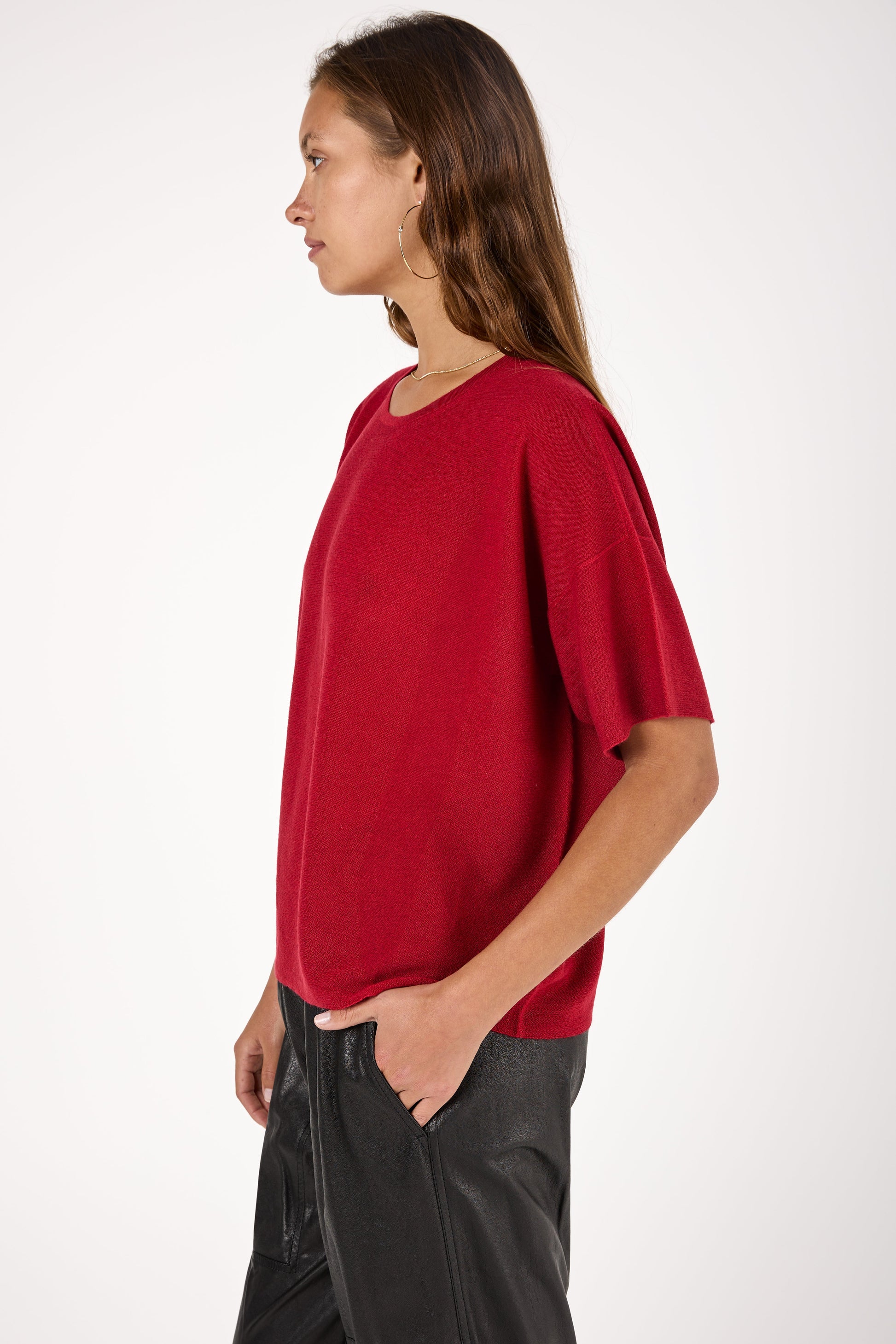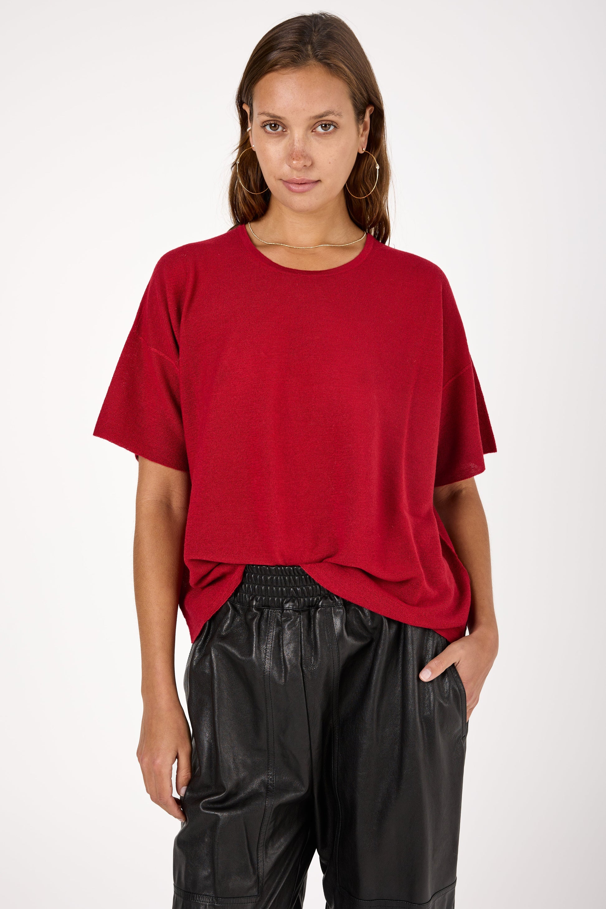 Cashmere Short Sleeve Knit Sweater in Rosso