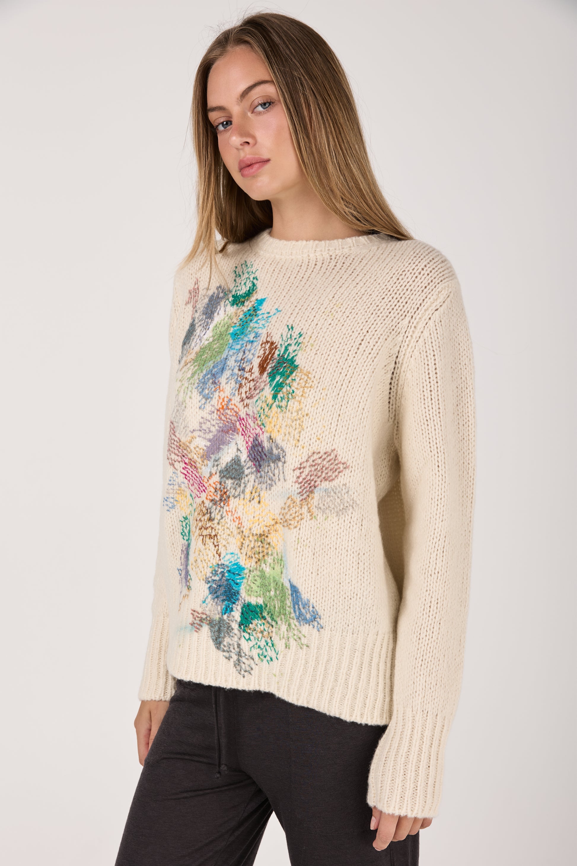 - Round Neck Pullover with Embroidery