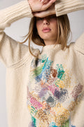 The AVANT TOI Cashmere Silk Pullover with Embroidery in Bianco is crafted in Italy from a luxurious blend of cashmere and silk. This pullover offers a featherlight feel with exquisite softness. Detailed with a vibrant, painterly embroidery, each piece transforms a timeless round-neck silhouette into a refined expression of modern artistry and individuality.