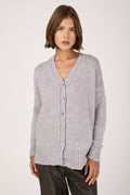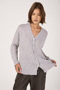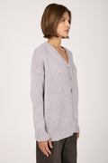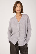The PRIVATE 0204 Cashmere Silk Voluminous Cardigan in Light Grey embodies quiet luxury and refined comfort. Expertly crafted in Italy from a sumptuous blend of cashmere and silk, it offers a soft, voluminous drape and effortless elegance. Finished with ribbed trims and tonal buttons, this timeless piece elevates everyday layering with understated sophistication.