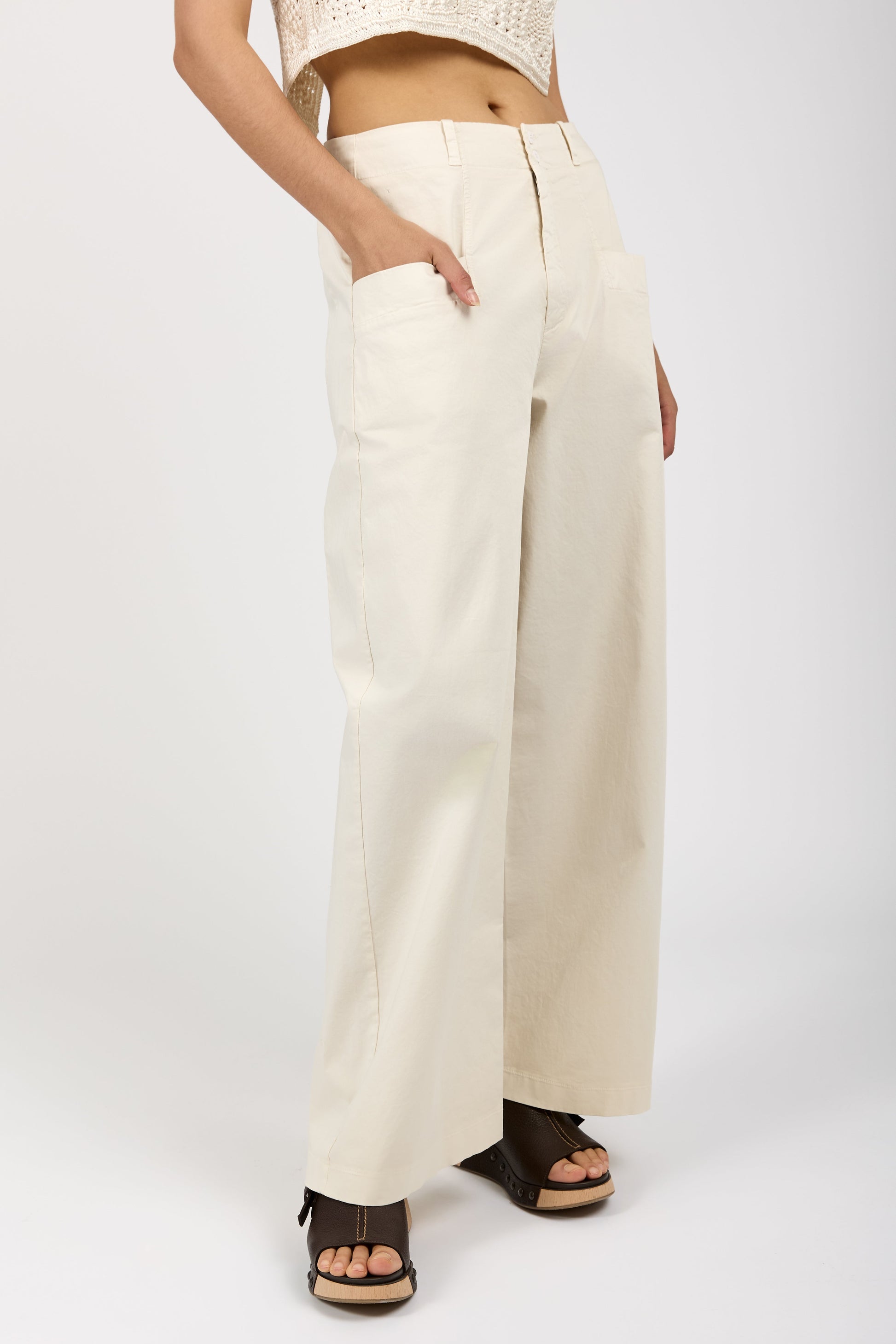 The TRANSIT Par-Such Comfort Fit Trouser Pant in Ivory combines modern style with all-day comfort. These relaxed-fit trousers, crafted from high-quality fabric, are perfect for casual or semi-formal occasions. The versatile ivory tone adds an elegant touch, making them easy to style with any outfit.