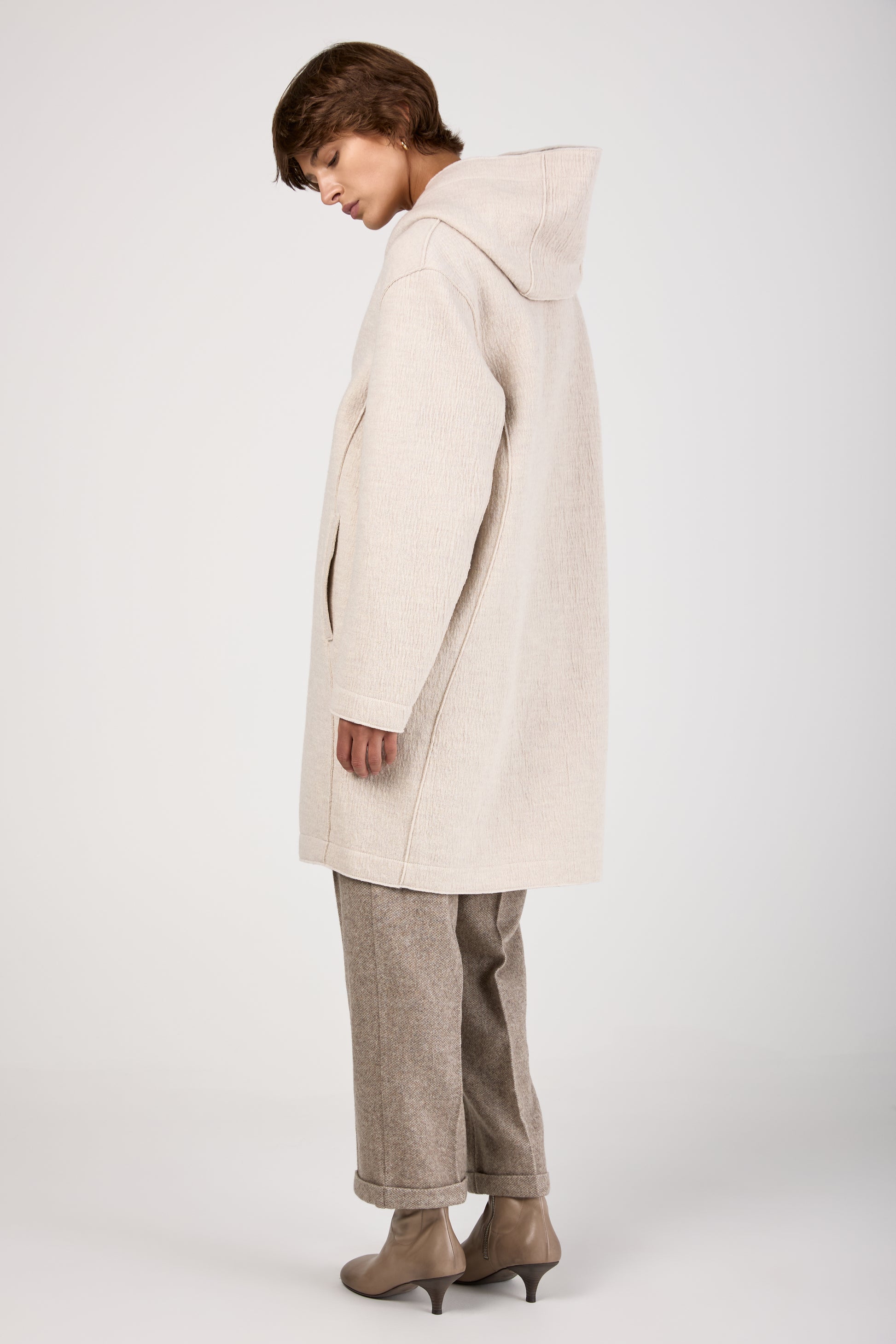 Comfort Hooded Long Wool Jacket in Ice