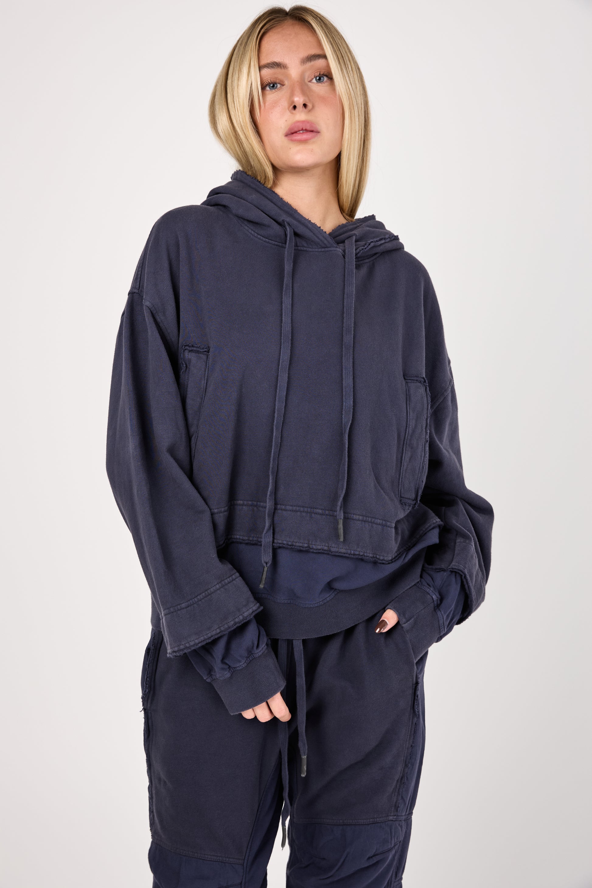The ANDREA YA'AQOV Cotton Hoodie Sweatshirt in Purple Blue combines comfort with bold street style. Crafted from lightweight, breathable cotton, this relaxed-fit hoodie features a drawstring hood, kangaroo pocket, and ribbed cuffs for a sleek finish. The vibrant Purple Blue hue adds a statement touch, making this hoodie a versatile essential for any wardrobe.