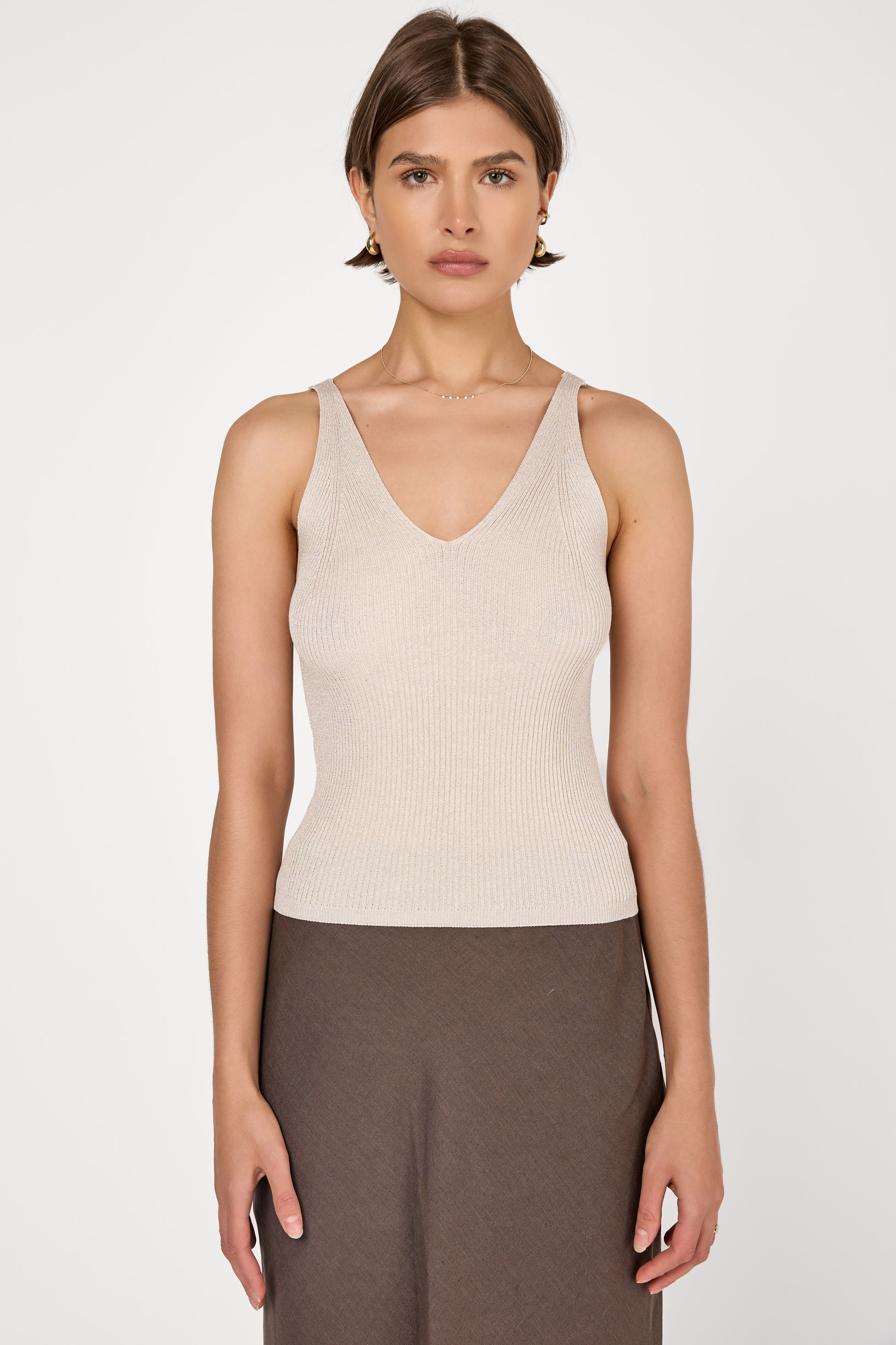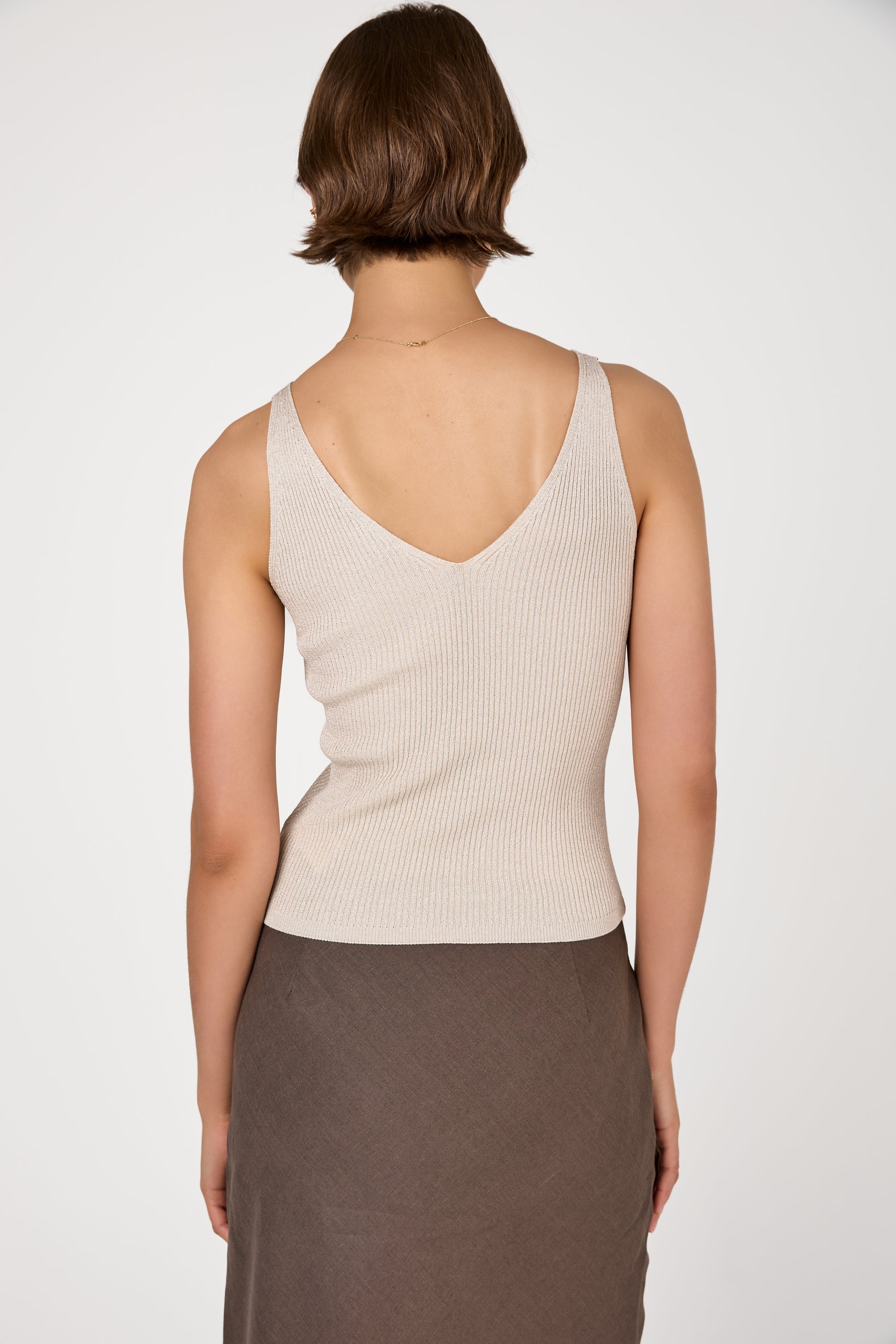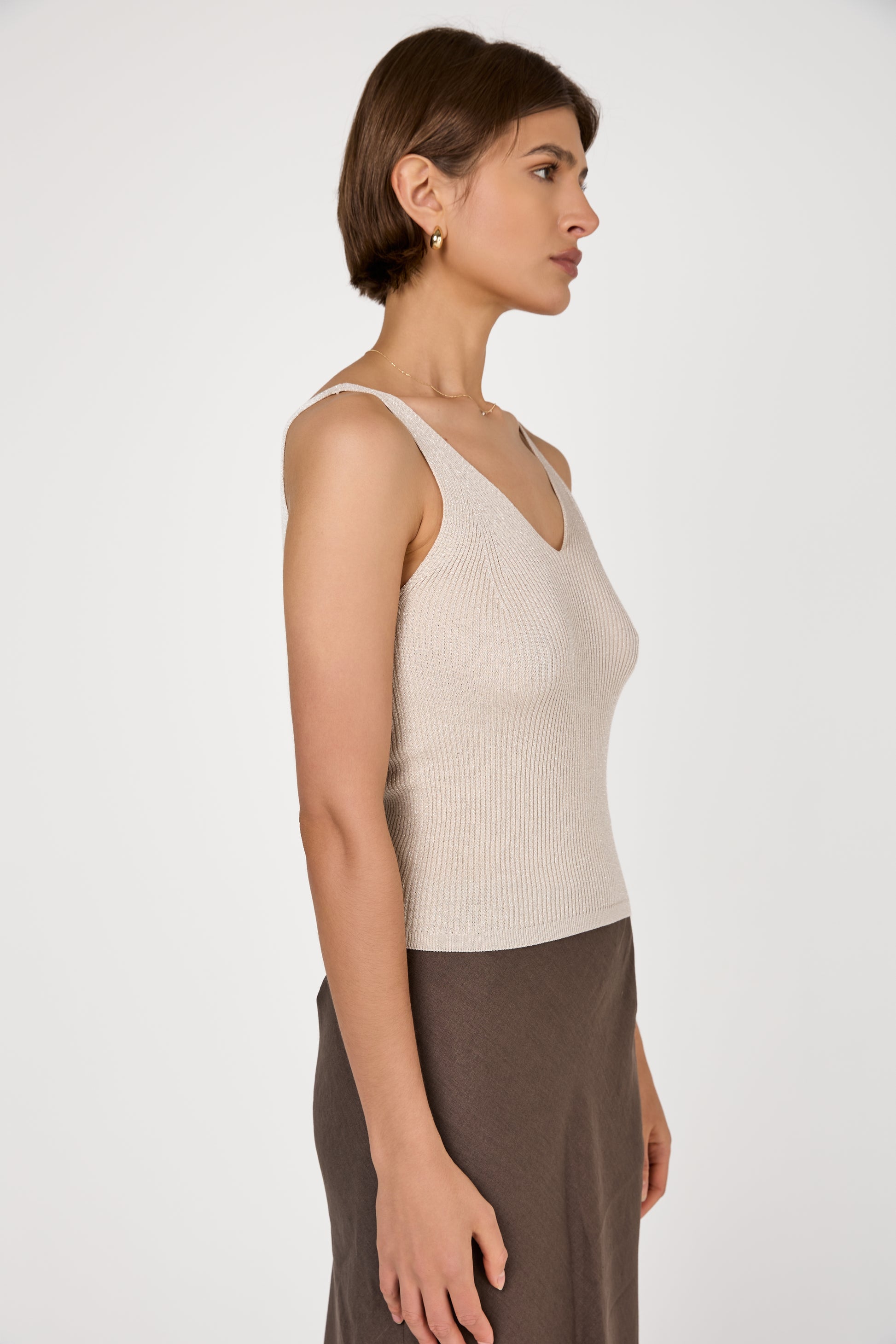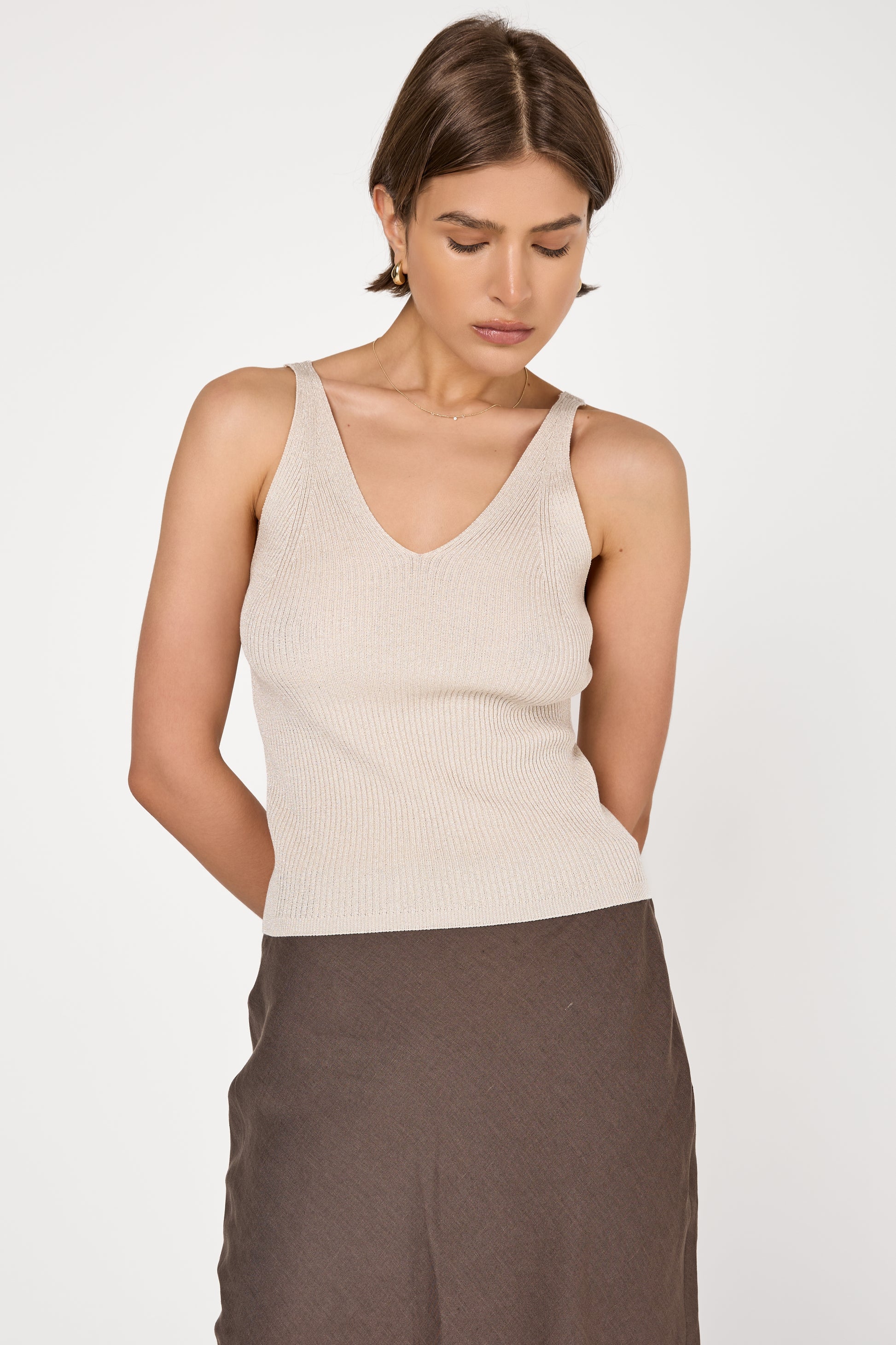 Cotton Knitted Tank Top in Lurex Quartz Sand