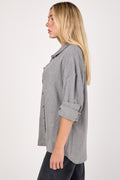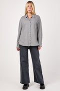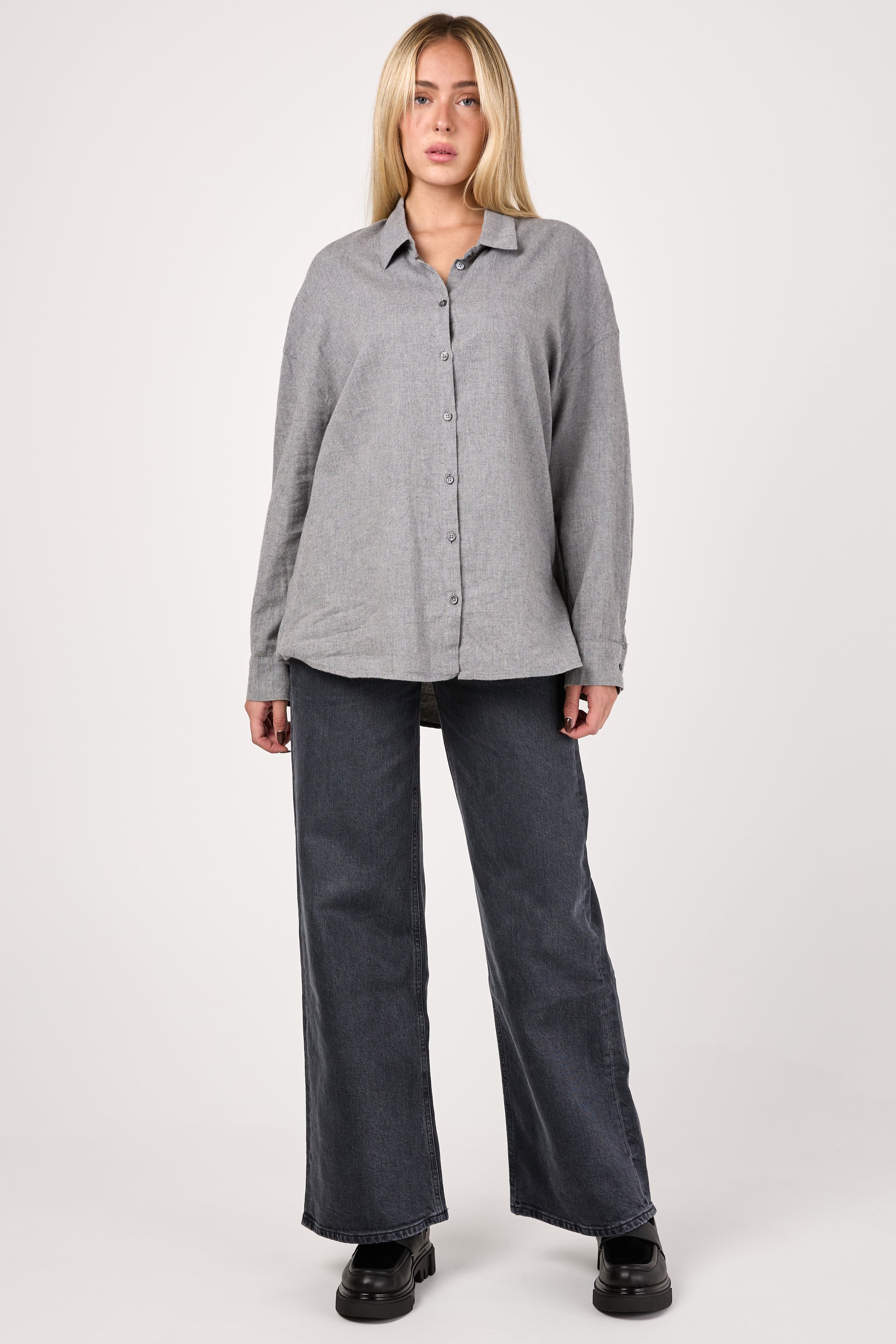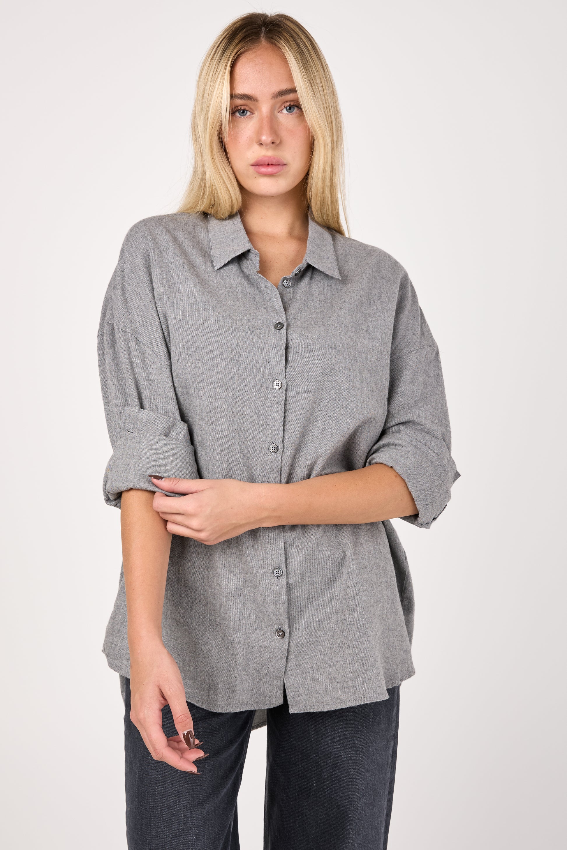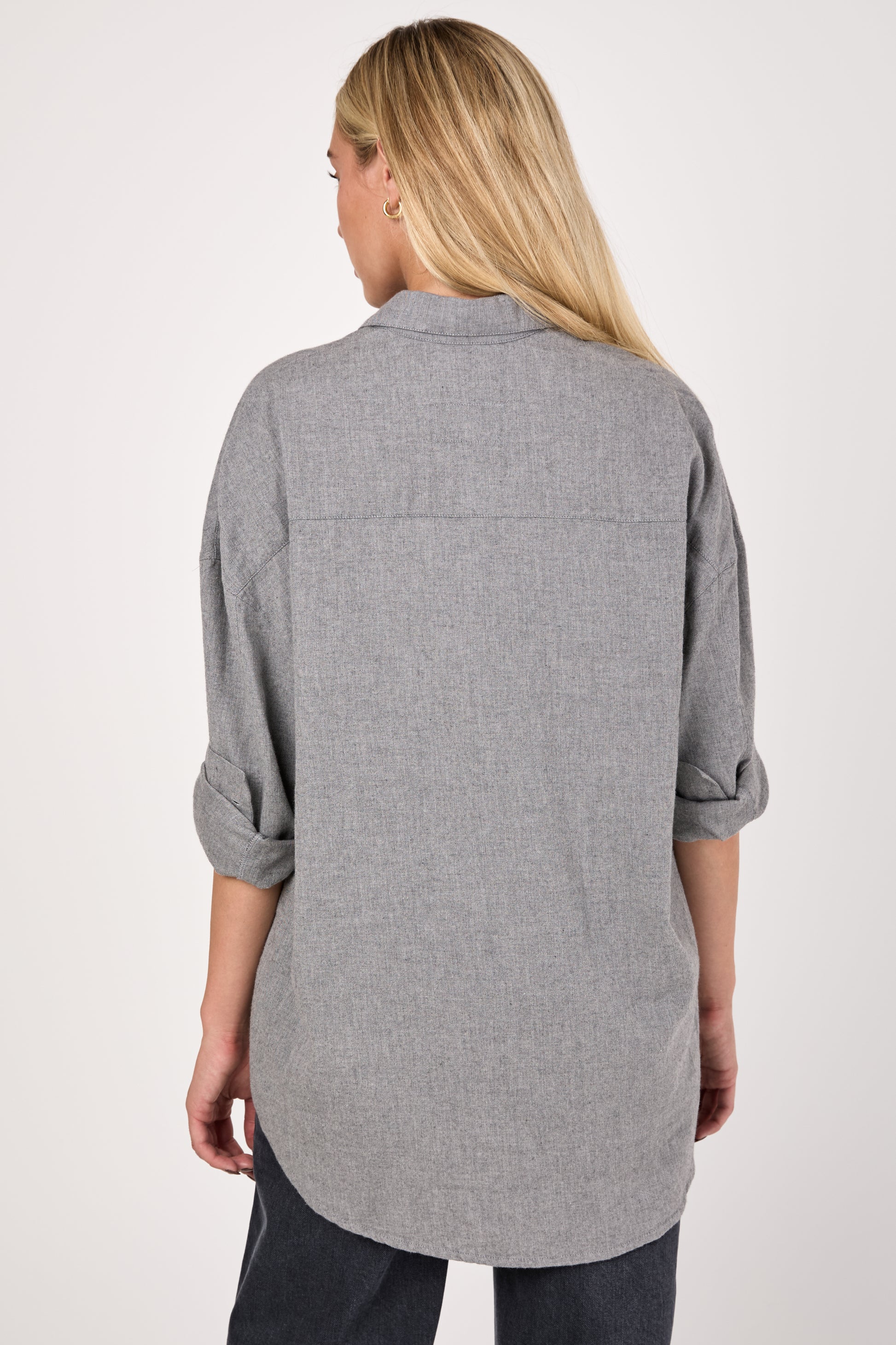PRIVATE 0204 Brushed Cotton Oversized Shirt in Coal. 100% Cotton. Made in Italy.