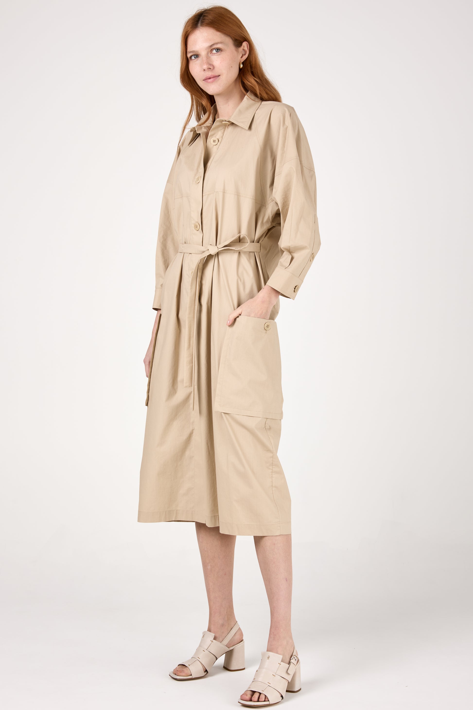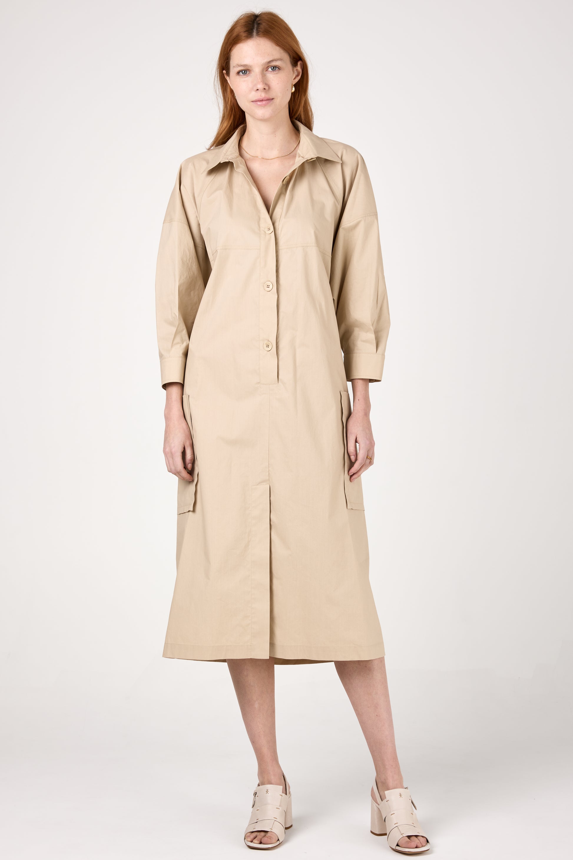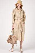 The GENTRYPORTOFINO Cotton Woven Dress in Pietra features a relaxed yet structured silhouette, complete with a classic button-down front and long sleeves. Crafted in Italy from premium lightweight cotton, this wardrobe essential offers effortless sophistication, making it perfect for both casual refinement and elevated styling.