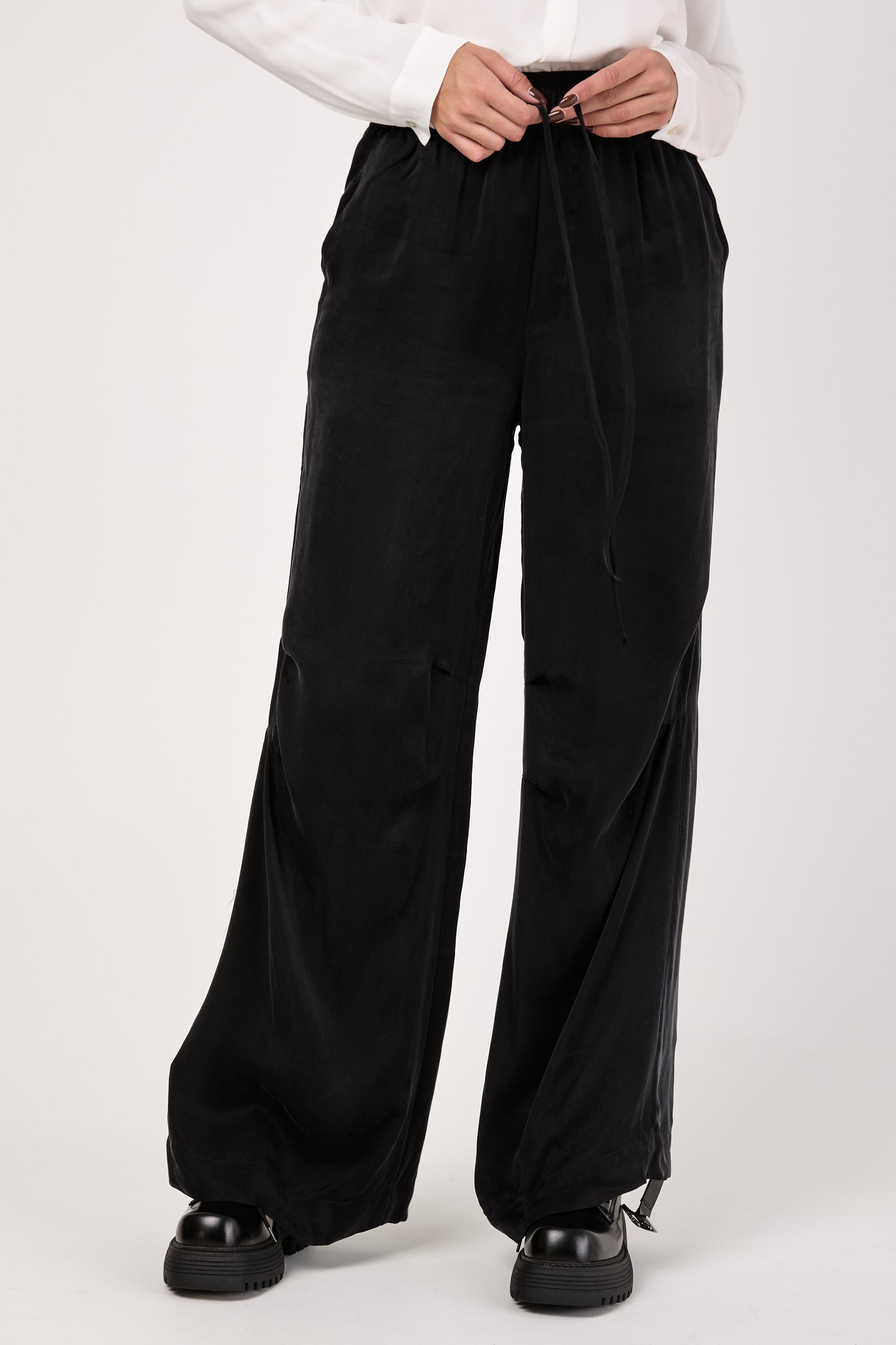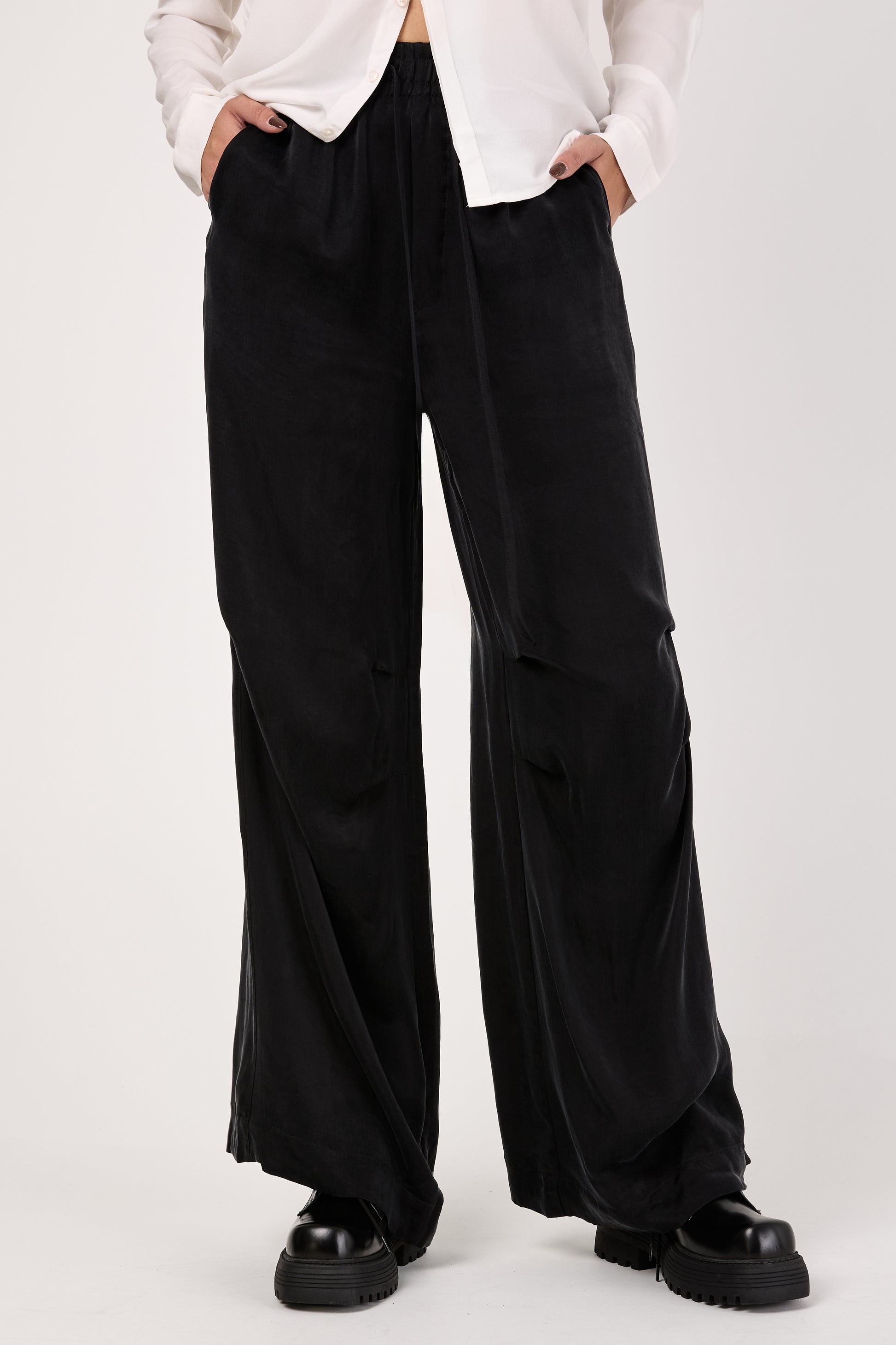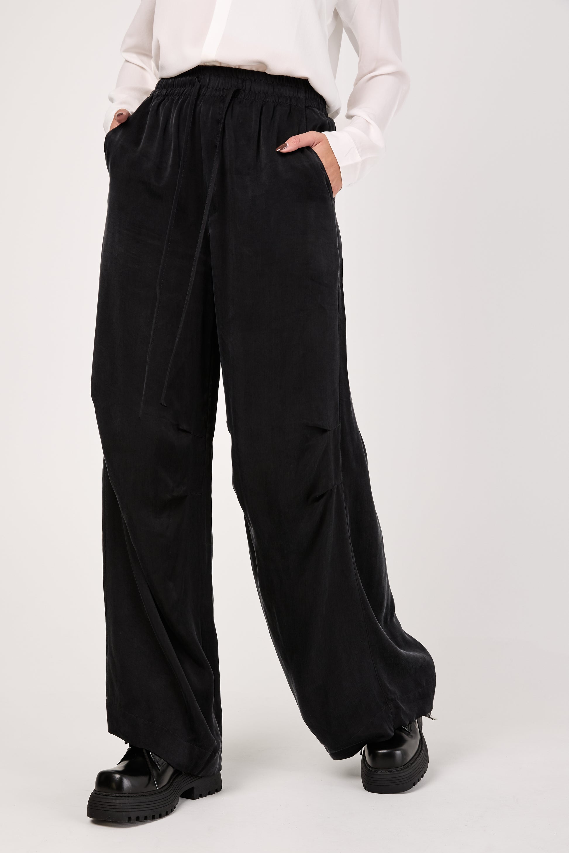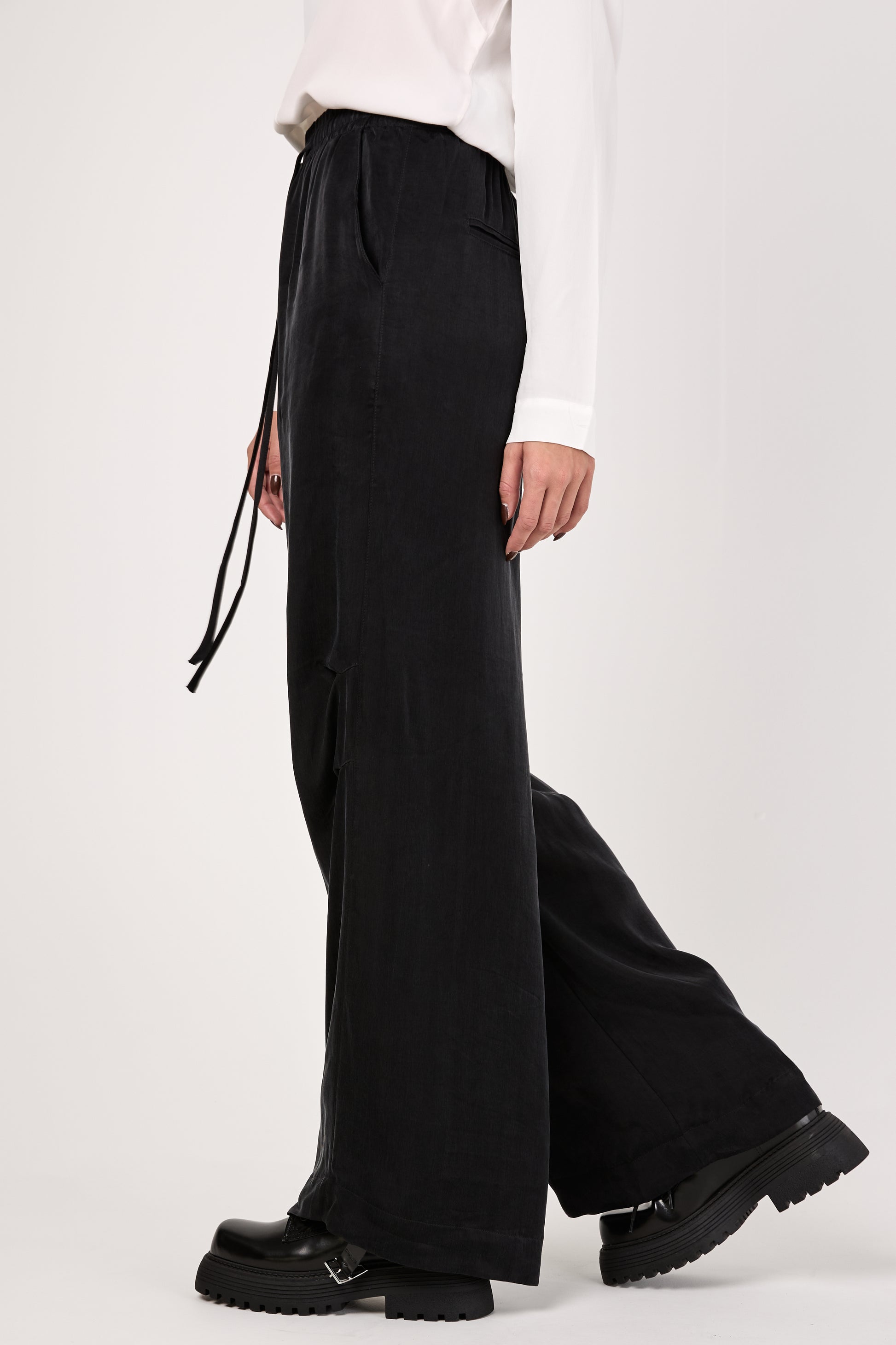 Cupro Wide Pants in Black