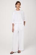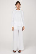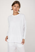 PRIVATE 0204 Fine Cotton Soft Knit Sweater in White. 100% Cotton. Lightweight knit. Made in Italy..