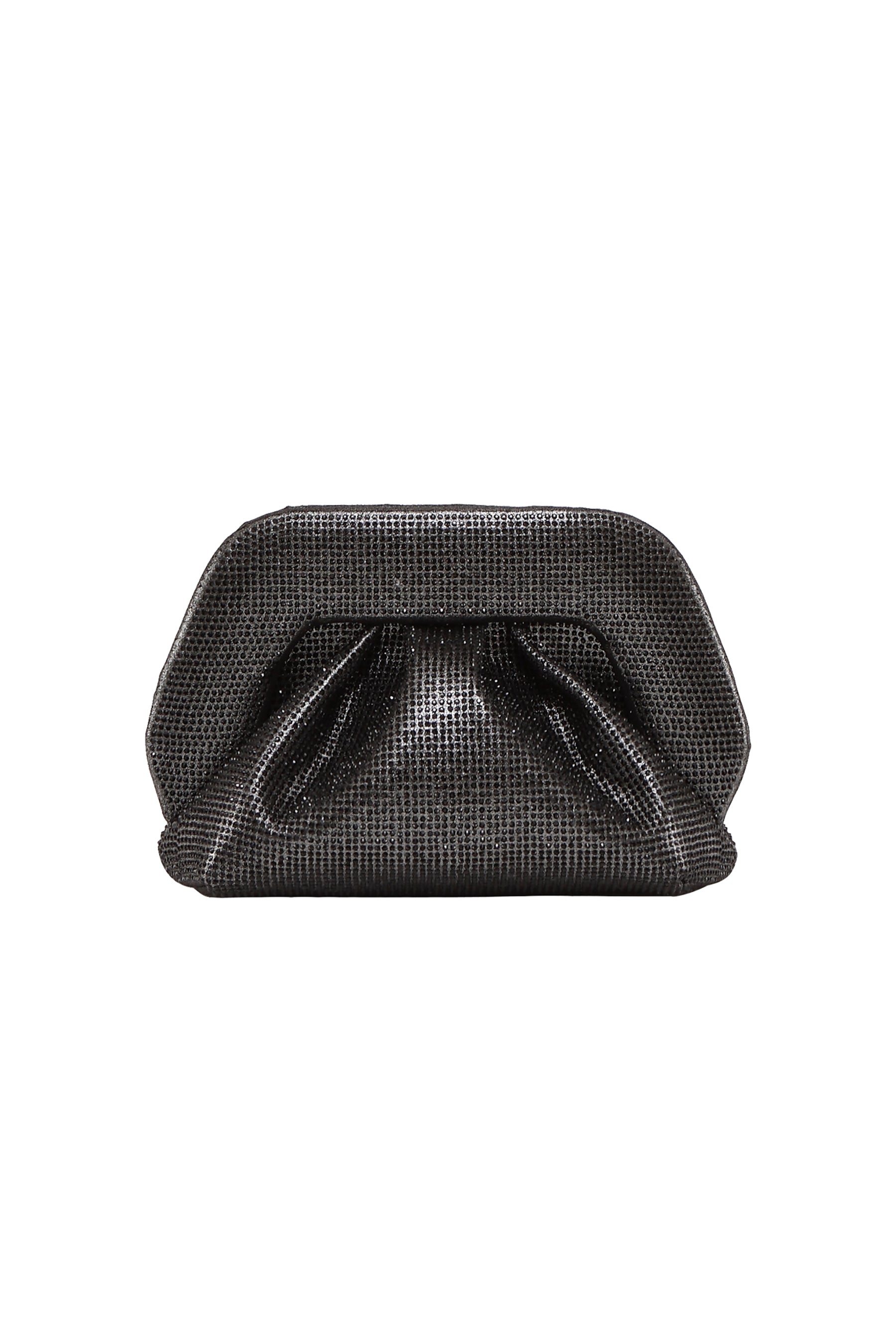 The THEMOIRè Gea Strass Bag in Black is an elegant, Italian-made accessory adorned with matching rhinestones. Featuring a magnetic closure and a removable shoulder strap, this bag offers both functionality and glamour. Its inner lining is crafted from recycled materials, aligning with sustainable practices.