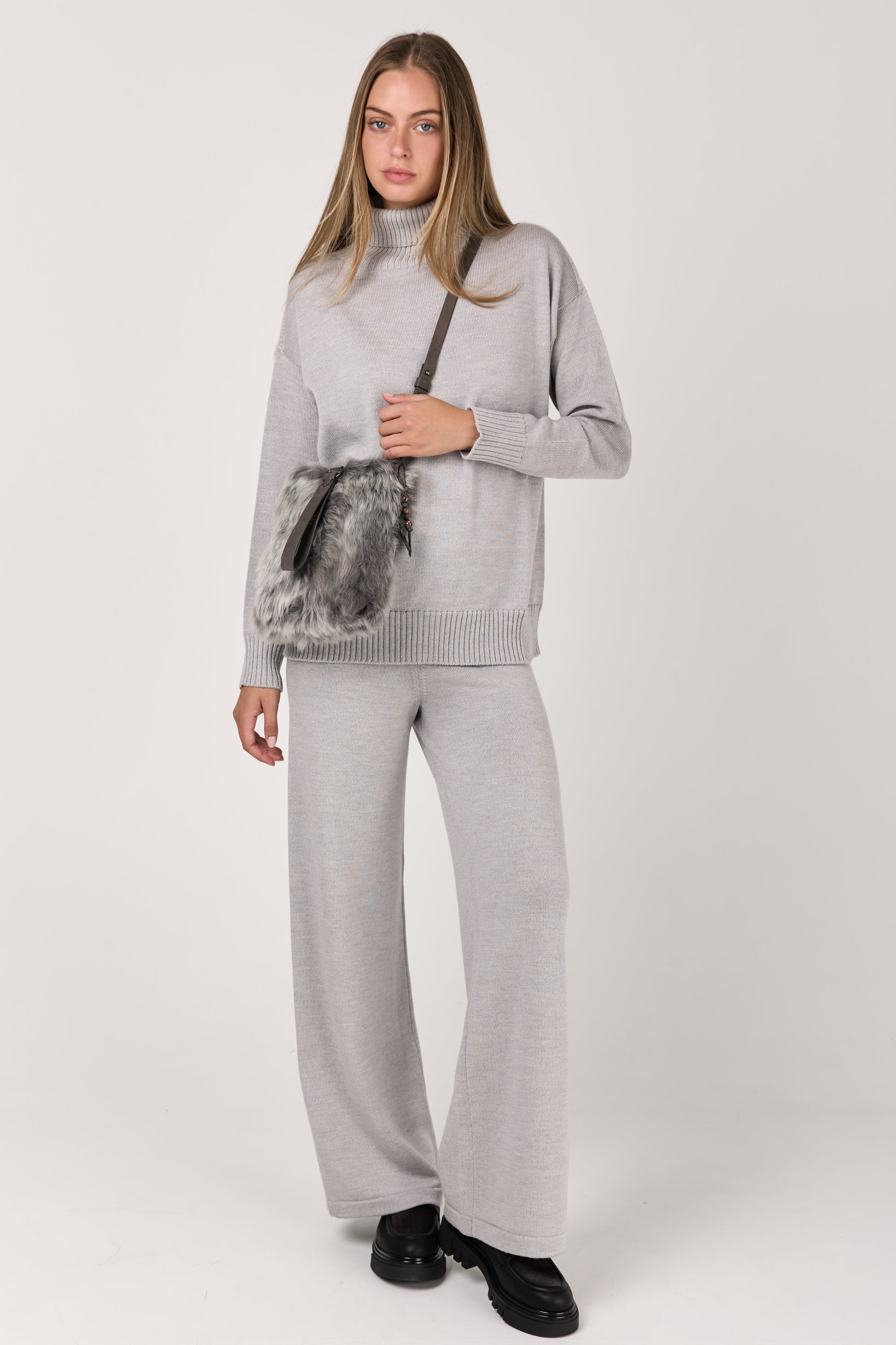Hamburg Wool Knitted Trouser Pant in Light Grey