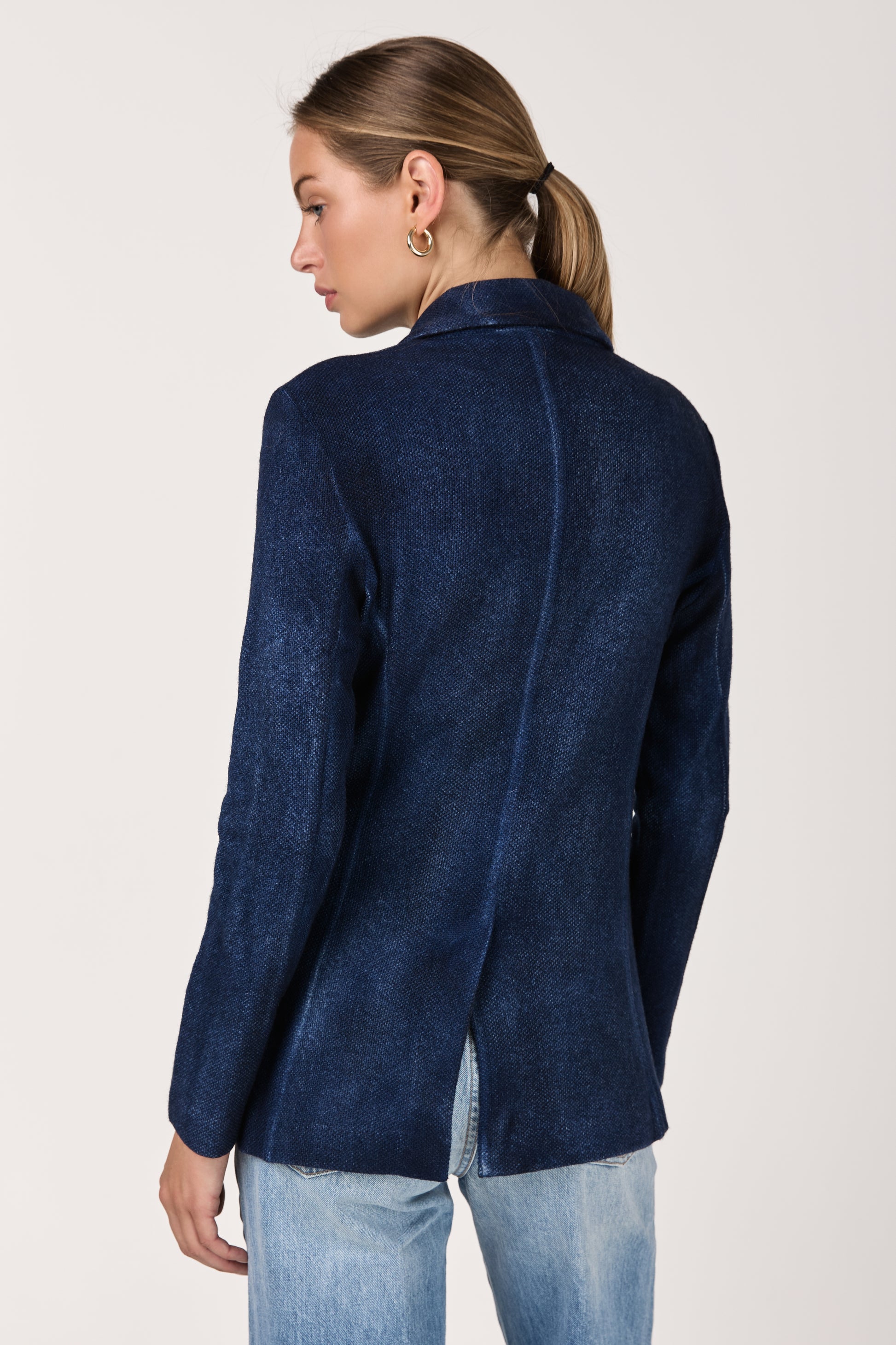 The AVANT TOI Hand Painted Reversible Jacket Blazer in Midnight redefines modern sophistication. Crafted in Italy, it features a sleek fitted silhouette with structured lines and a hand-painted finish. The midnight blue hue, deep and luminous, adds depth and refinement.