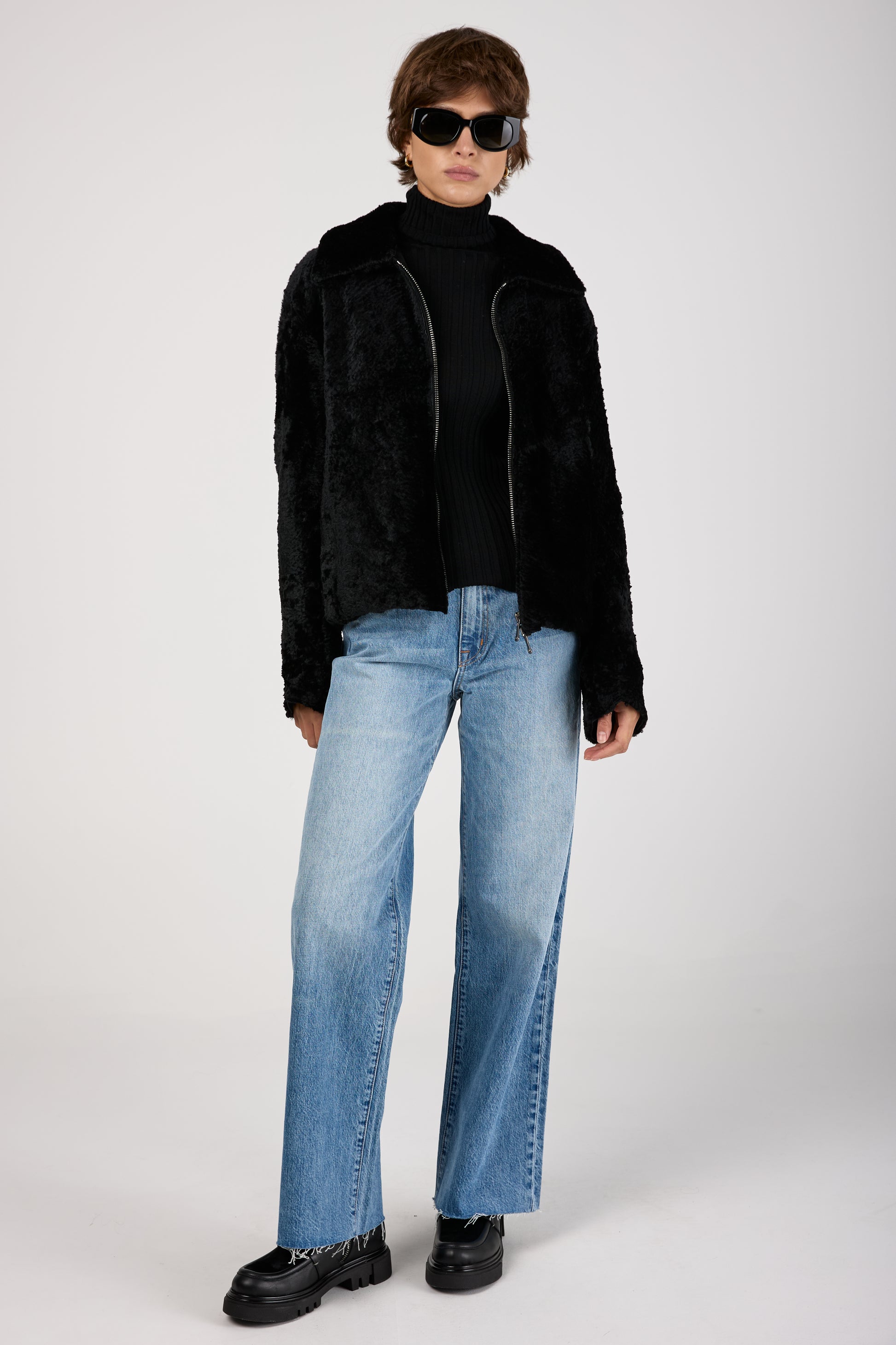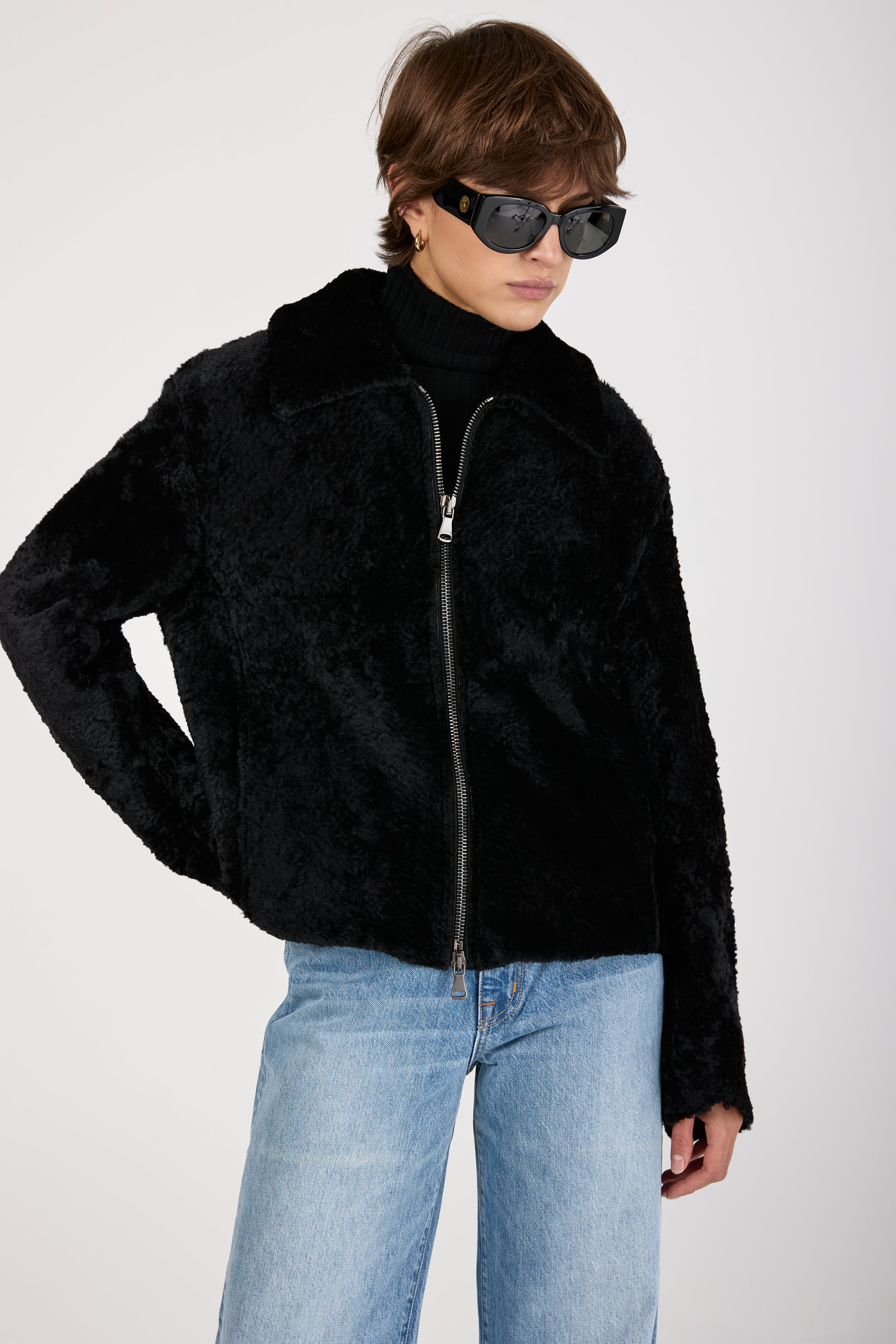 The TRANSIT Lamb Shearling Leather Jacket in Black is a luxurious wardrobe essential. Made in Italy from 100% lamb leather, this sleek jacket features a fully lined design for warmth and comfort.