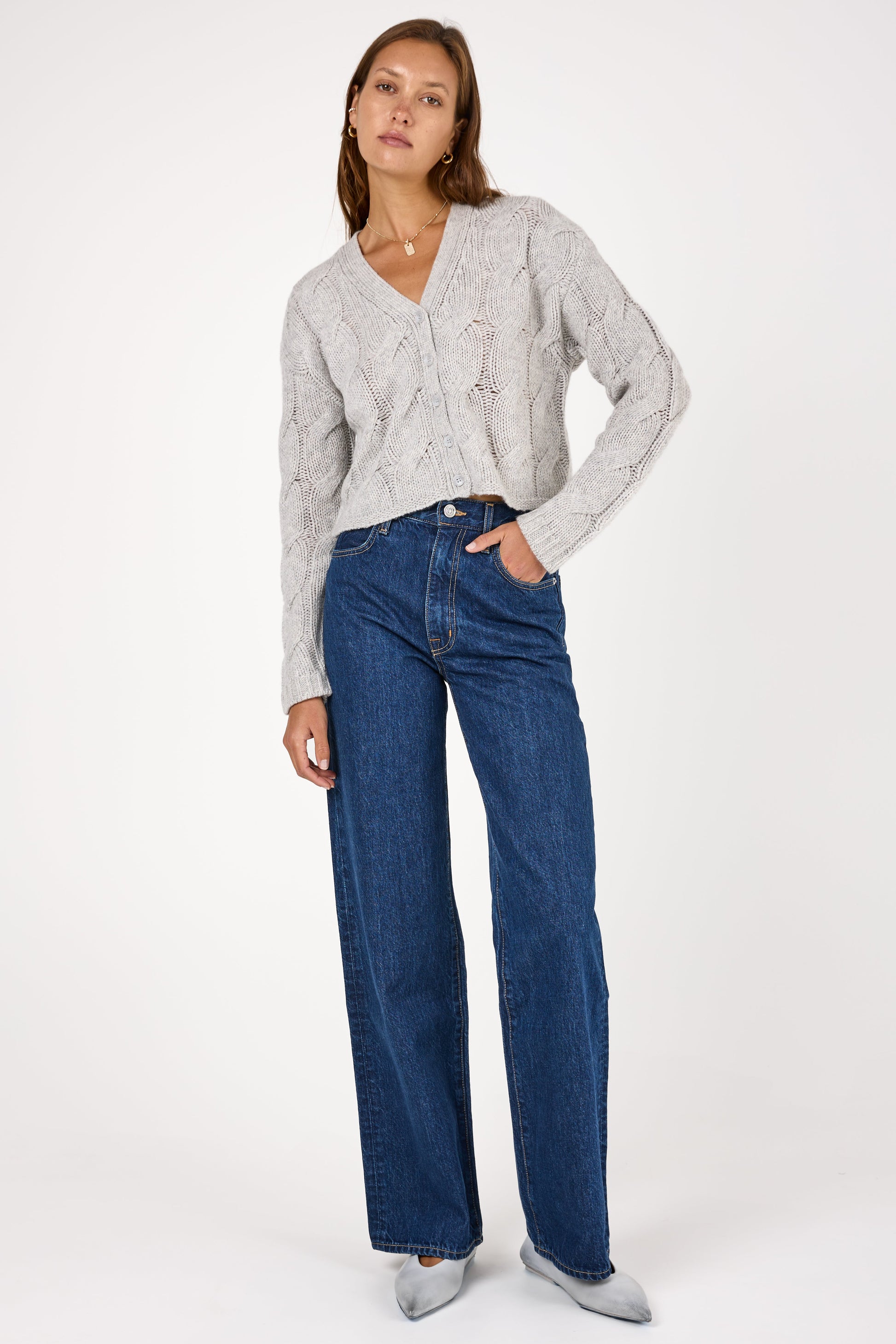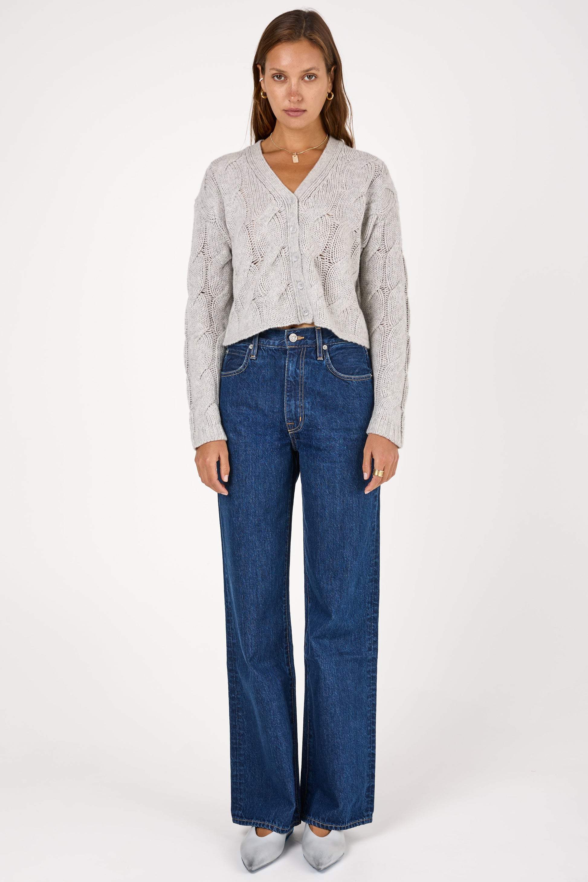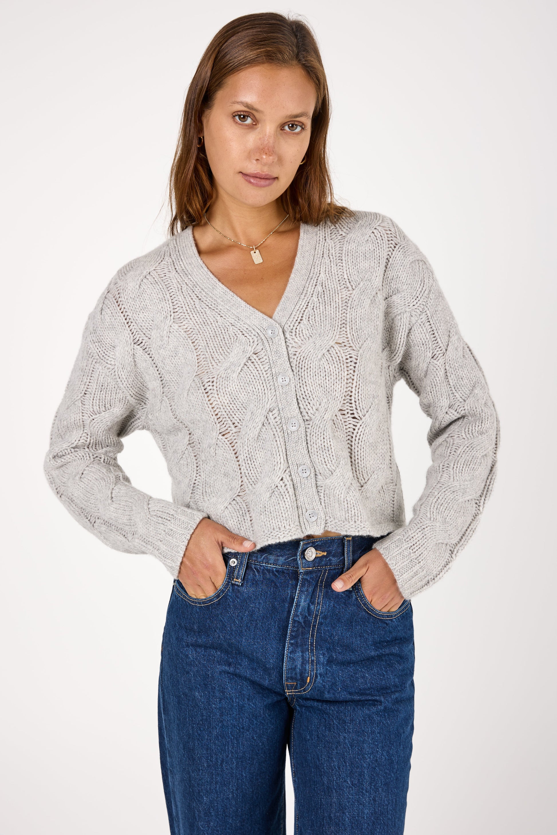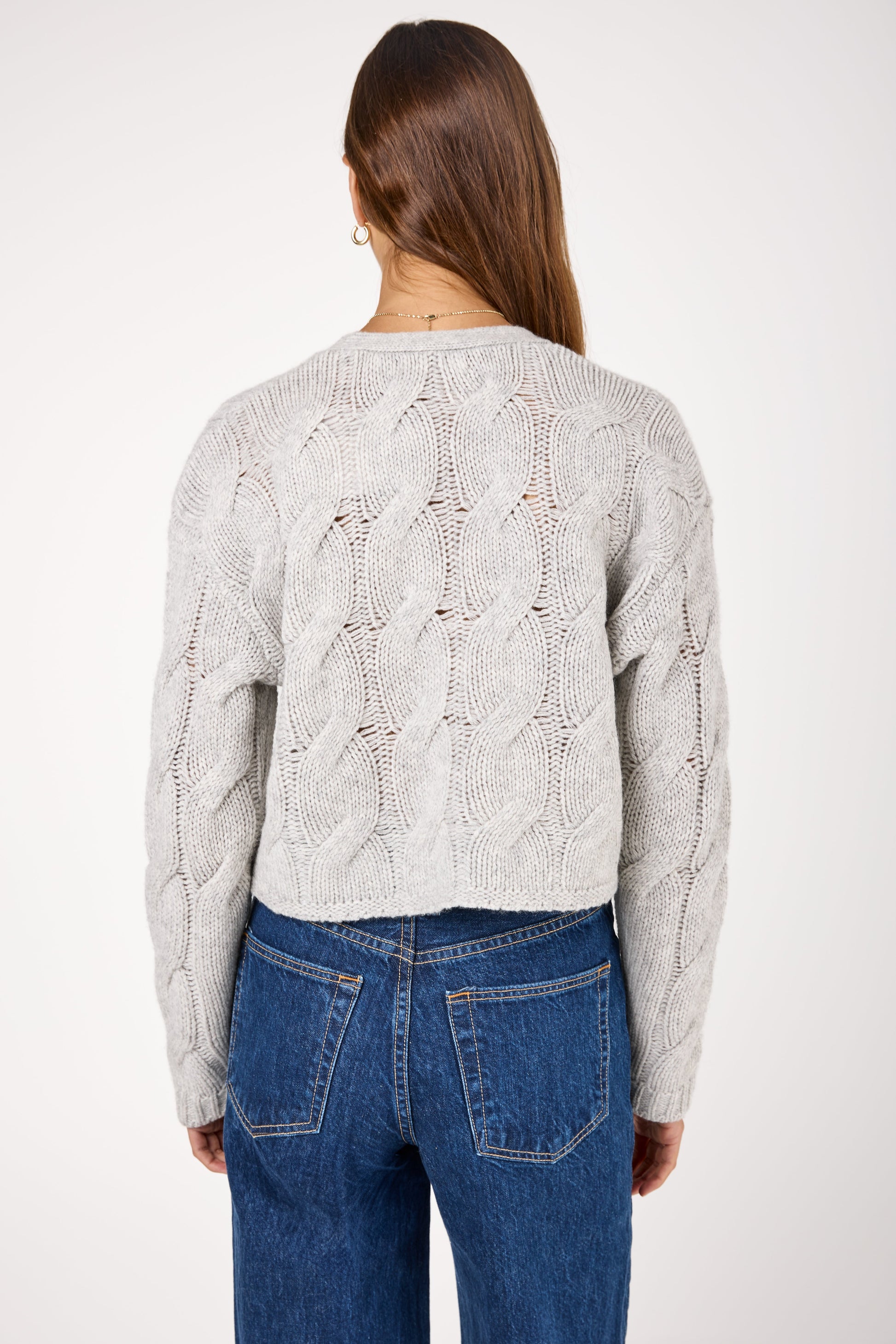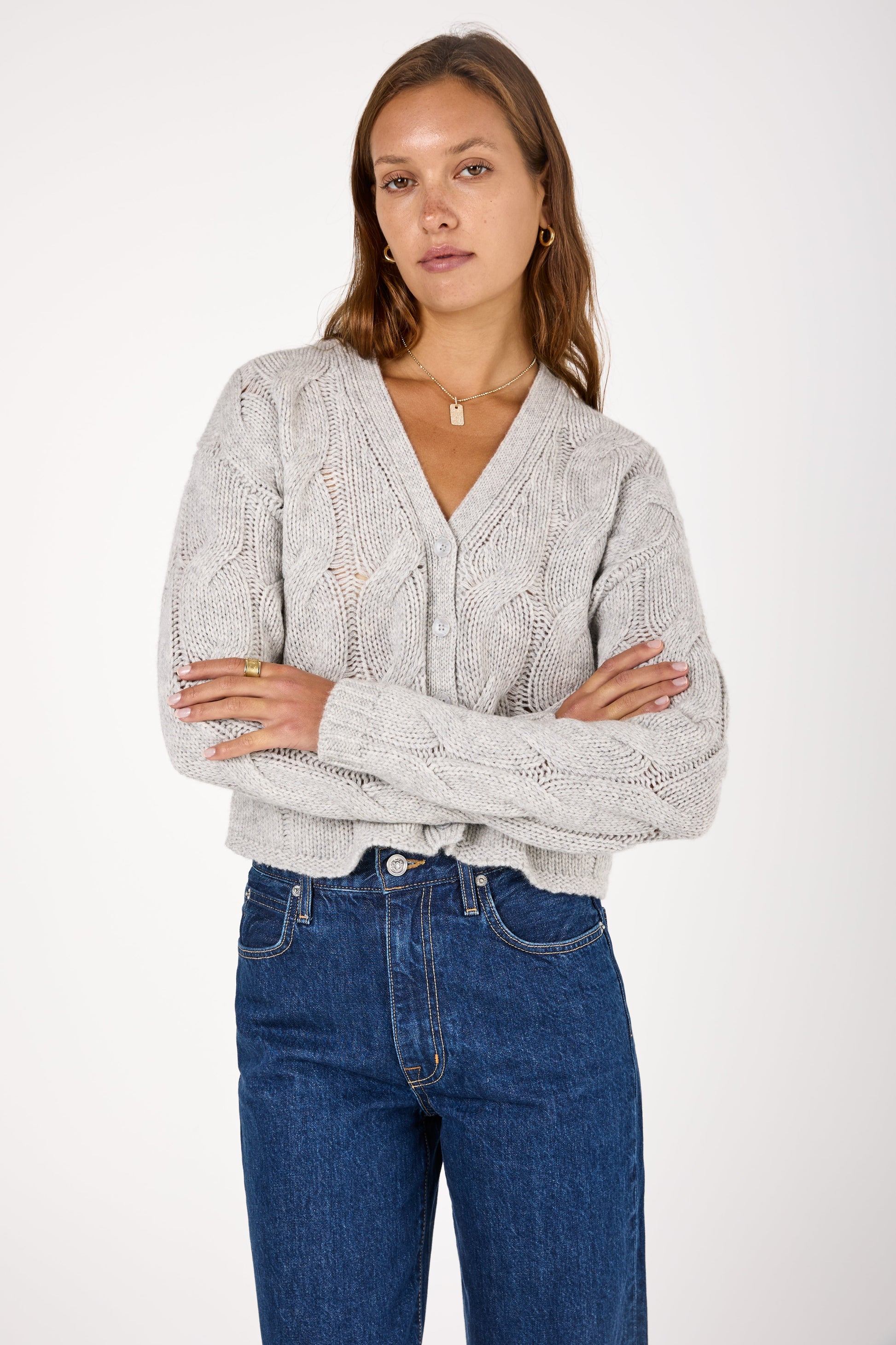 Jolie Cropped Cashmere Cable Cardigan in Foggy