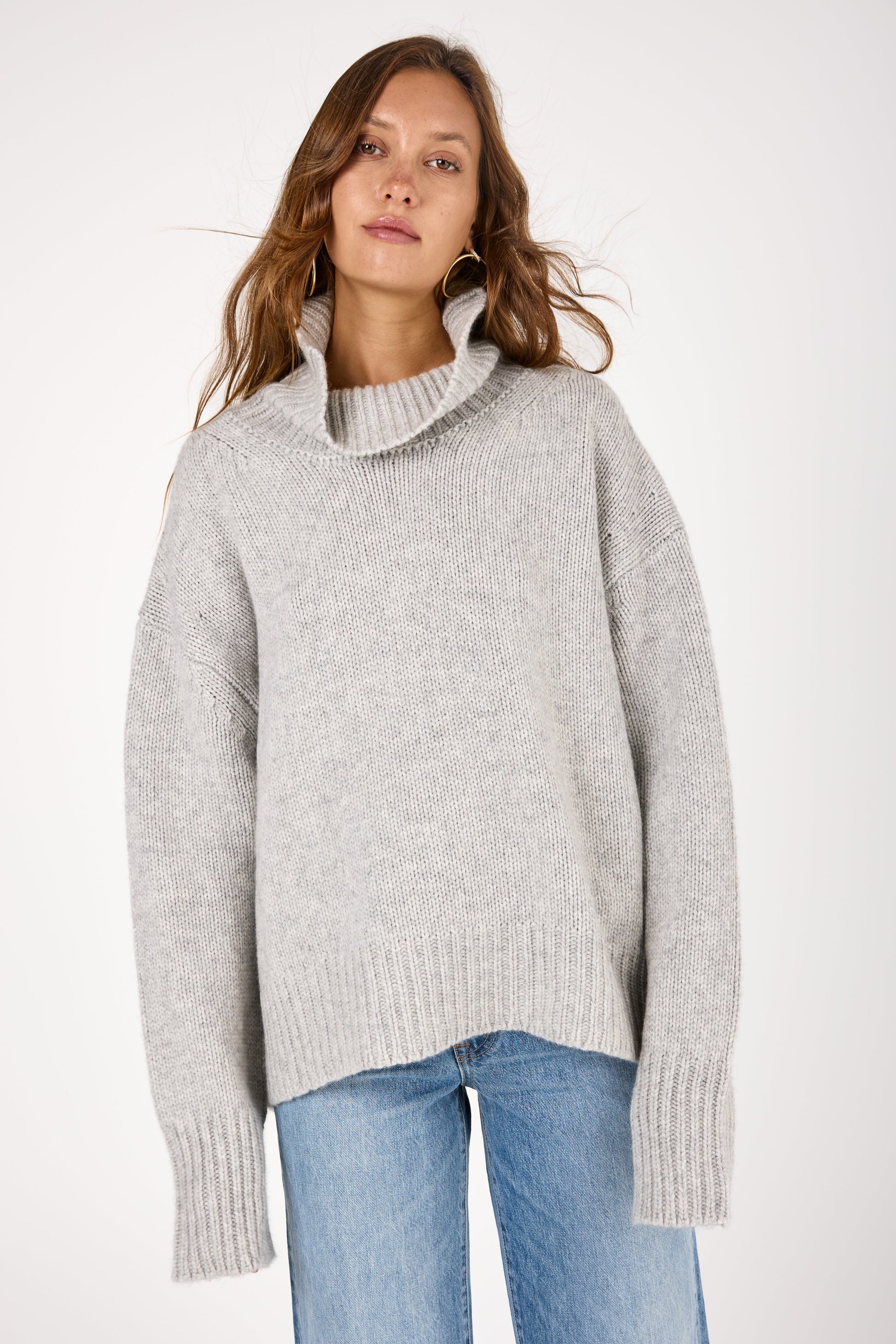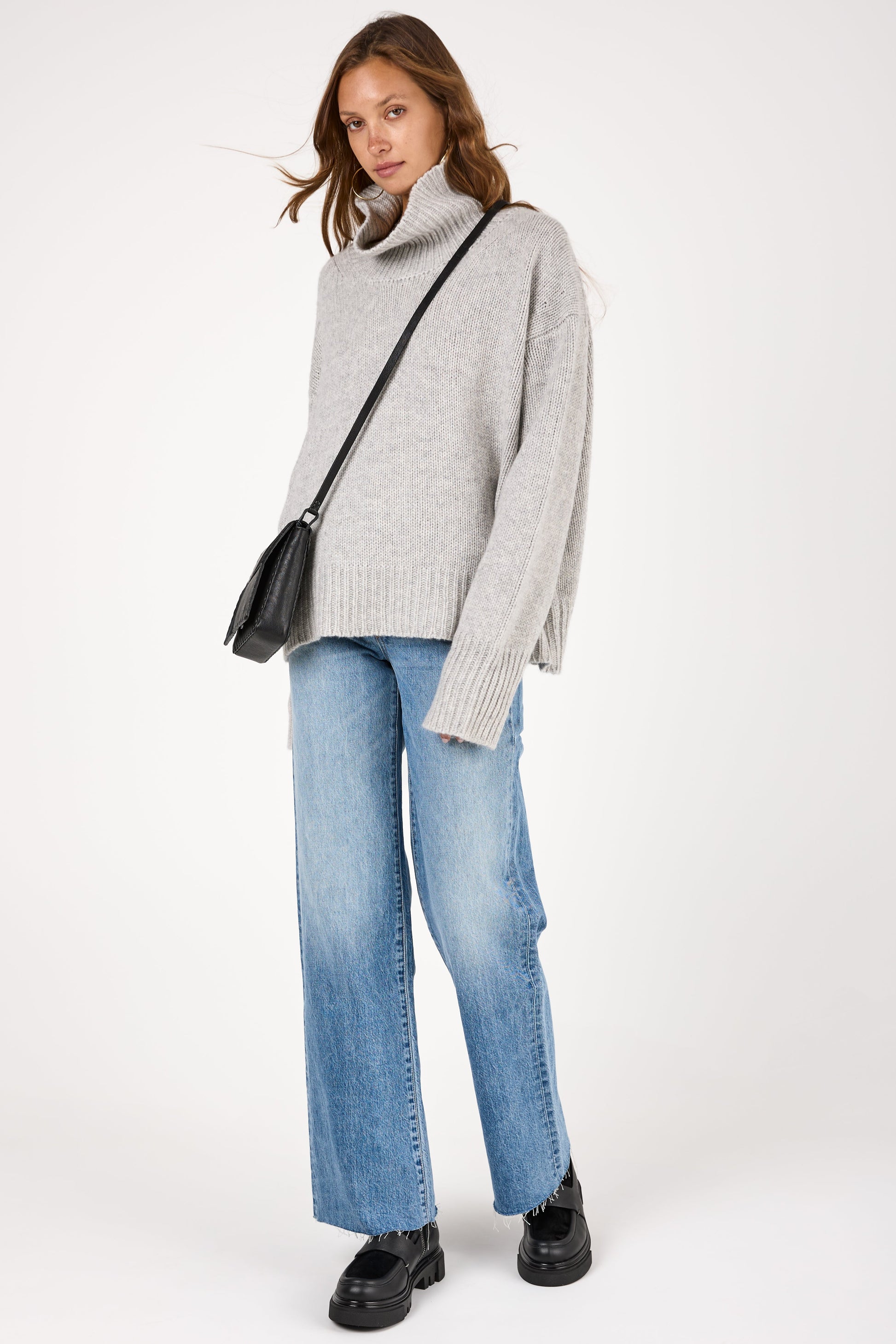 Scarlett Cashmere Mock Neck Sweater in Foggy