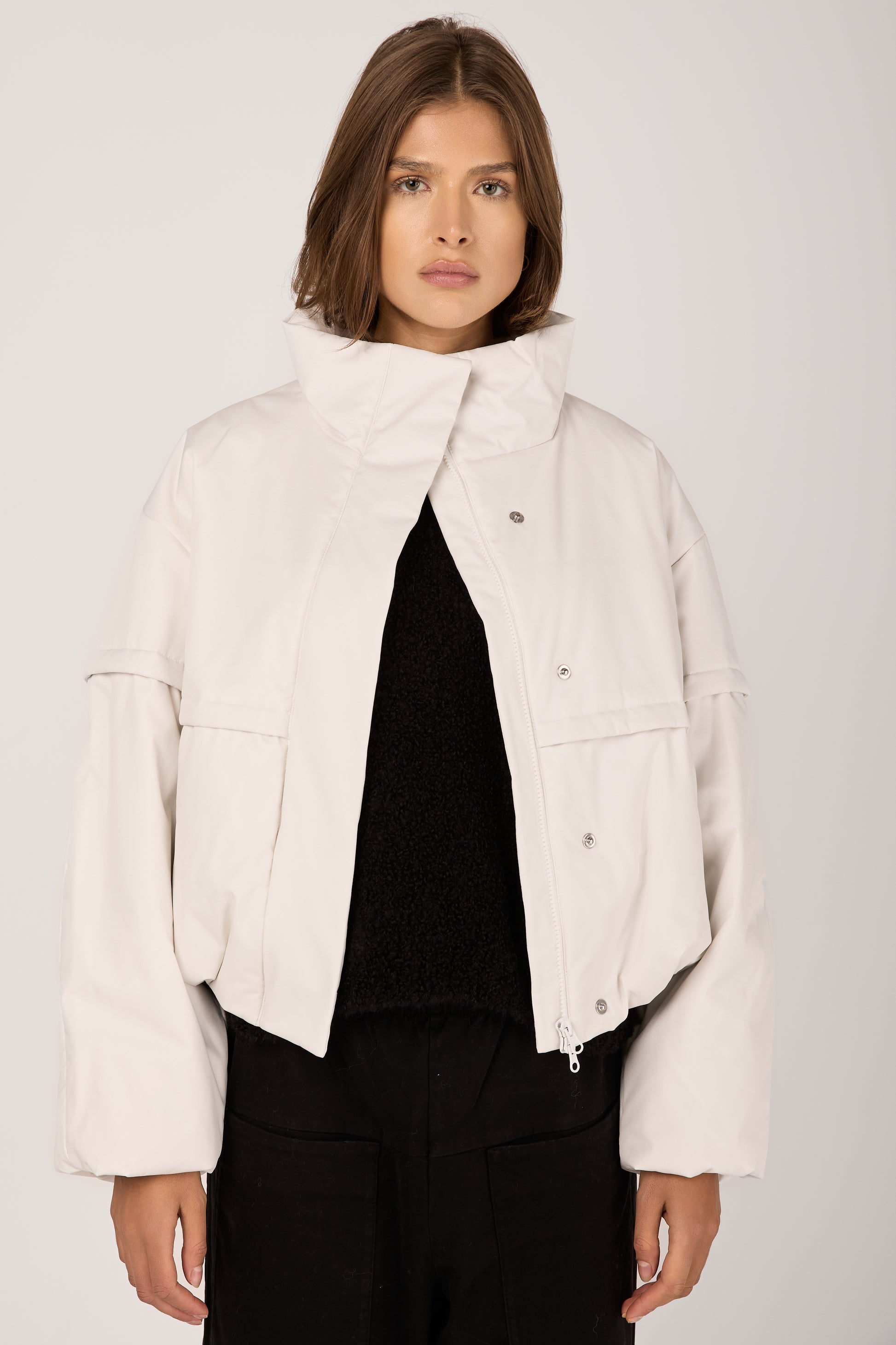 The MAX MARA Lina Quilted Jacket in Optical White effortlessly combines style and performance. Crafted from a two-layer laminated polyester twill, it features a water-repellent finish and protective membrane, ensuring lasting comfort and protection. The refined quilting, composed of a luxurious blend of camel wool and polyester, adds both texture and warmth. With its understated elegance, this jacket is perfect for layering over casual or tailored ensembles, making it a versatile addition to any wardrobe.