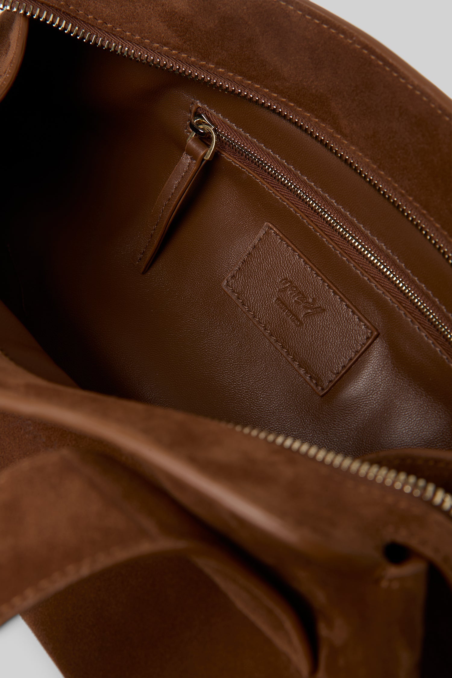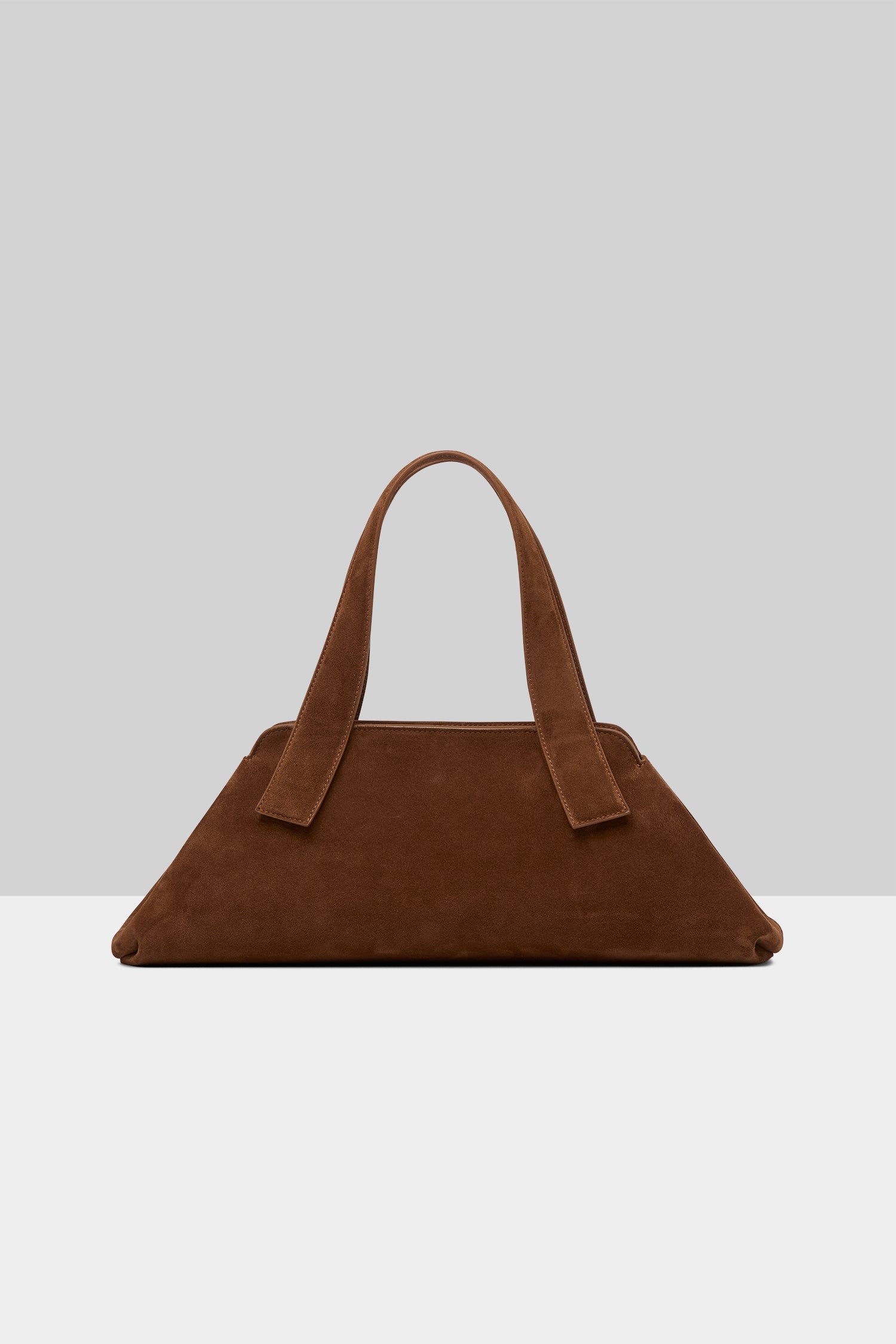 The MARSÈLL Linea Reversed Leather Bag in Basalt is crafted from soft reversed leather with a refined suede texture. Its horizontal silhouette and suspended handles create a subtle interplay of light and shadow, embodying understated elegance. Lined in leather with an interior zip pocket, it is expertly made in Italy, balancing distinctive character with everyday sophistication.