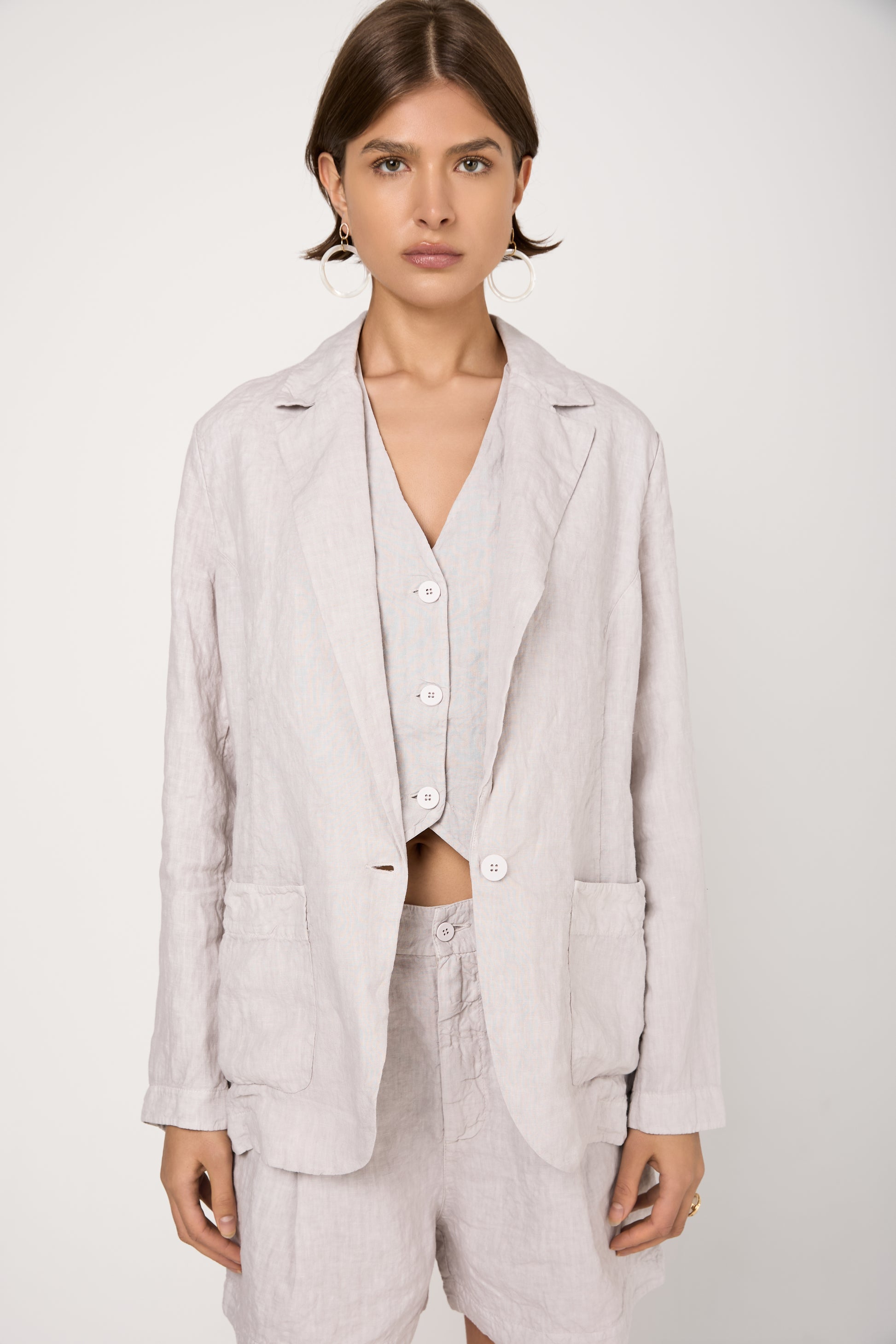 Linen Blazer Jacket in Ice