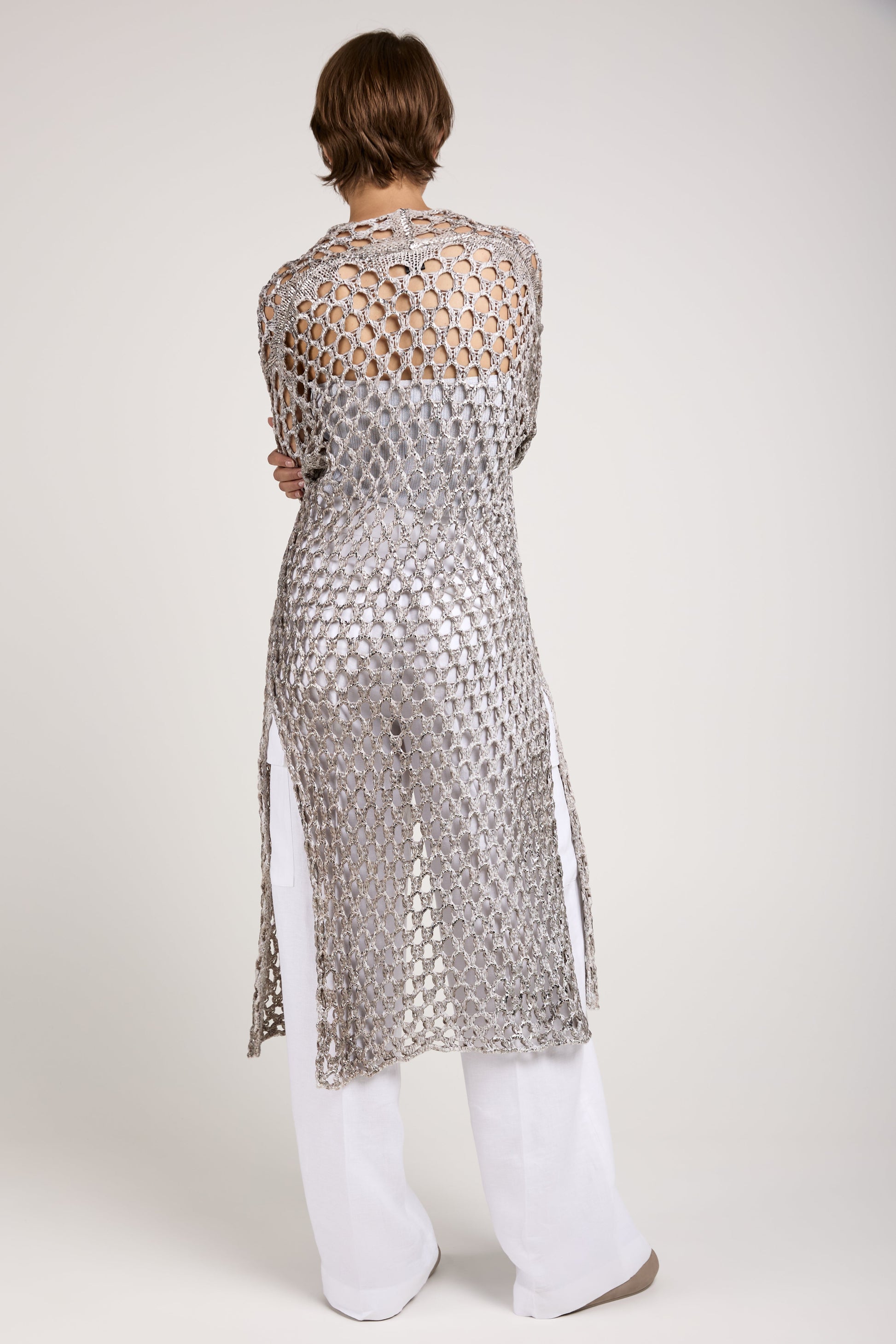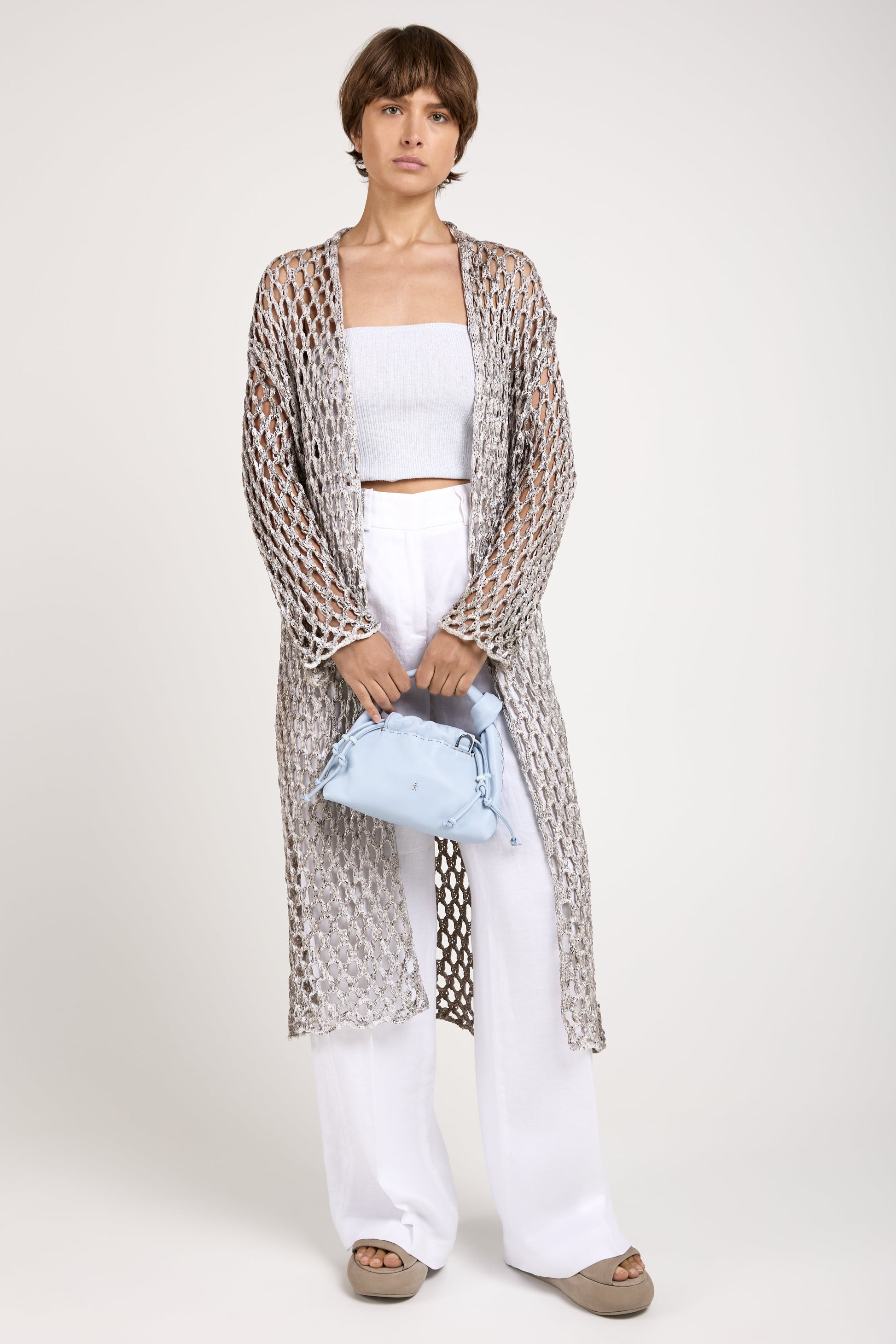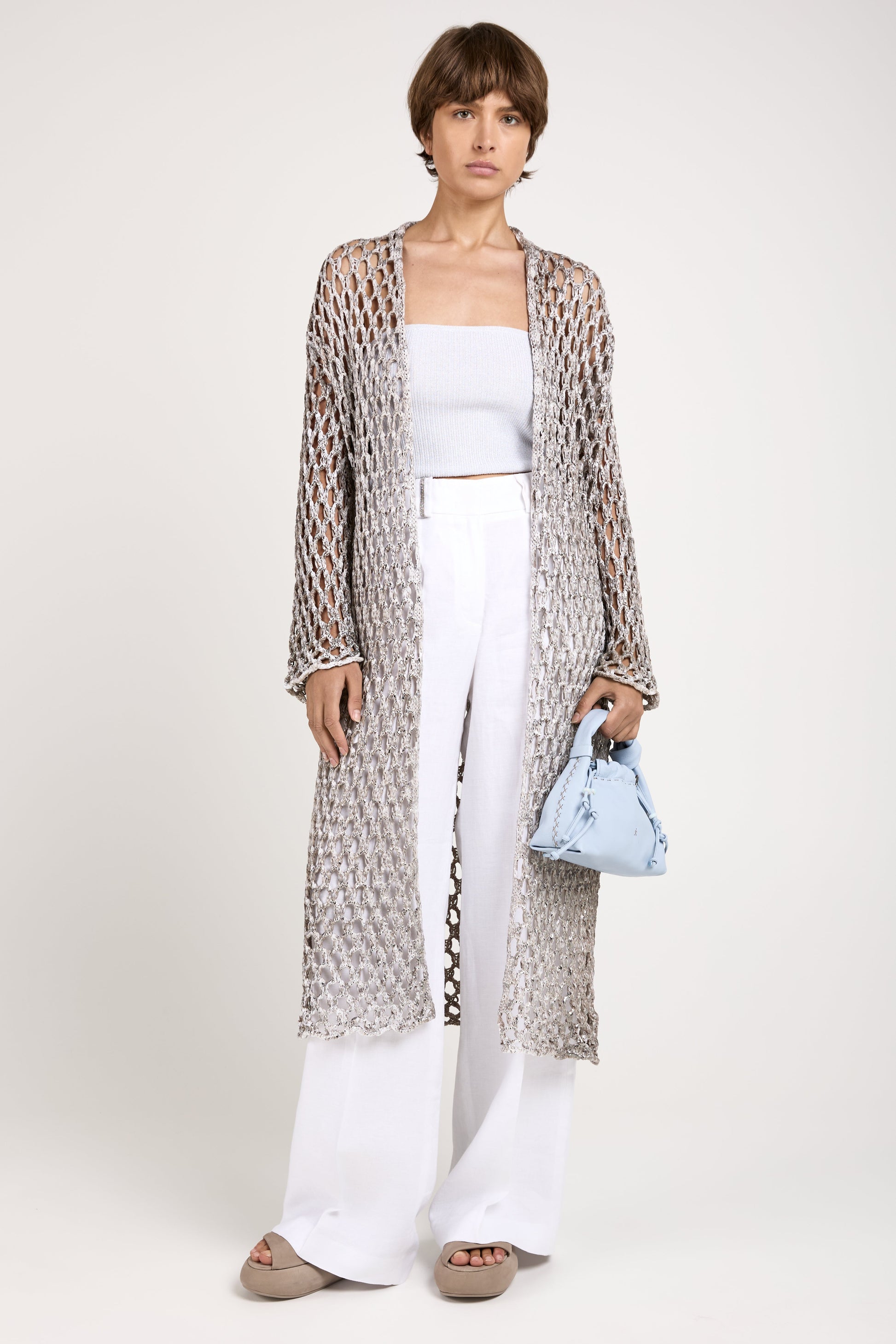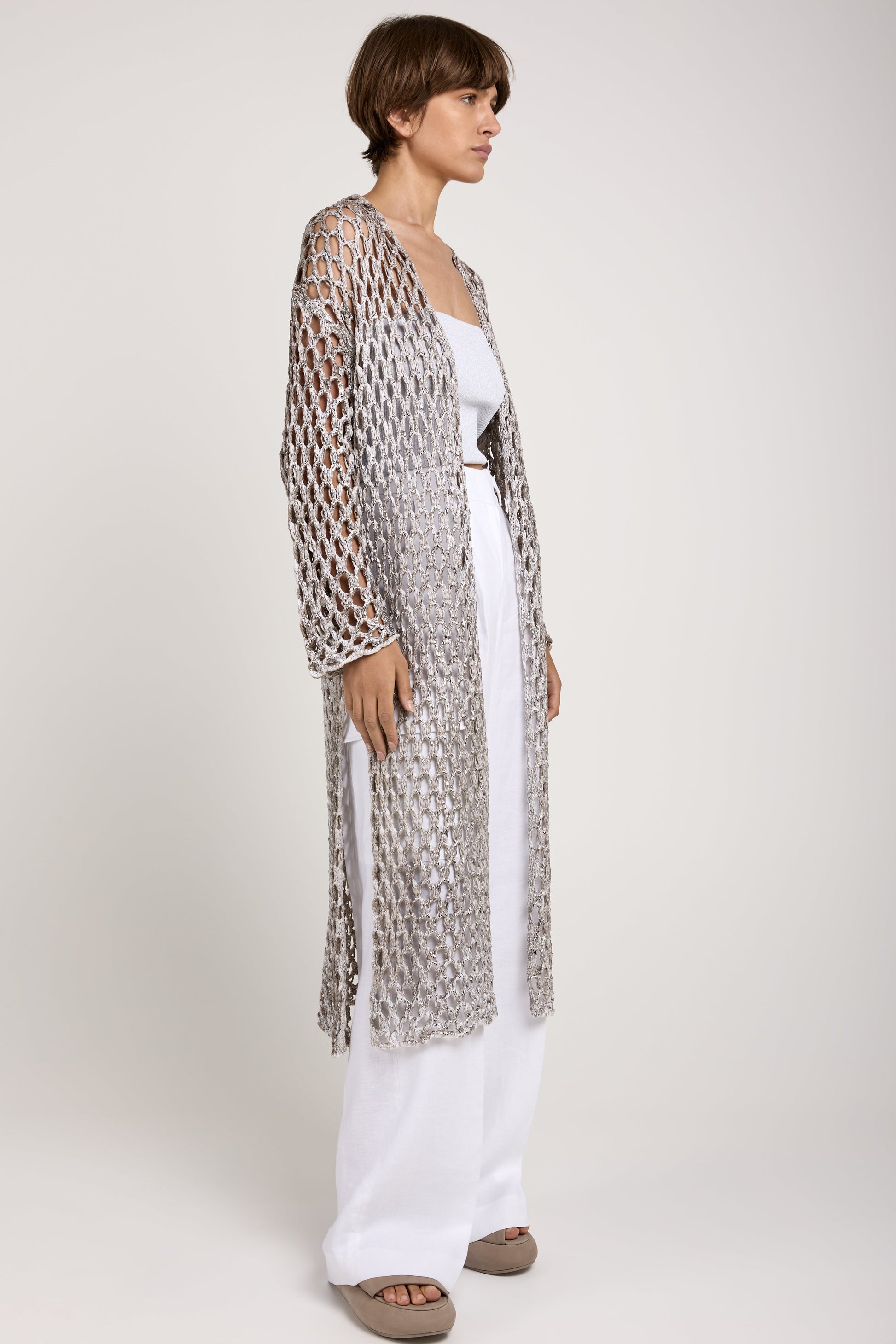 Long Cotton Cardigan Hole Stitch with Lamination in Husky