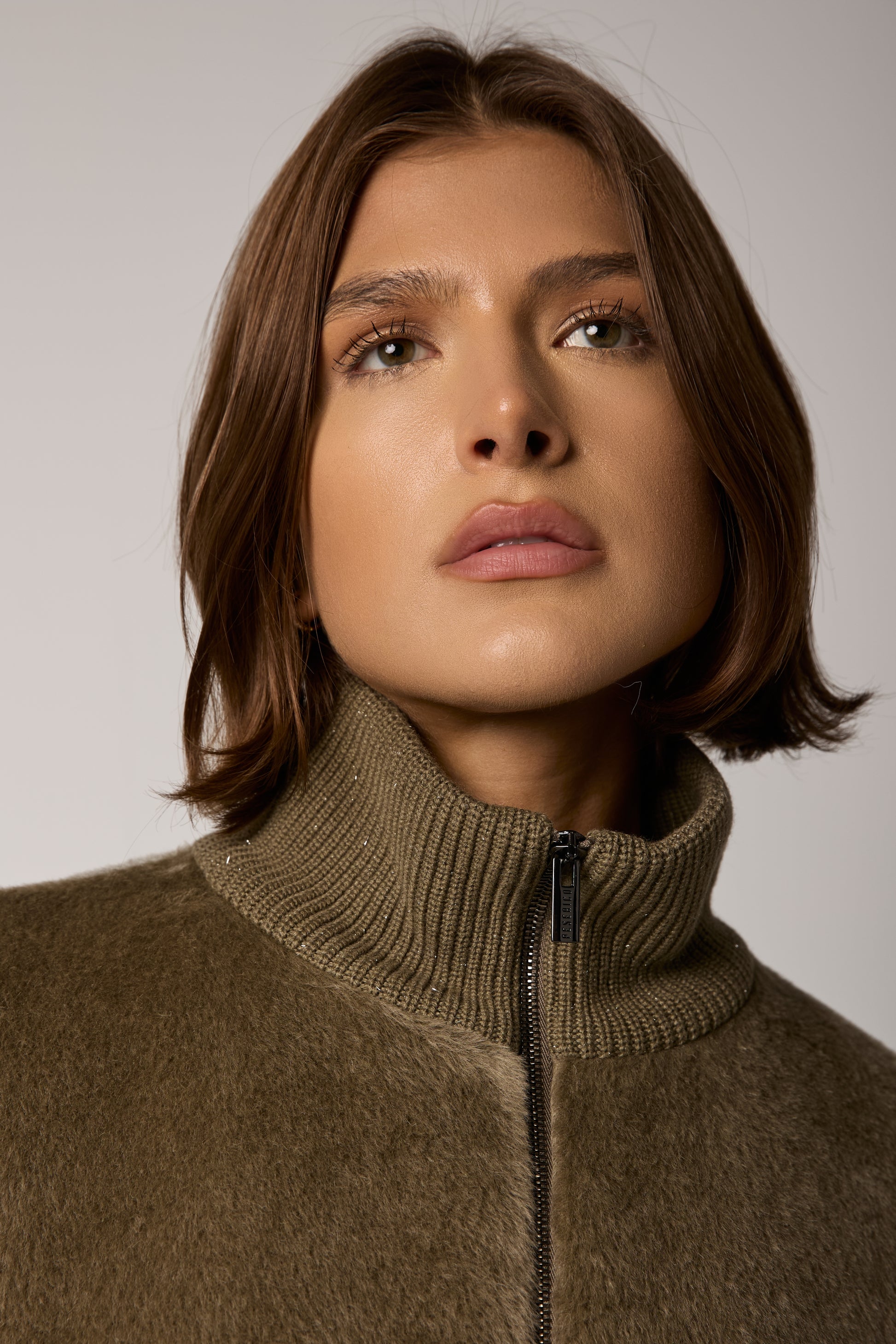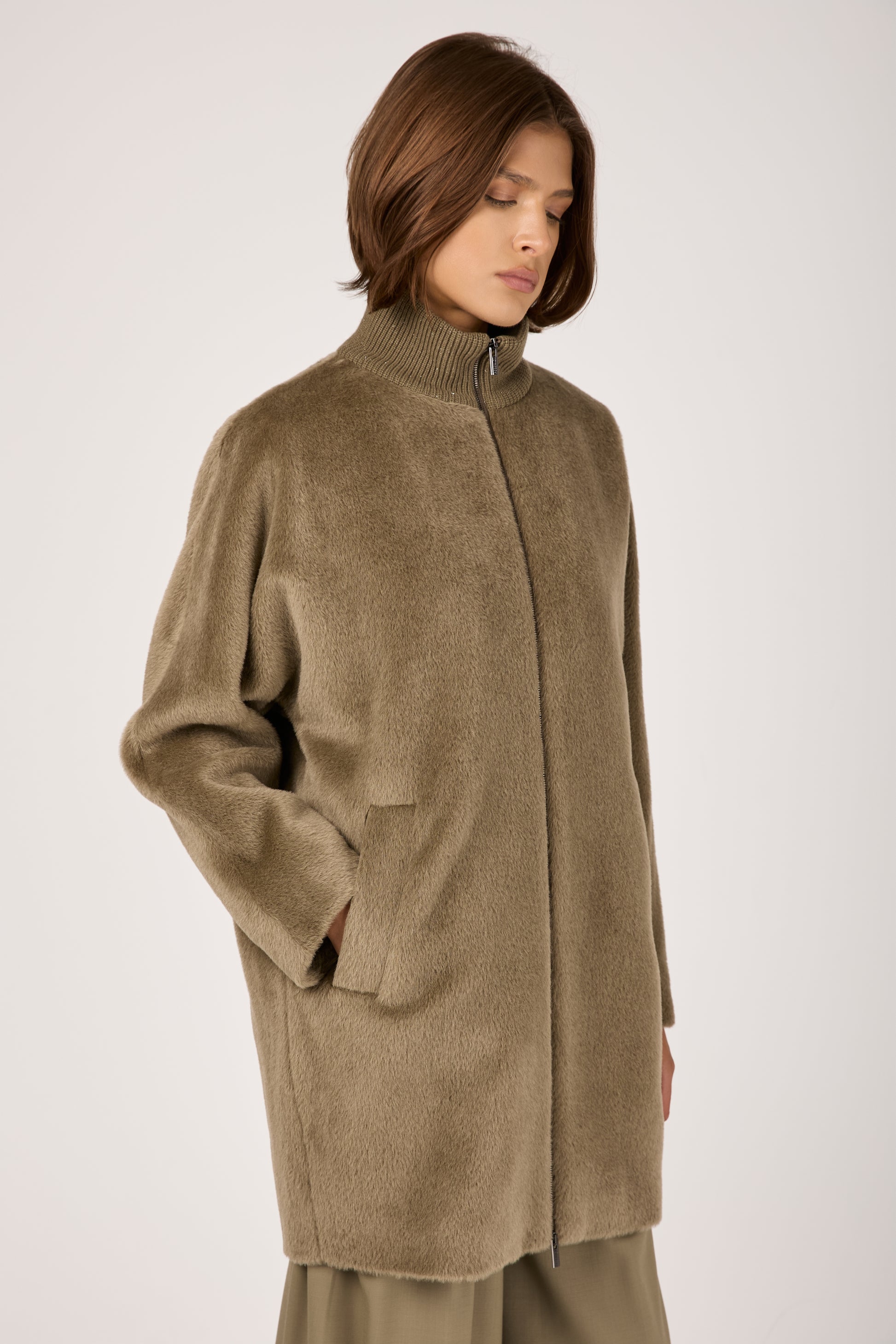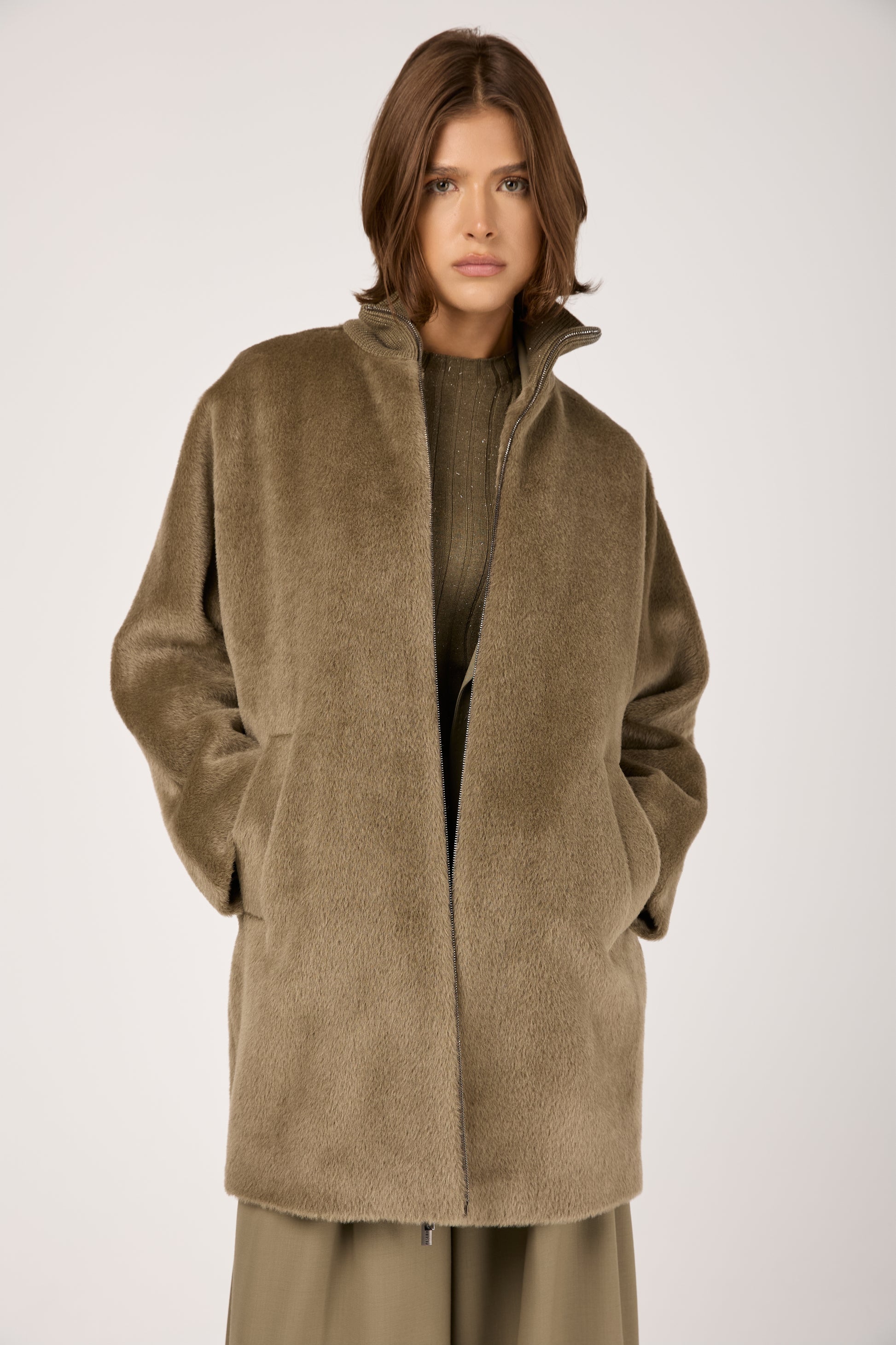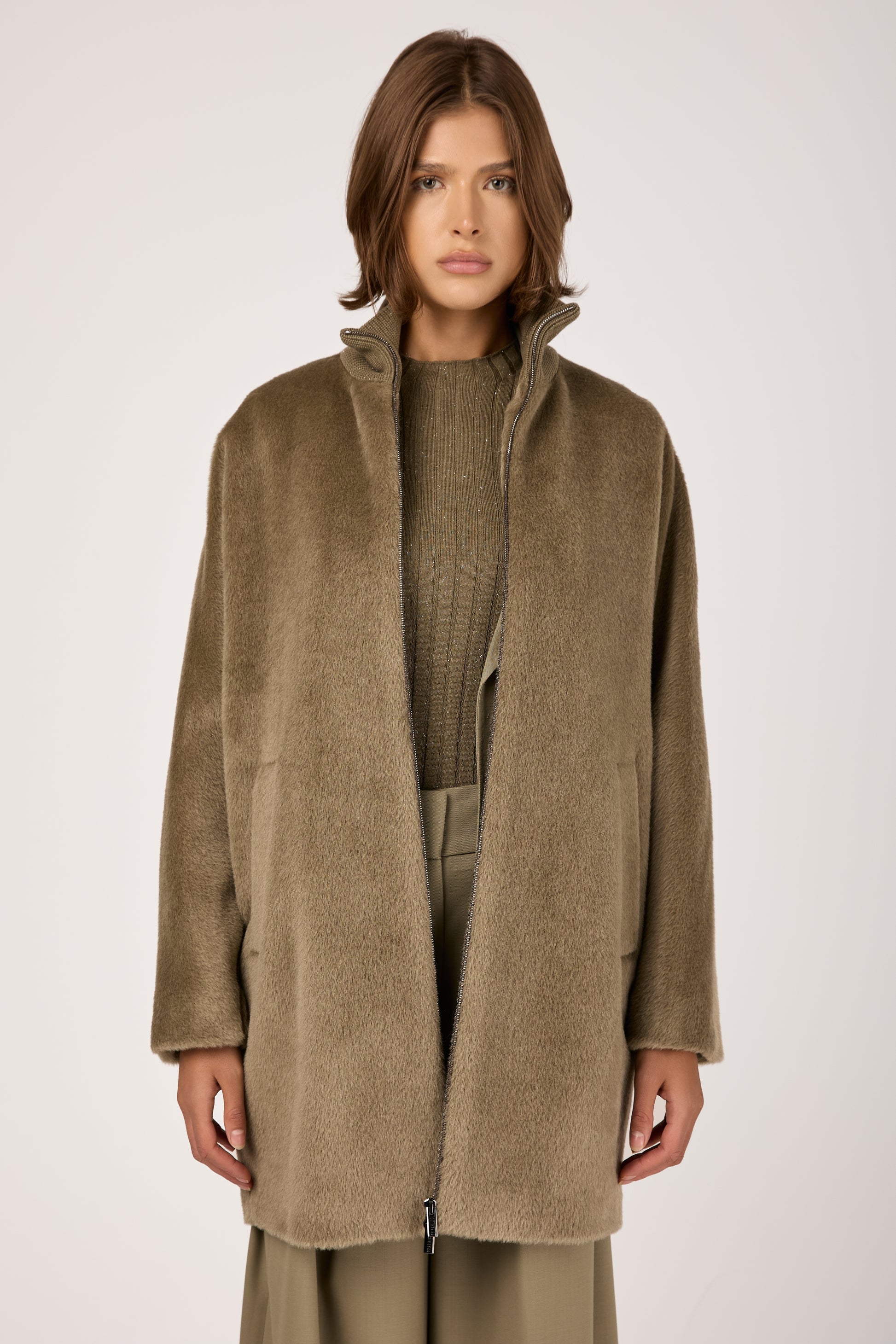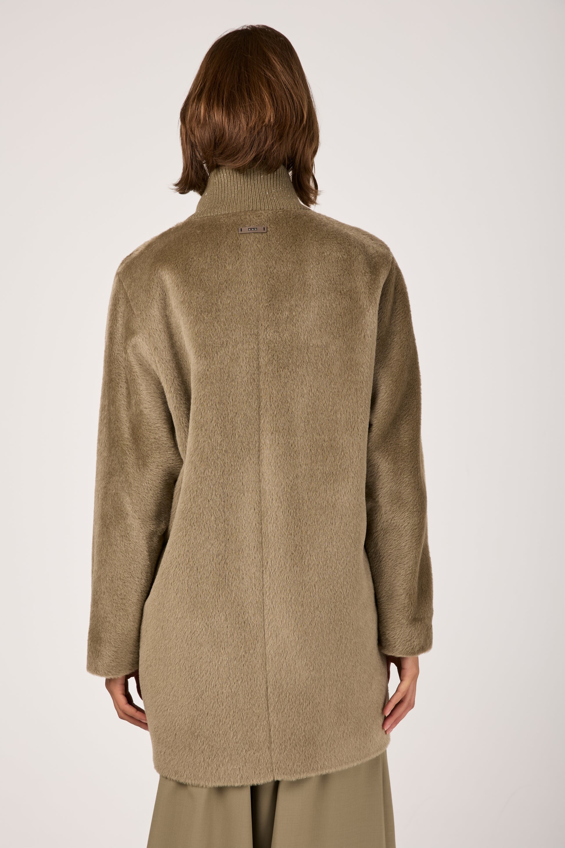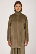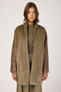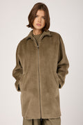 Long-Haired Alpaca Velour Coat in Clay Green