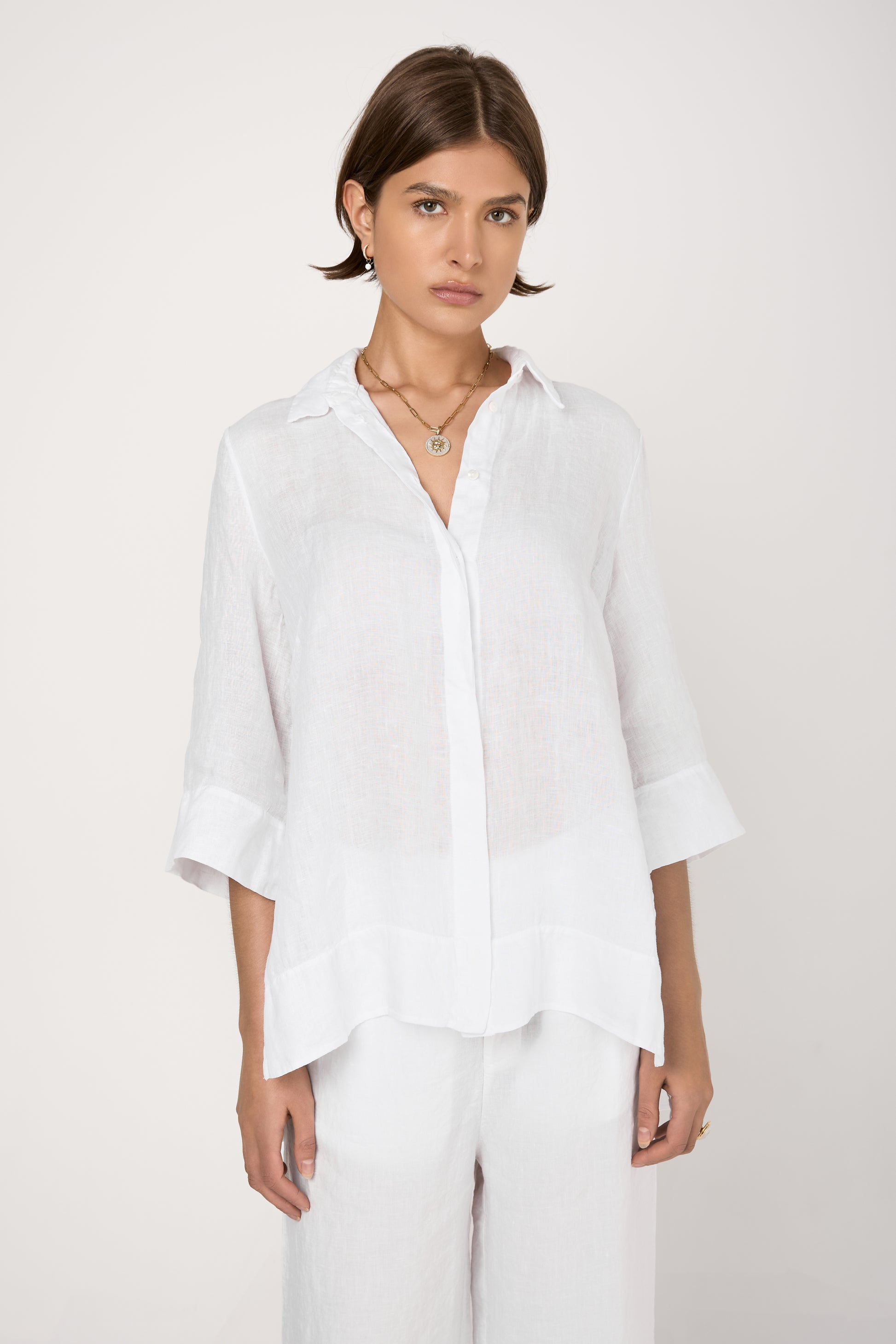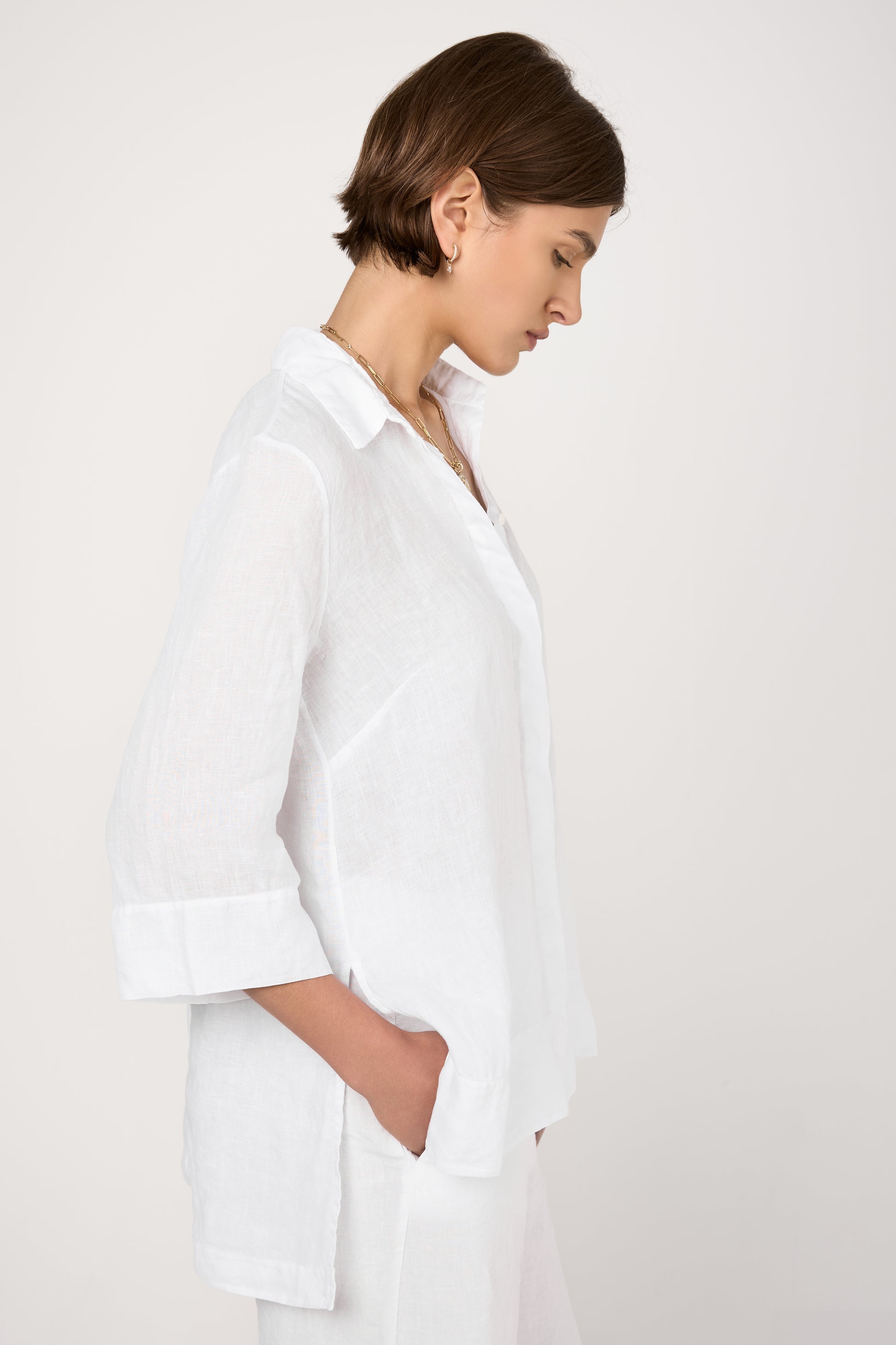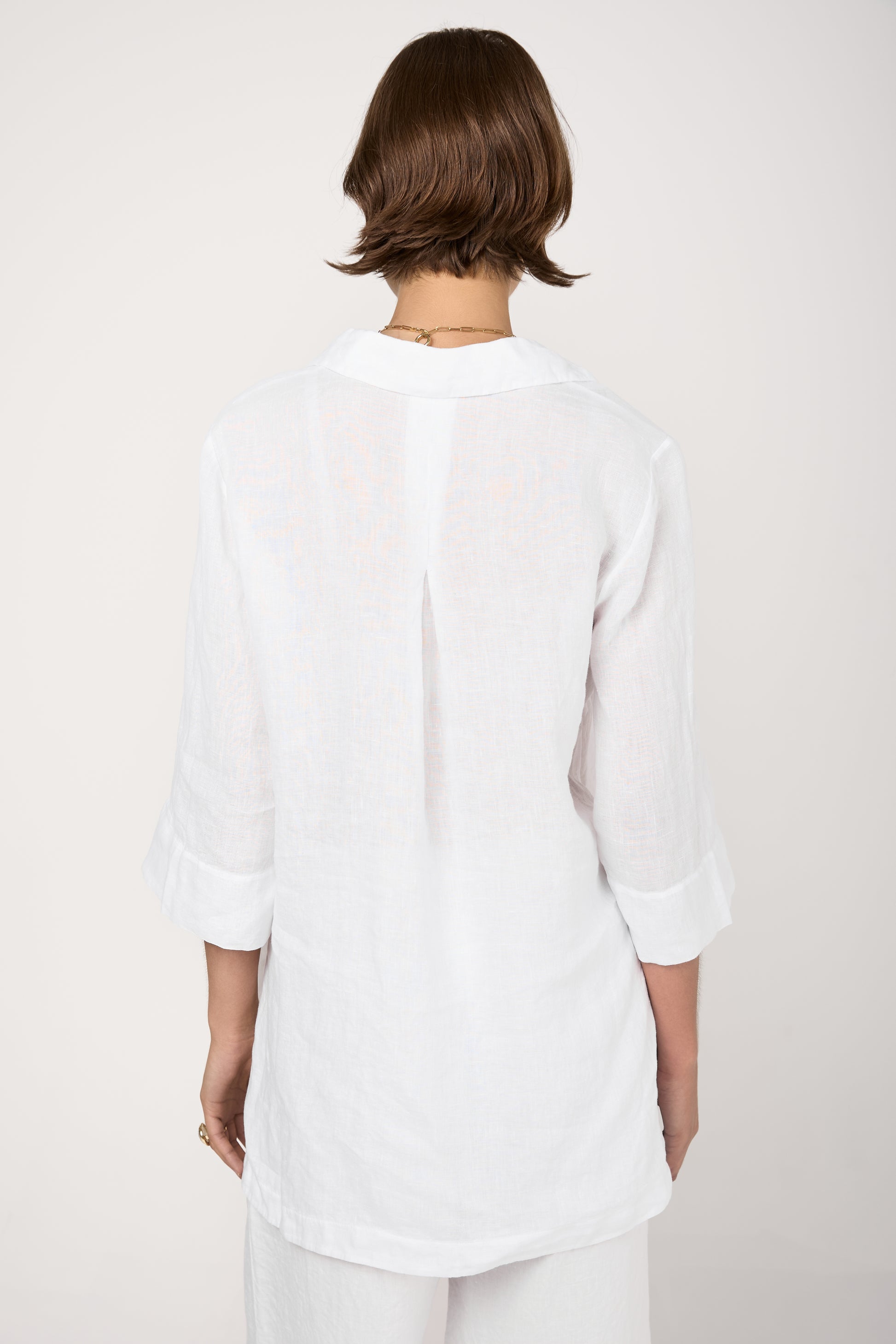 TANDEM Long Linen Shirt in White. Made in Italy. 100% linen.