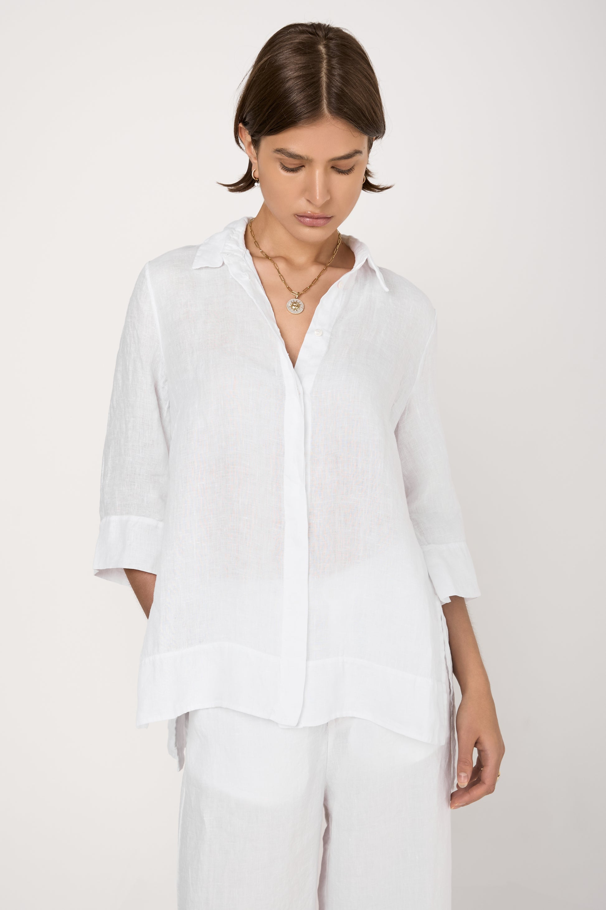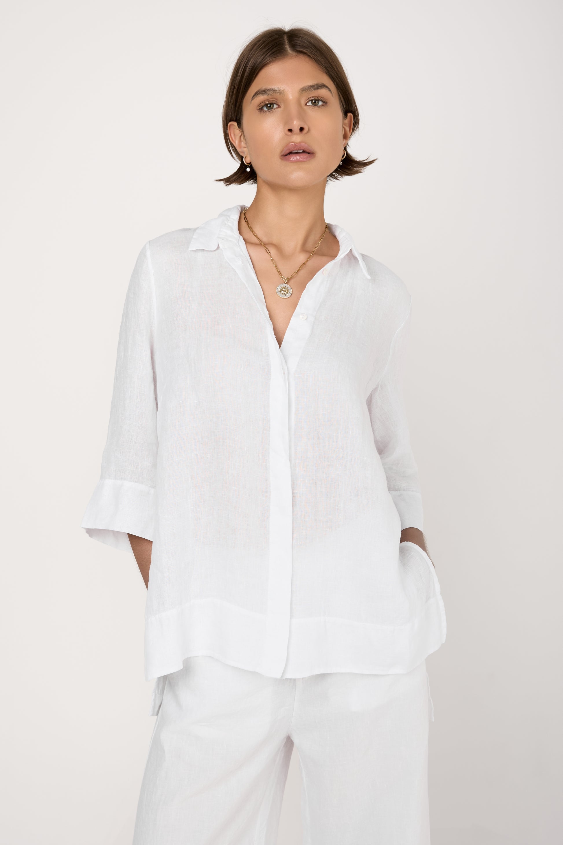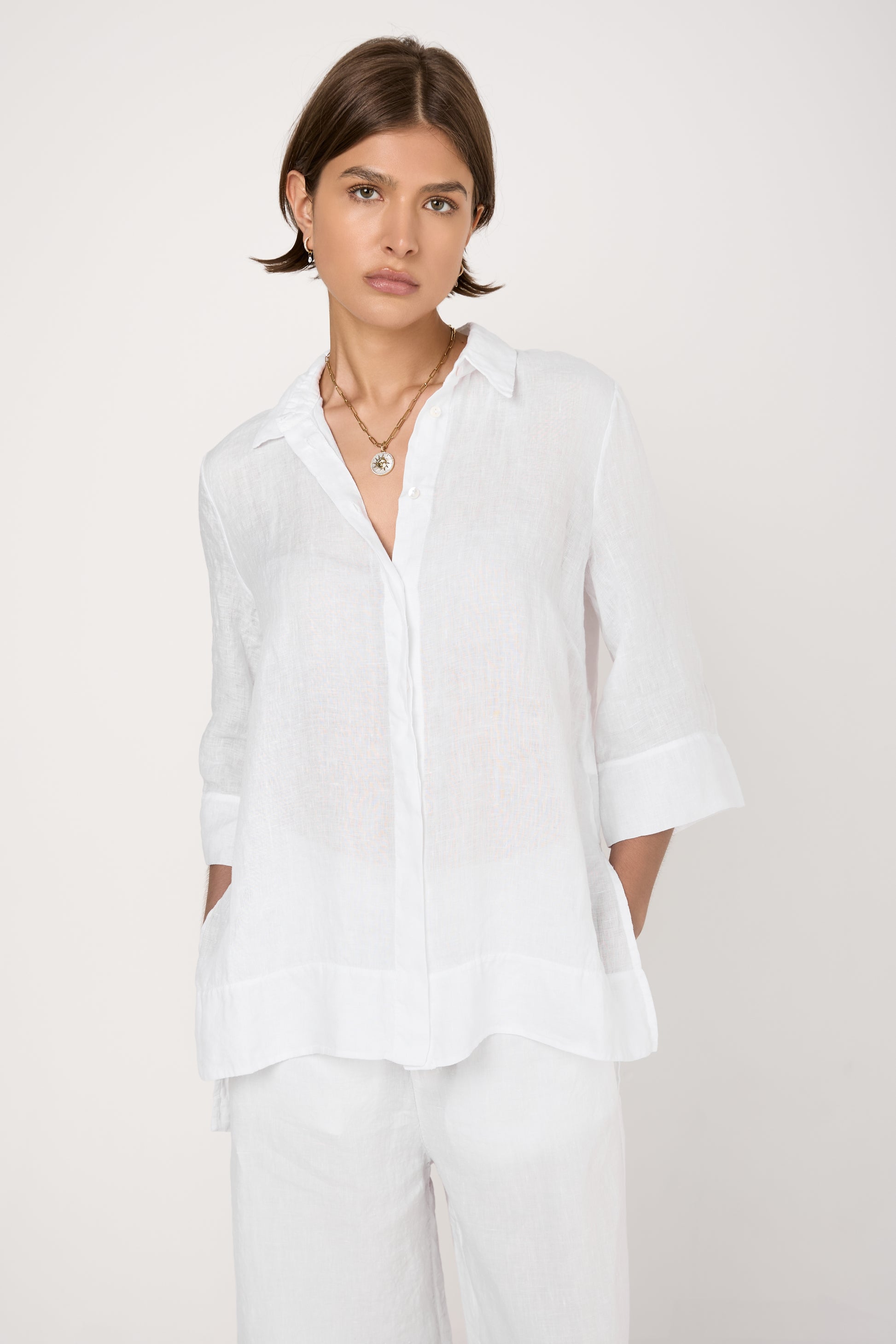 TANDEM Long Linen Shirt in White. Made in Italy. 100% linen.
