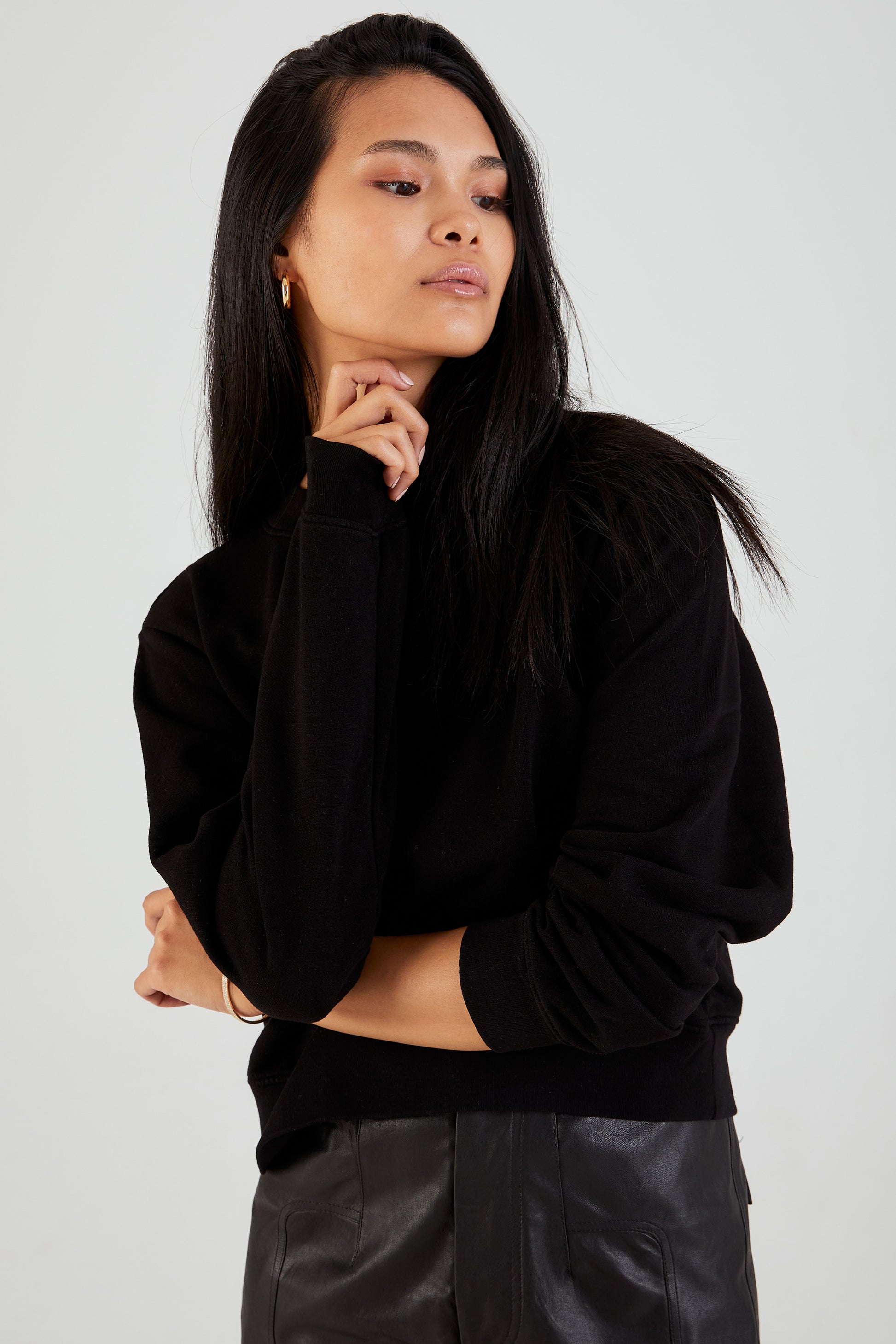 COTTON CITIZEN Milan Crewneck Sweatshirt in Jet Black.