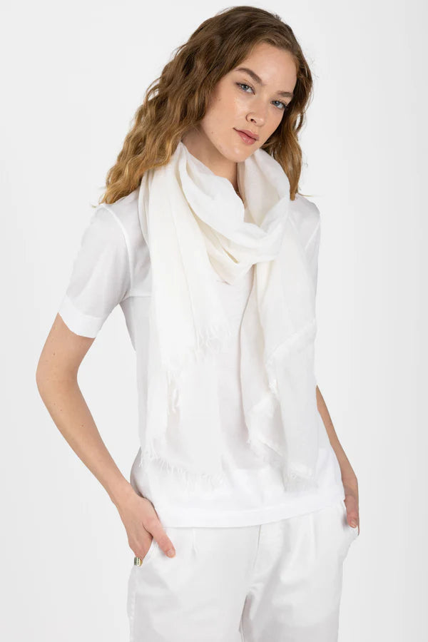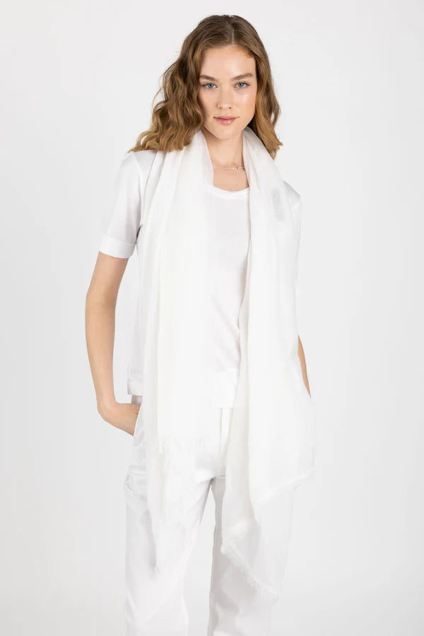 PRIVATE 0204 Net Cashmere Scarf in White. Handmade in Italy.