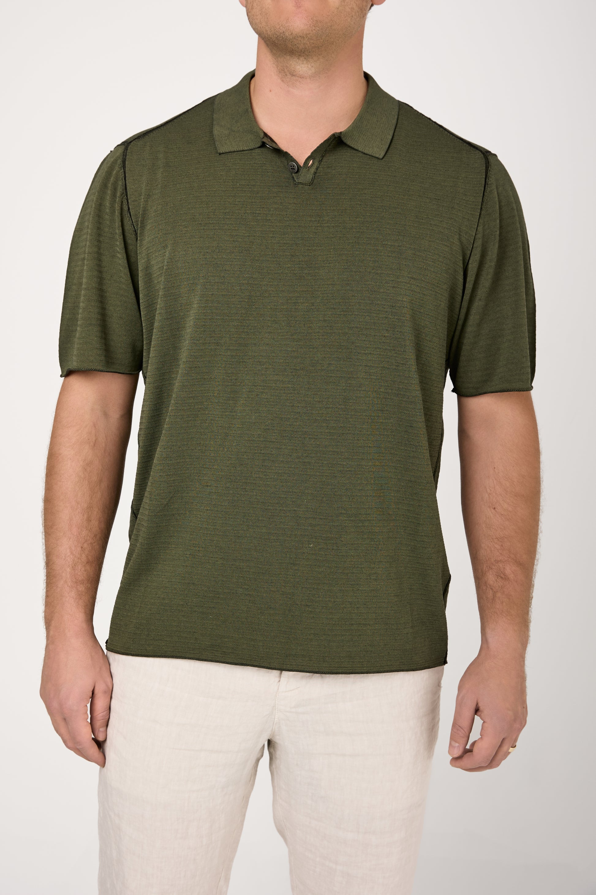 The TRANSIT Polo T-Shirt in Forest. 67% Cotton, 33% Viscose. Made in Italy.