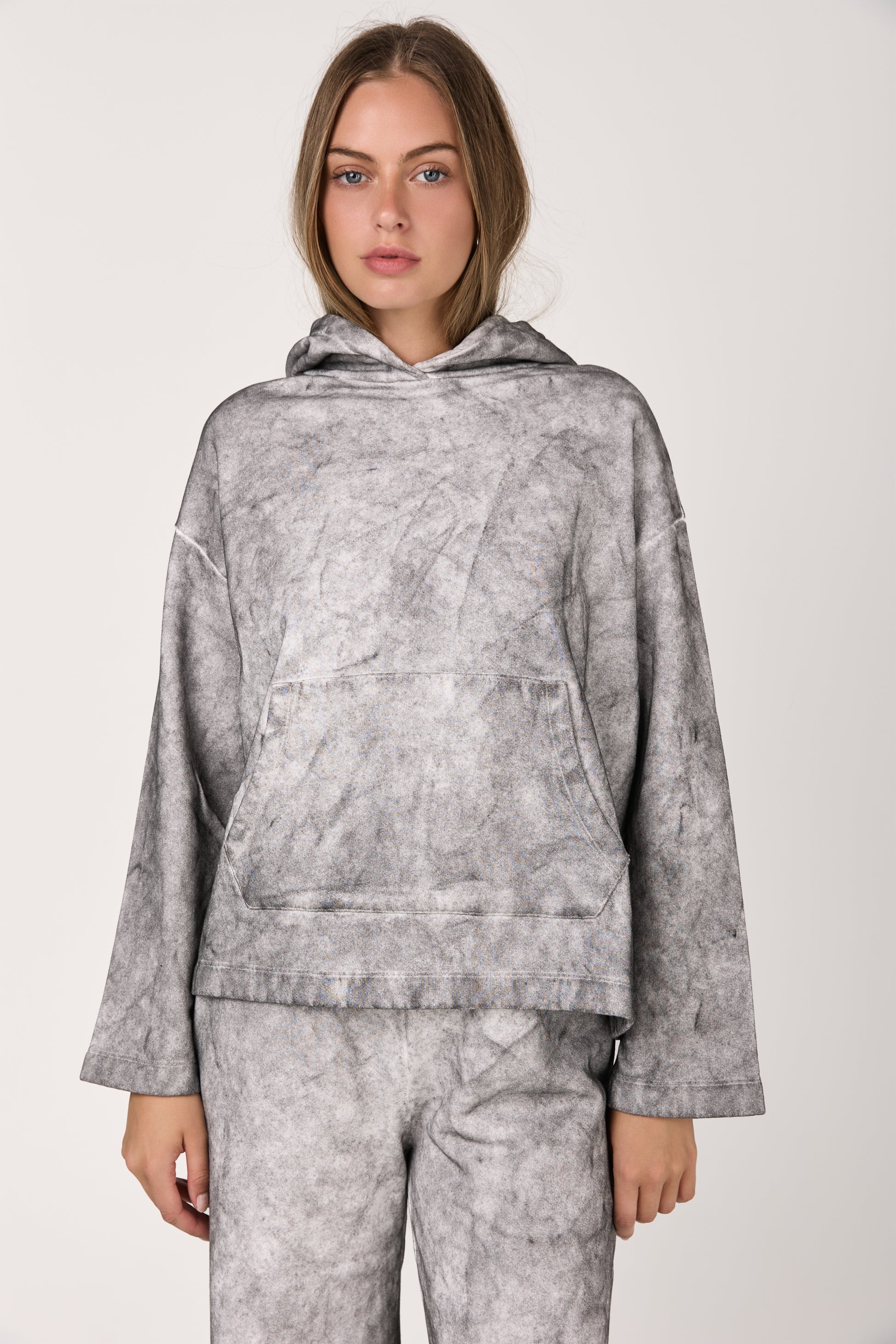 The AVANT TOI Shade Effect Hooded Oversized Sweatshirt in Bianco brings a modern edge to everyday luxury. Designed in a relaxed, oversized silhouette, it features a hood, dropped shoulders, and a discreet kangaroo pocket. The shady effect dye technique gives the piece its unique marbled finish in an off-white tone, ensuring every garment is one of a kind. Made in Italy, this sweatshirt perfectly balances comfort and refined style.