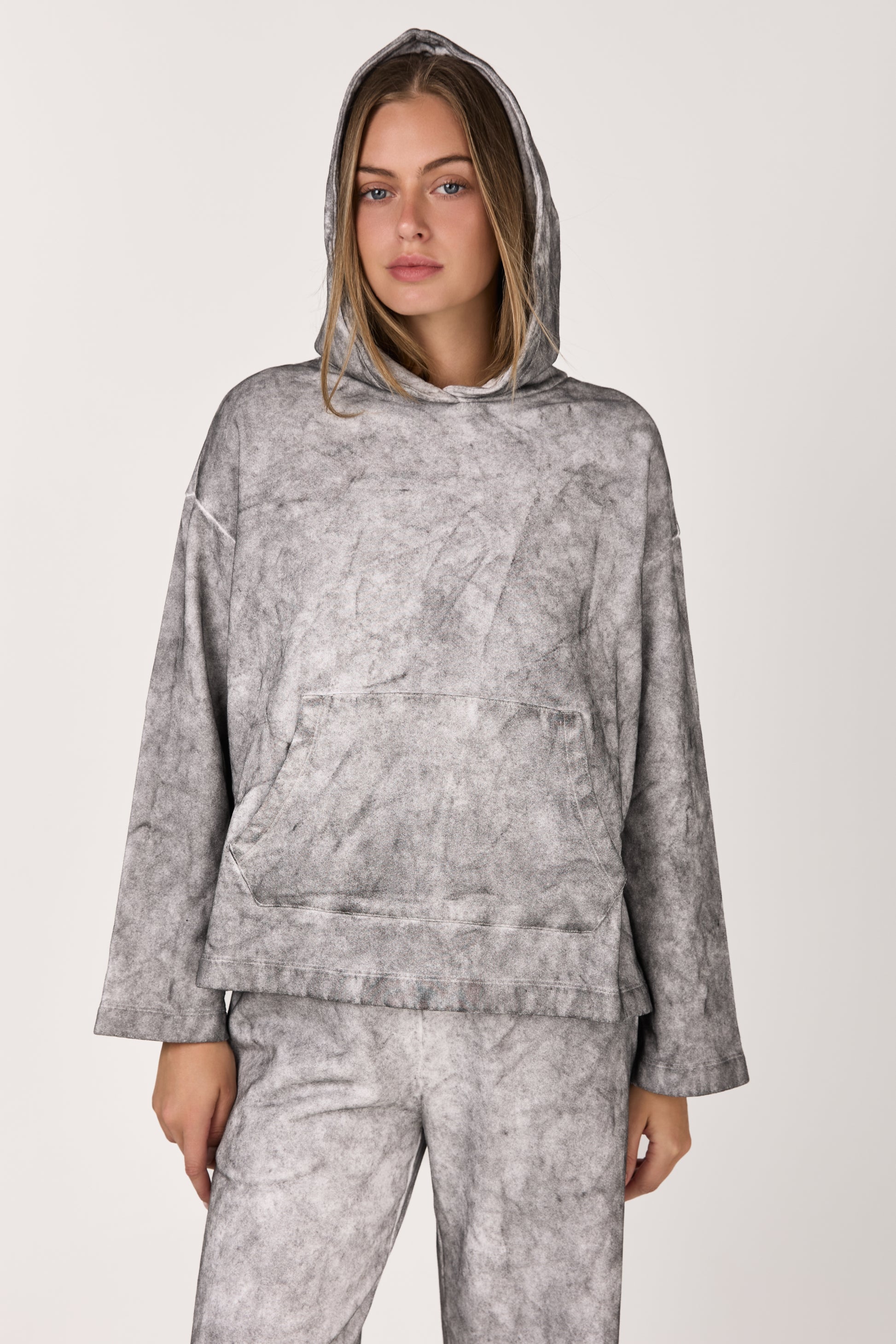 Shade Effect Hooded Oversized Sweatshirt in Bianco