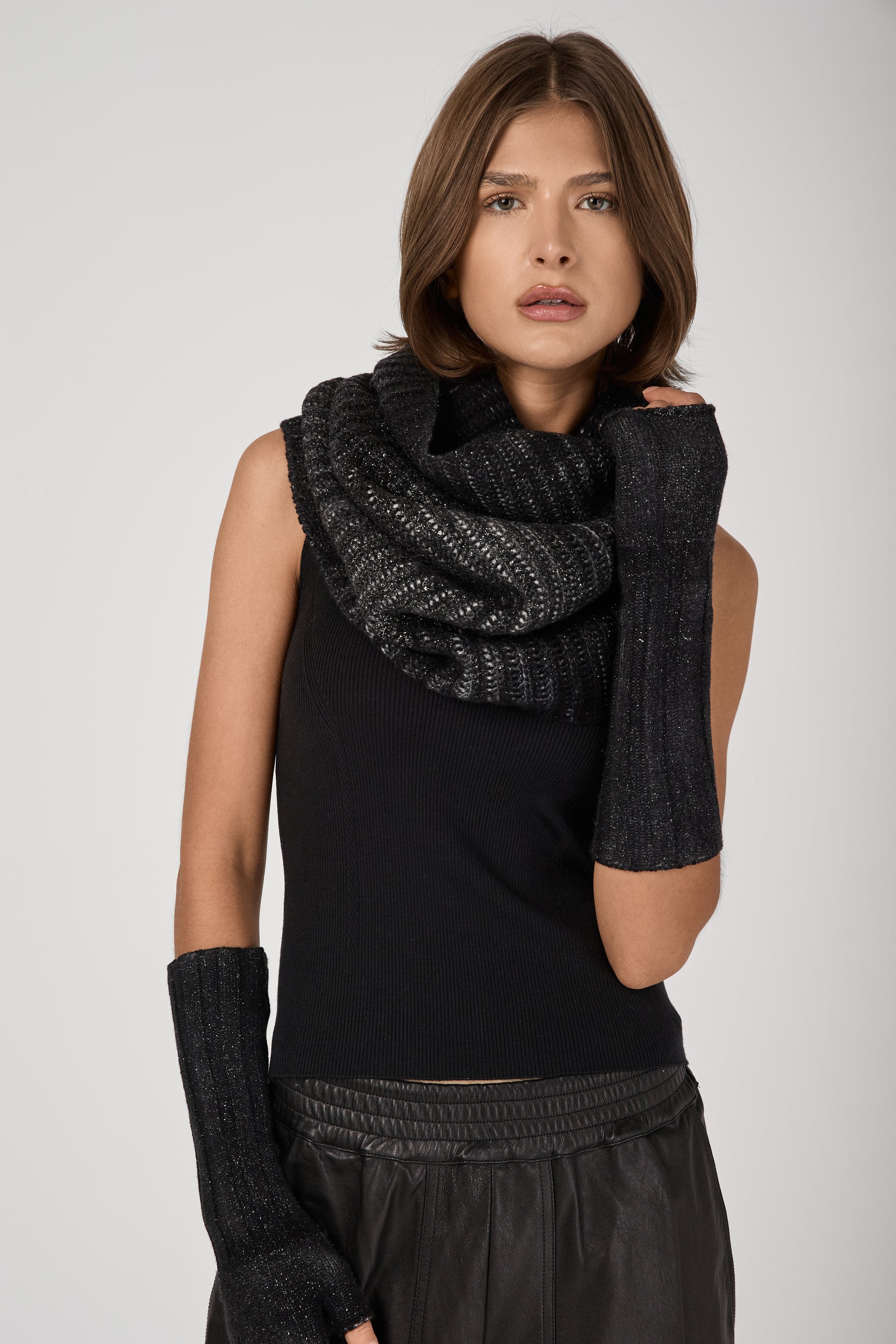 Silver Dust Effect Corn Cob Stitch Neck-Warmer in Nero