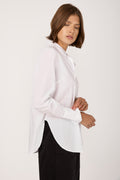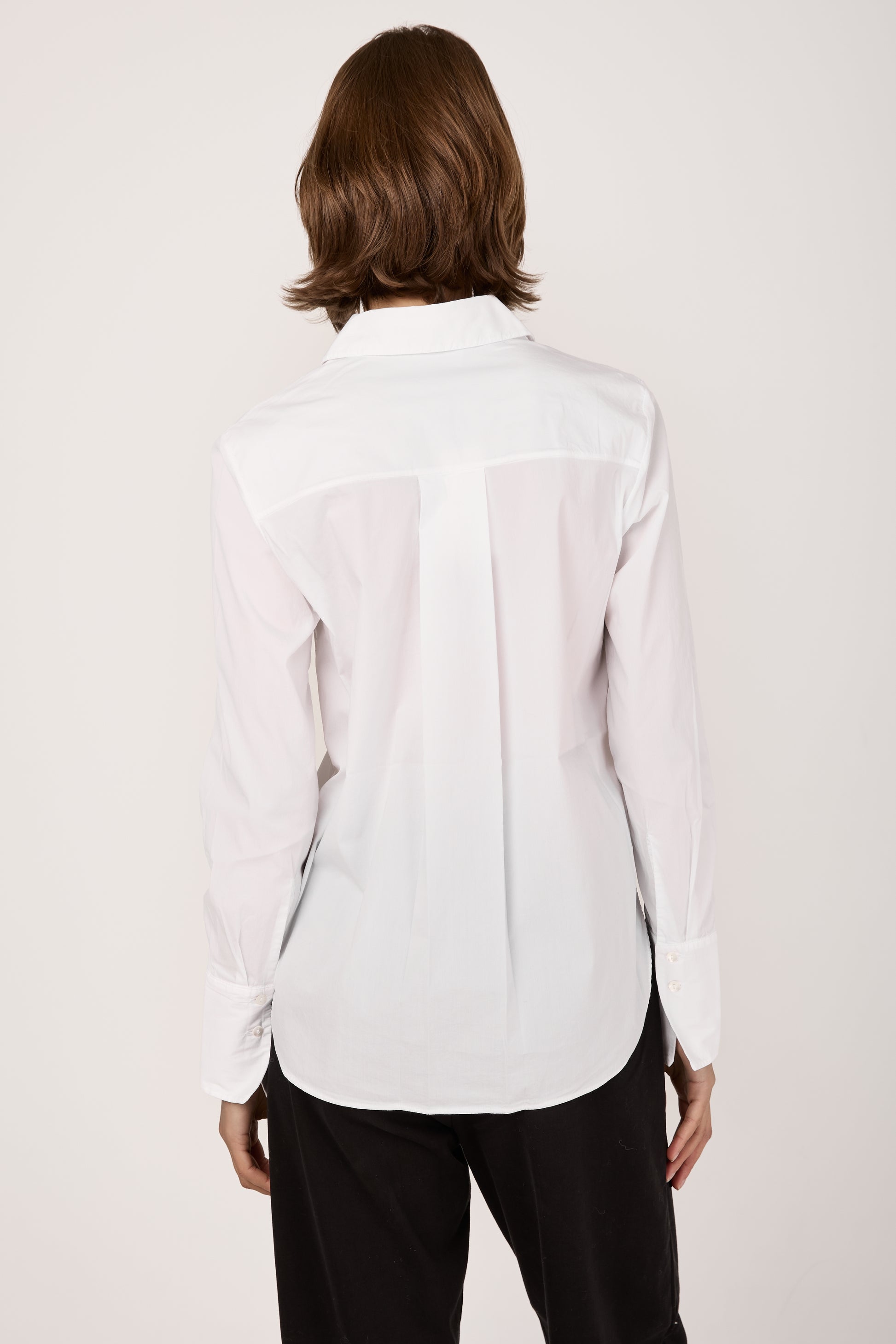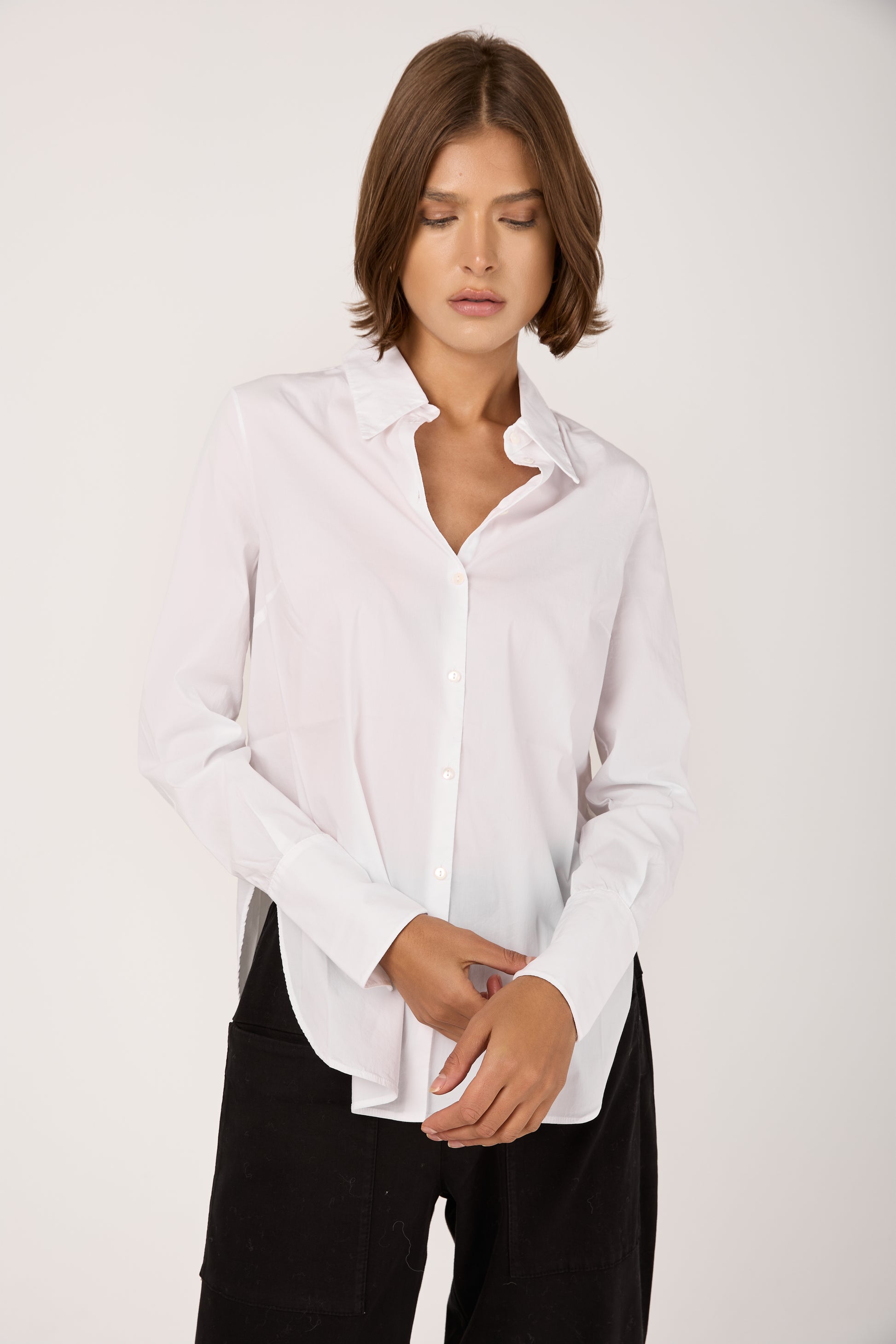 The TANDEM Stretch Cotton Poplin Shirt in Optical White is crafted in Italy from smooth, breathable stretch cotton for a refined yet comfortable fit. Featuring a classic collar, regular shoulders, and a generous back pleat for ease of movement, it's finished with lustrous mother-of-pearl buttons that add a subtle touch of sophistication.