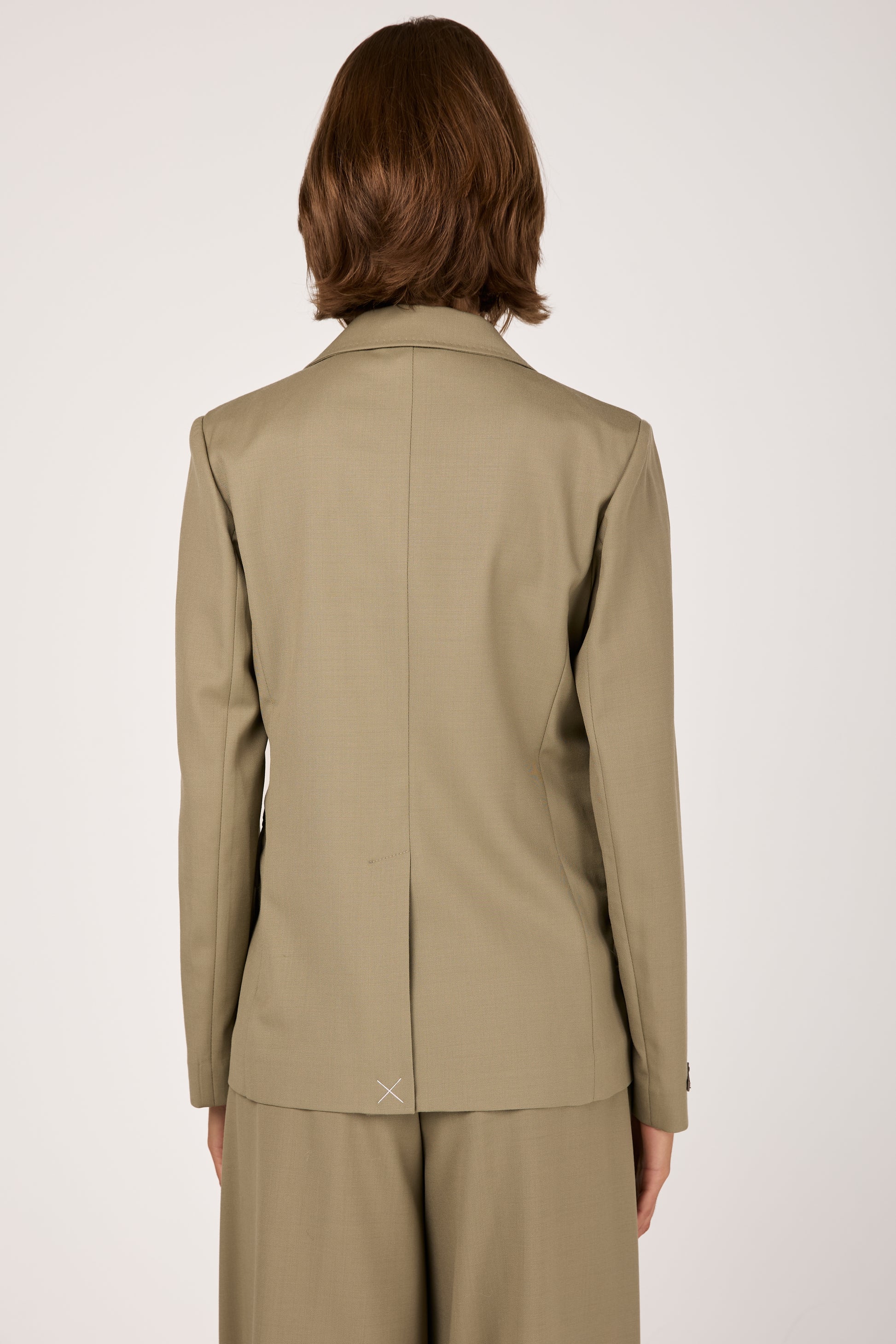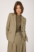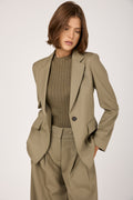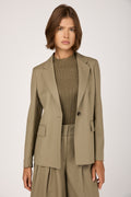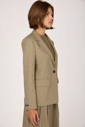 Fluid Wool Twill Blazer Jacket in Clay Green
