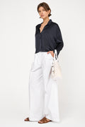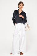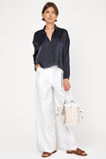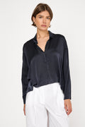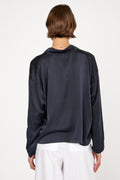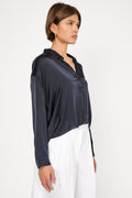 PRIVATE 0204 Summer Silk Blouse in Blue. Lightweight washed silk. Cropped length. Made in Italy.