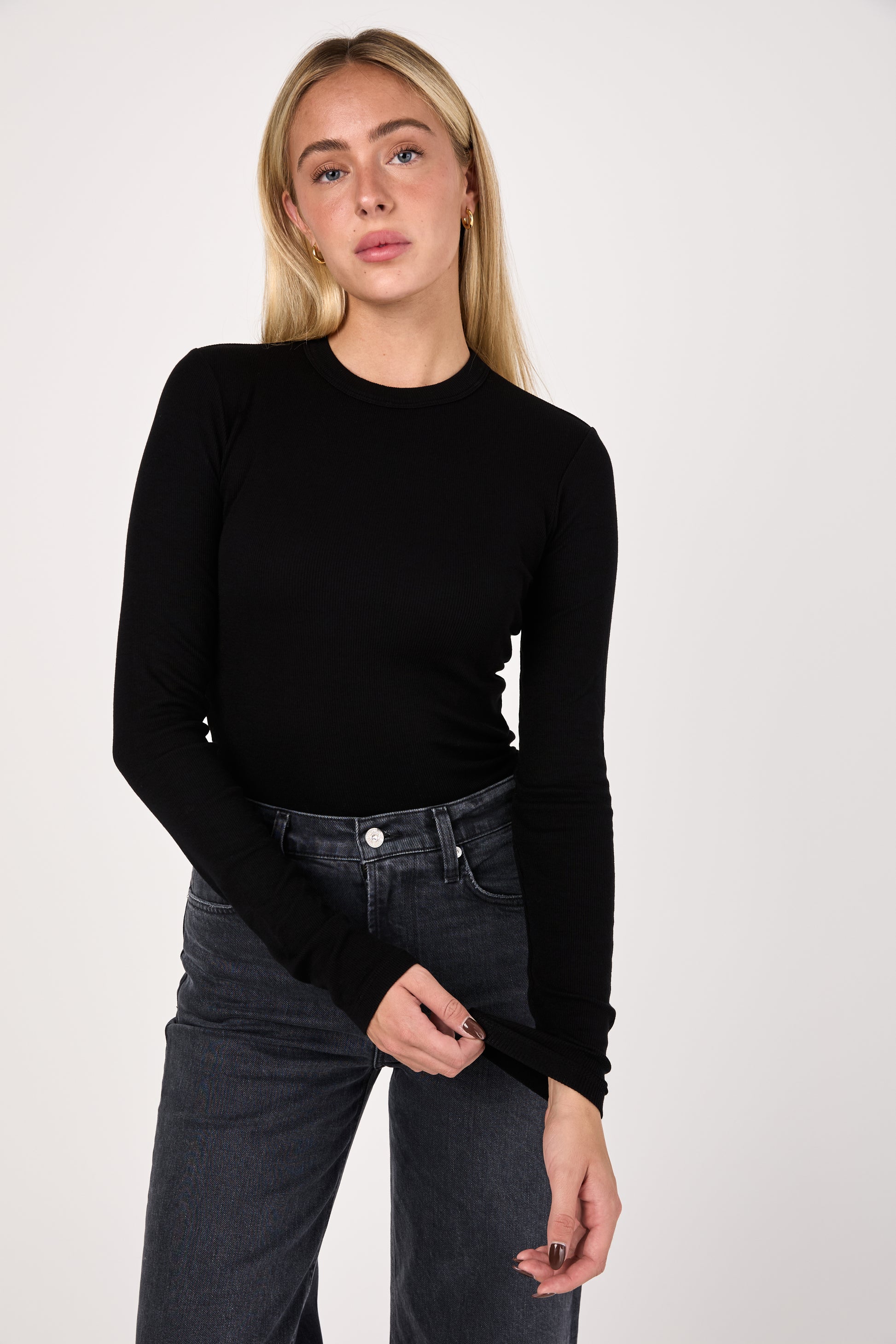 COTTON CITIZEN Verona Long Sleeve Shirt in Jet Black. Classic long sleeve t-shirt design and a slim-fitting silhouette. Handcrafted in Los Angeles from ultra-soft, lightweight cotton modal for comfort and flexibility.