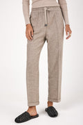 The GENTRYPORTOFINO Wool and Cashmere Woven Pant in Tortora Melange offers a perfect blend of luxury and comfort. Made from soft, premium wool and cashmere, these relaxed-fit trousers feature a chic taupe melange color that complements any wardrobe. Ideal for both casual and formal wear, they provide effortless elegance.